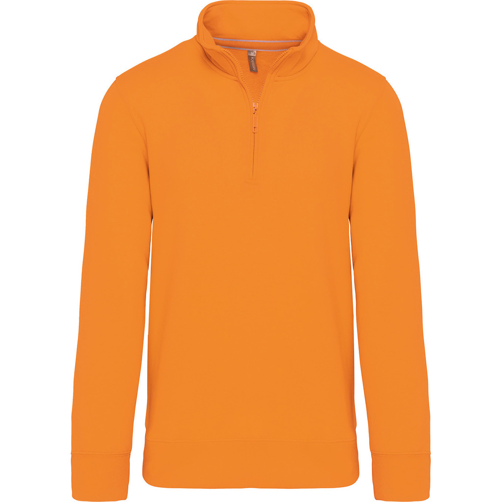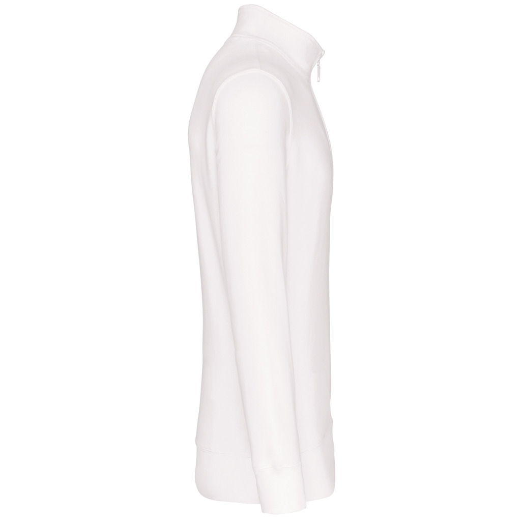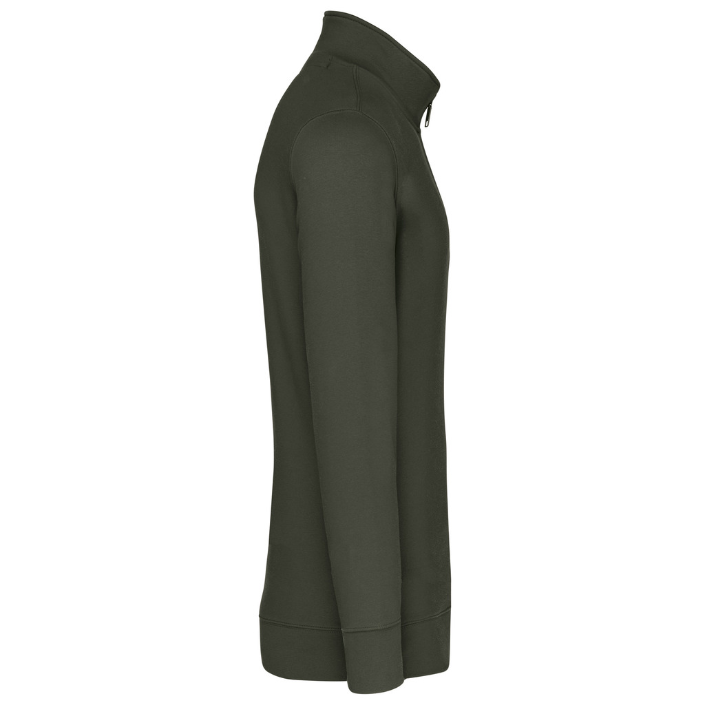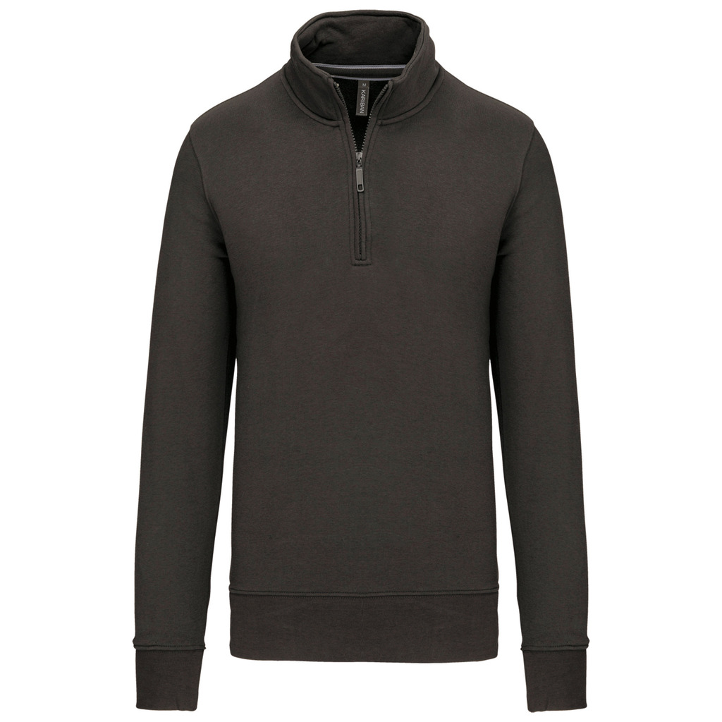 80% algodão / 20% poliéster (Ash Heather: 79% algodão / 20% poliéster / 1% viscose). Superfície exterior 100% algodão. Tratamento LSF (Low Shrinkage Fleece: cardado pré-encolhido). Interior cardado com 3 fios em algodão penteado. Mangas direitas. Gola com fecho plástico à cor. Tapa-costuras em contraste (contraste em Oxford Grey para todas as cores e nas cores Oxford Grey e Ash Heather o contraste é em Navy). Acabamento dos punhos e cós em malha rib.