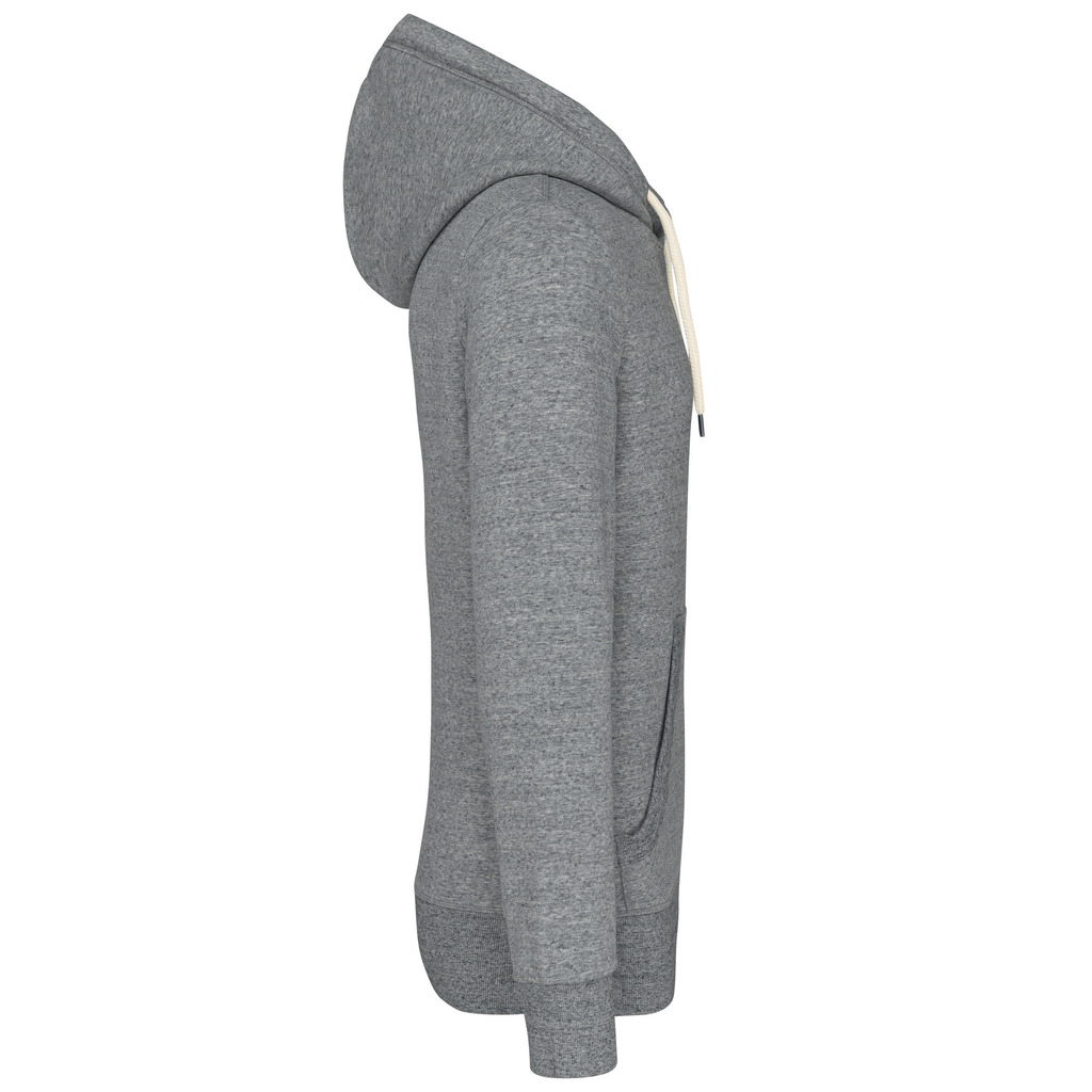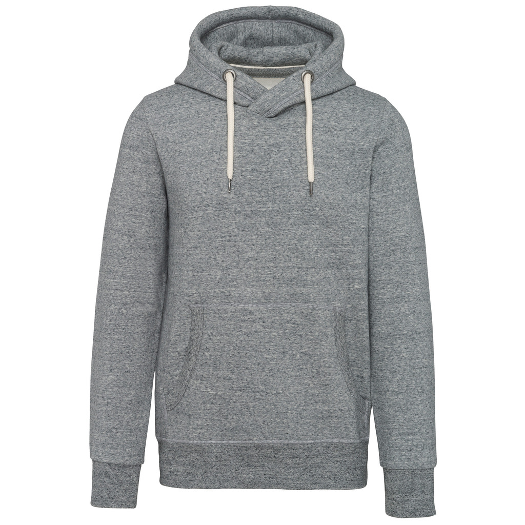80% algodão / 20% poliéster (Ash Heather: 79% algodão / 20% poliéster / 1% viscose). Interior cardado. Toque pele de pêssego e aspecto «vintage». Capuz forrado. Cordão no capuz em contraste. Tapa-costuras de fantasia no decote. Bolsos à canguru. Acabamento da manga e cós em malha rib. Peça fornecida com etiqueta sem marca, contendo apenas indicação de tamanho para facilitar a personalização. Este produto foi submetido a um tratamento especial e apresenta um aspecto intencionalmente envelhecido. Este procedimento implica variações de cor de produto para produto, o que torna cada peça única.