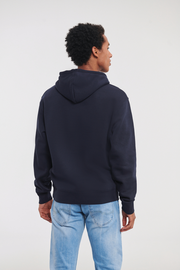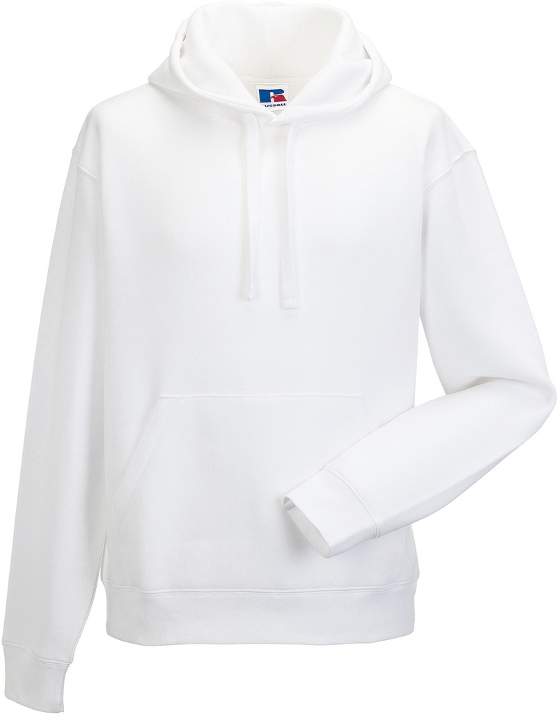 80% algodão ring spun penteado/20% poliéster. Exterior 100% algodão para facilitar a personalização (serigrafia). Tecido confortável com 3 camadas. Punhos e cós em elastano. Corte direito. Tapa-costuras com efeito chevron. Capuz forrado com ilhós e cordões de ajuste planos. Costuras com recobrimento nos ombros, punhos e cós. Bolso à canguru. Orifício de acesso para cabo de MP3.