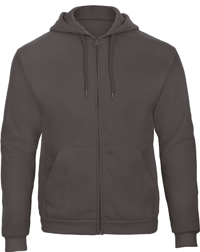 50% algodão/50% poliéster. Interior cardado. Bainha e punhos em malha com elastano 1 x 1. Pesponto duplo ao nível das cavas. Bolso à canguru. Capuz forrado com cordão à cor tubular. Fecho metálico com detalhe à cor. Mangas direitas. Costuras laterais. Modelo unissexo. Sistema «B&C No Label»: com etiqueta sem marca para um rebranding perfeito.