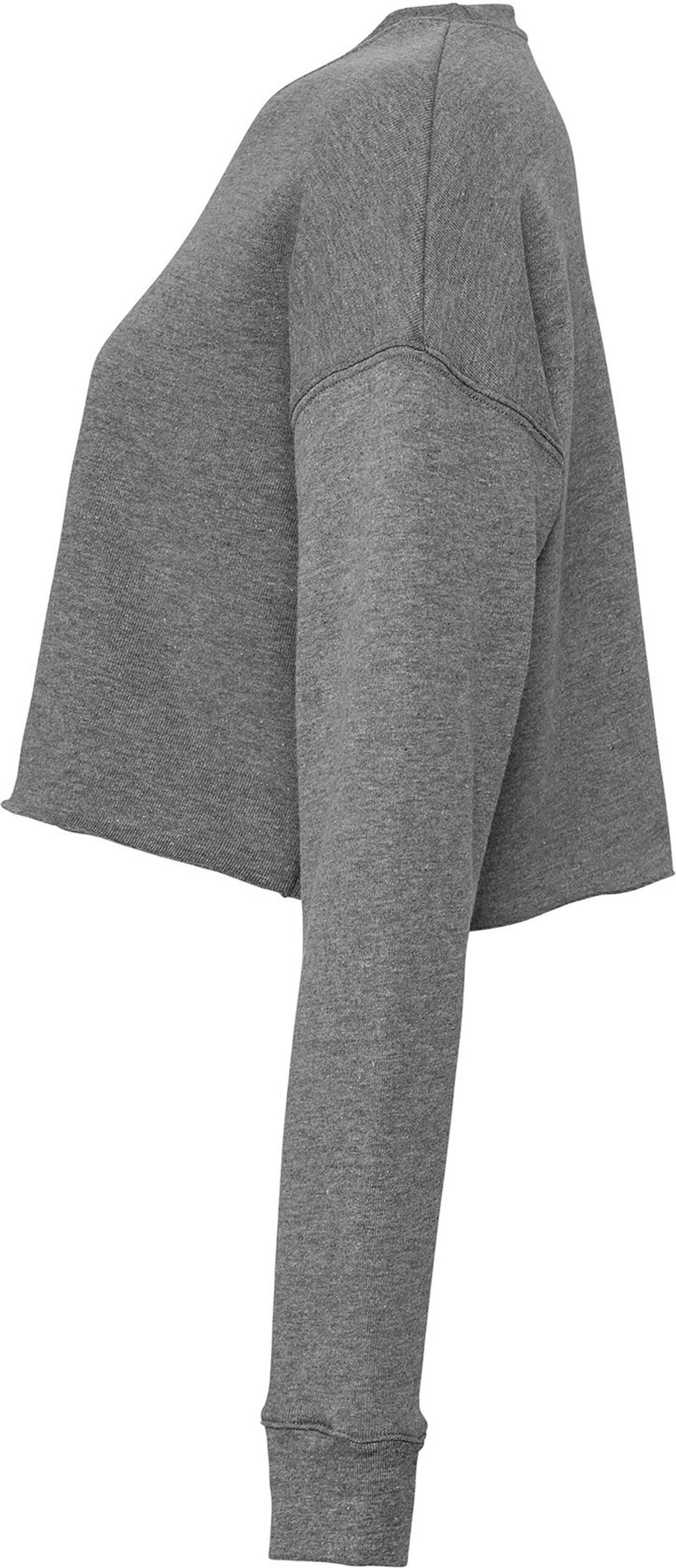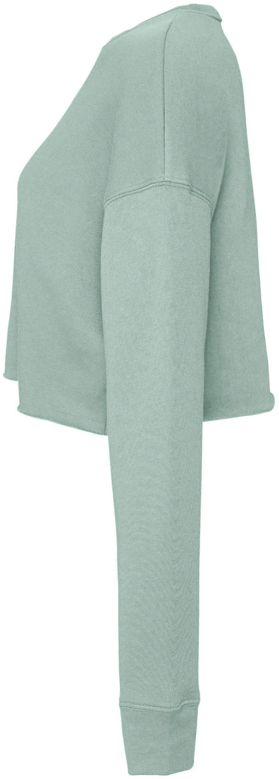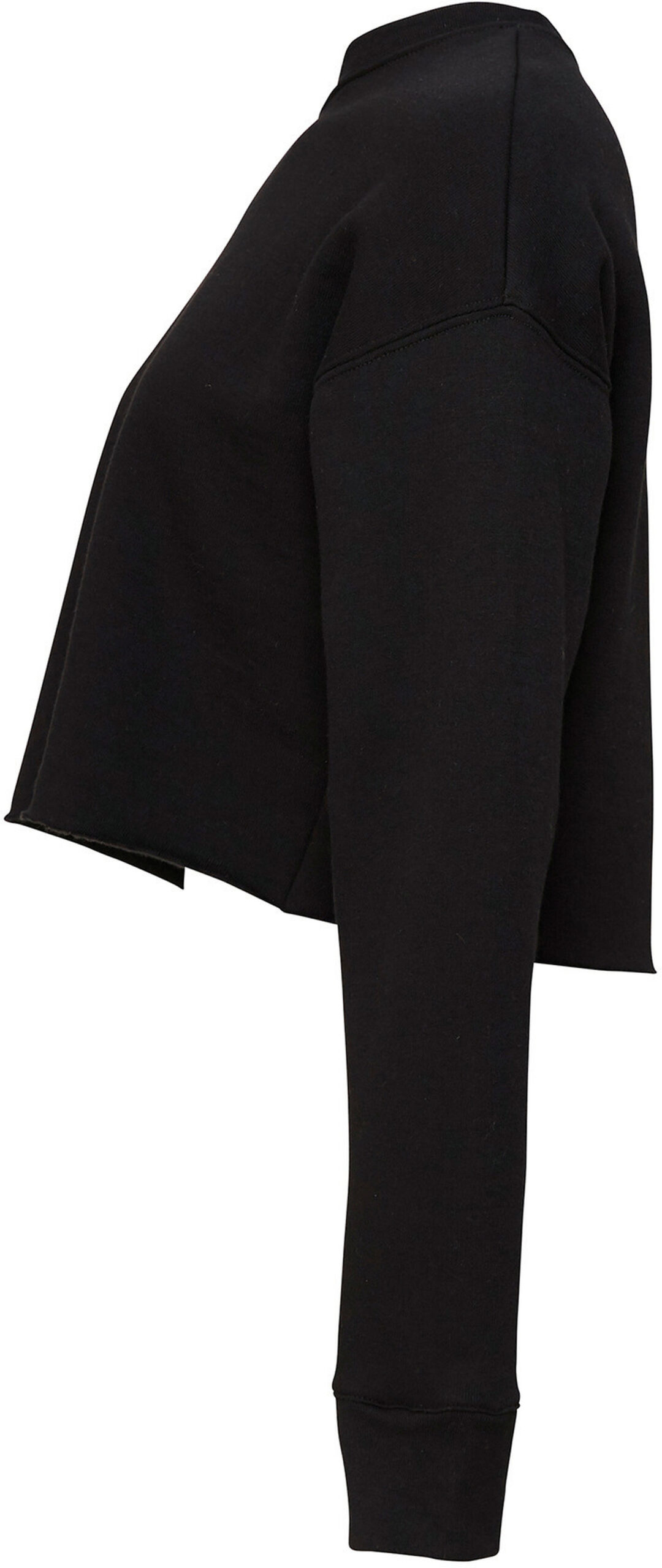 52% algodão penteado ringspun/48% poliéster. Sweatshirt com decote redondo. Corte curto fashion e sem acabamento na bainha, com costura inacabada. Costuras laterais. Punhos com acabamento em malha rib.