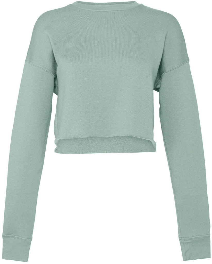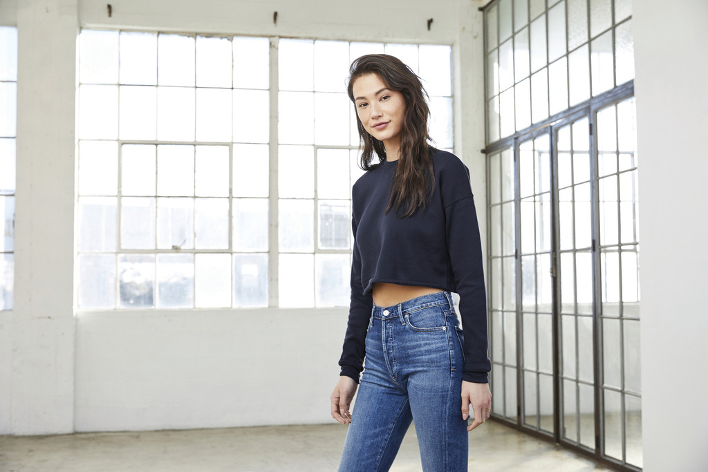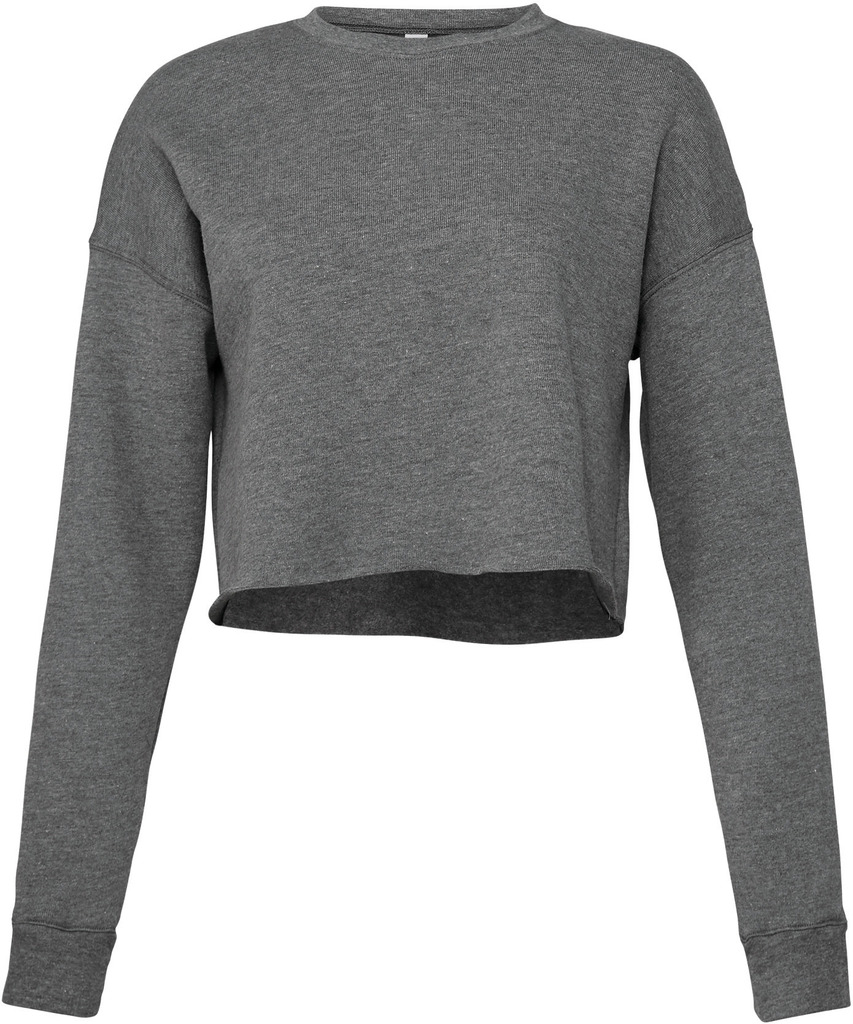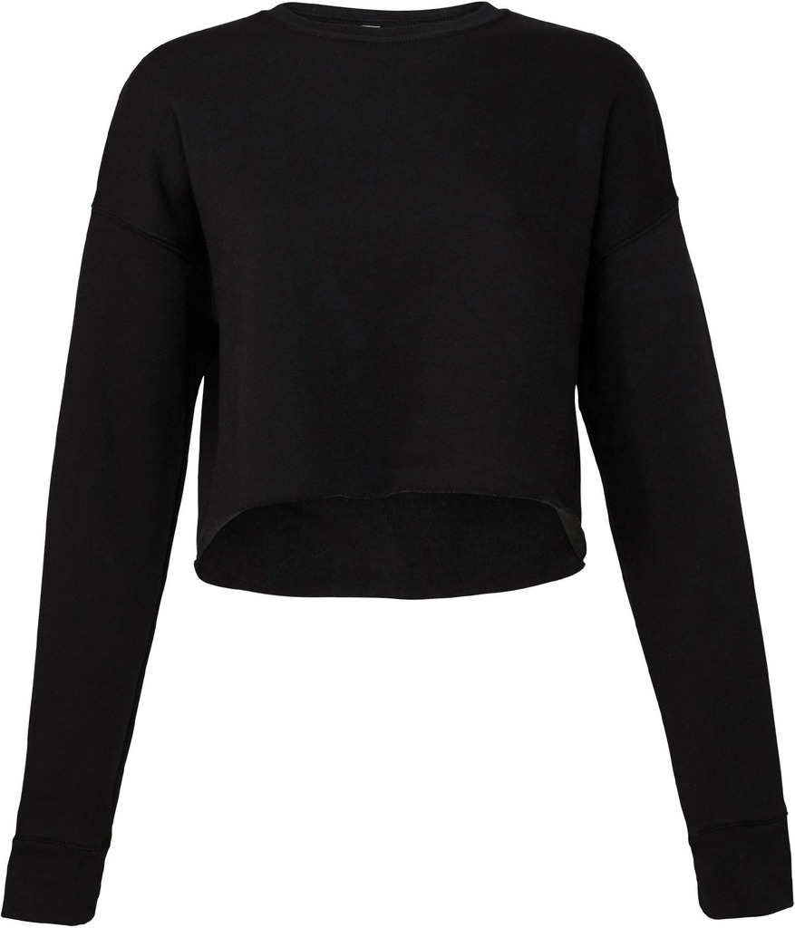 52% algodão penteado ringspun/48% poliéster. Sweatshirt com decote redondo. Corte curto fashion e sem acabamento na bainha, com costura inacabada. Costuras laterais. Punhos com acabamento em malha rib.