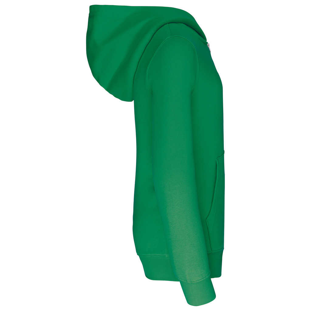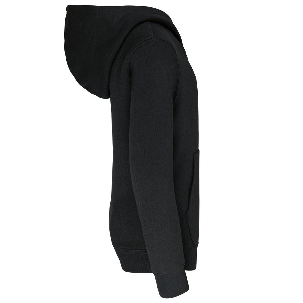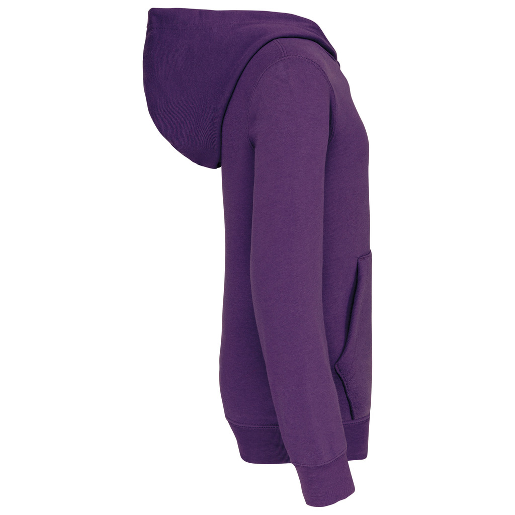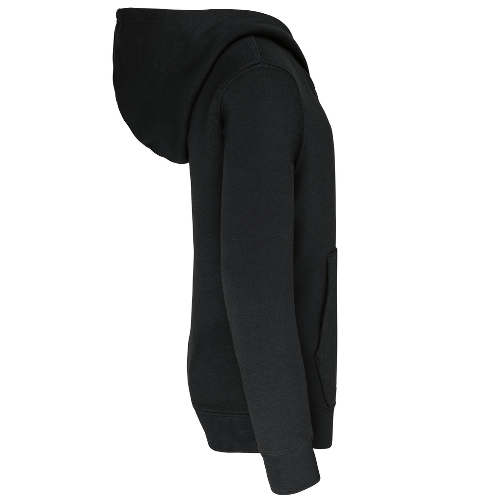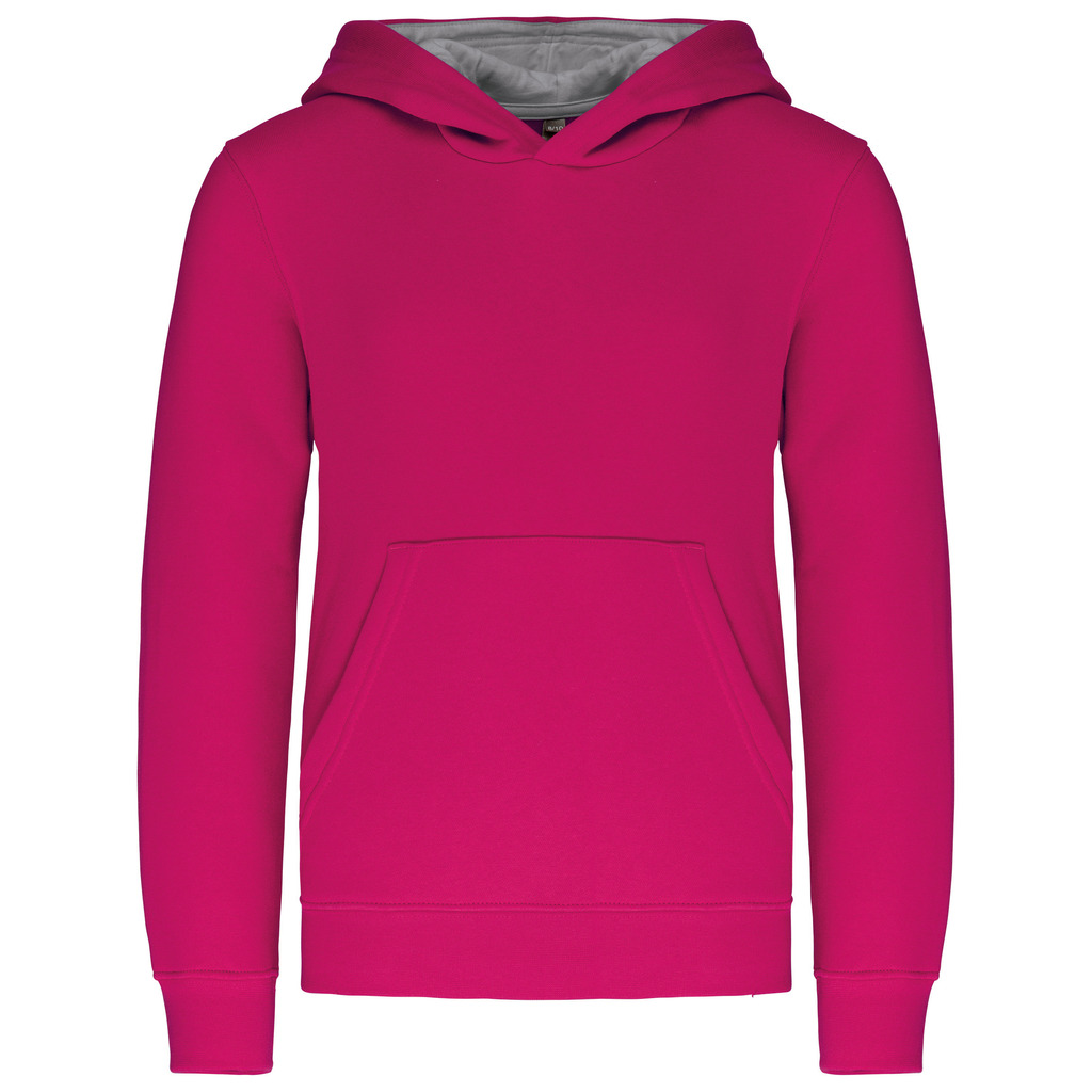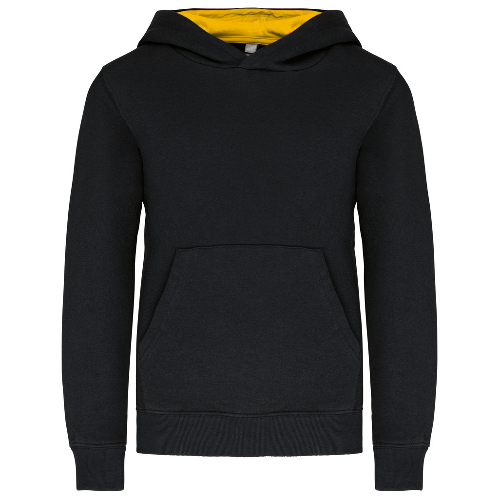 80% algodão penteado / 20% poliéster. Interior cardado. Bolso canguru com orificio de acesso para os auriculares. Acabamento da manga e cós em malha rib. Interior do capuz em contraste.