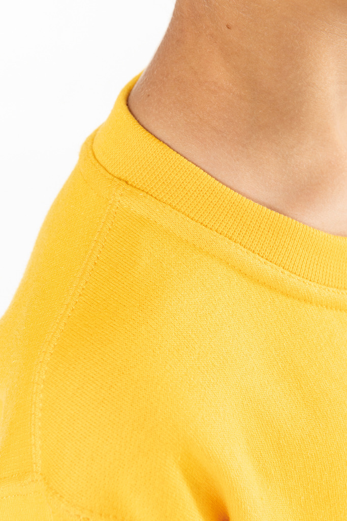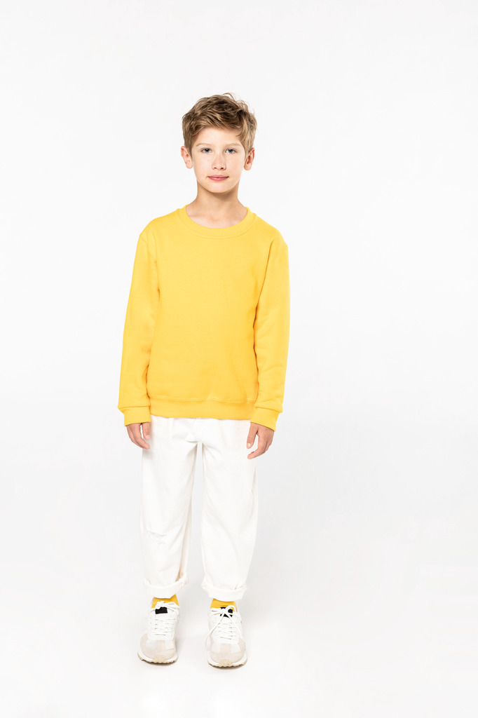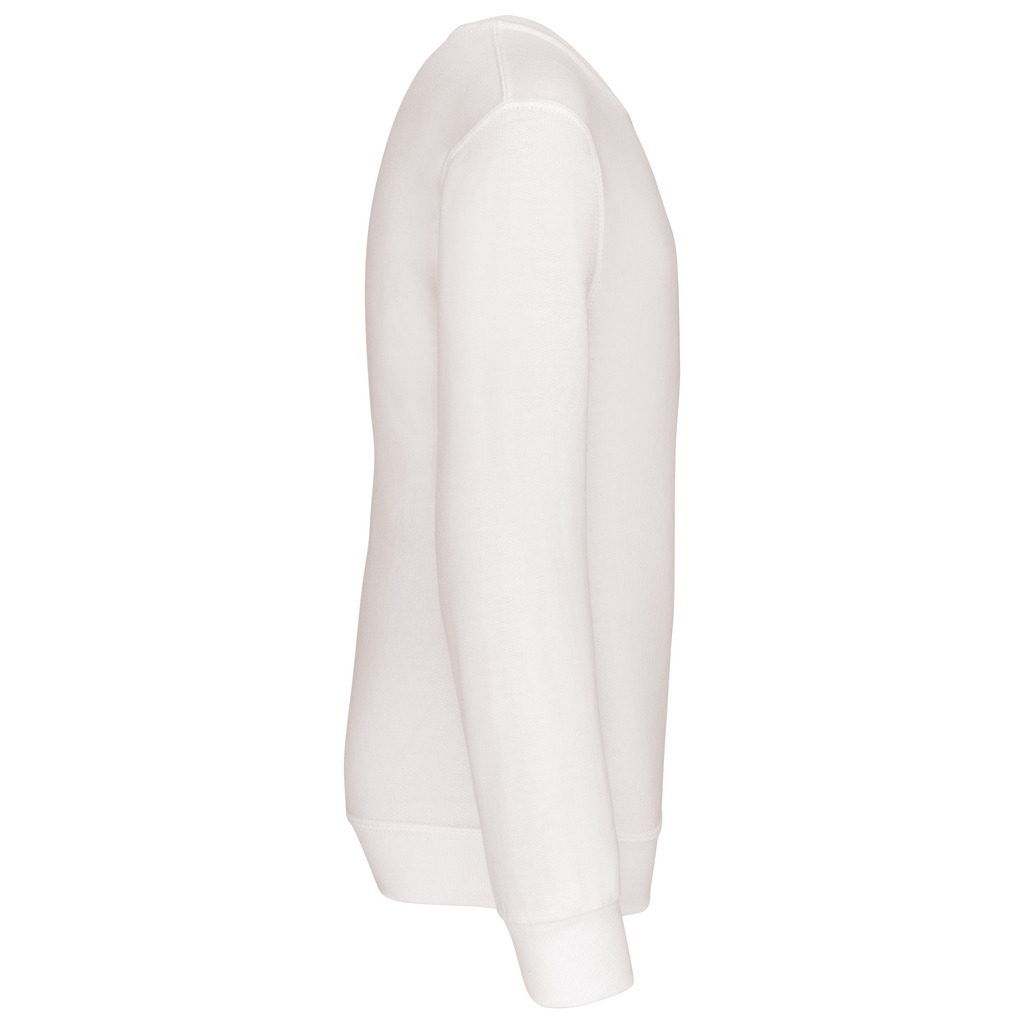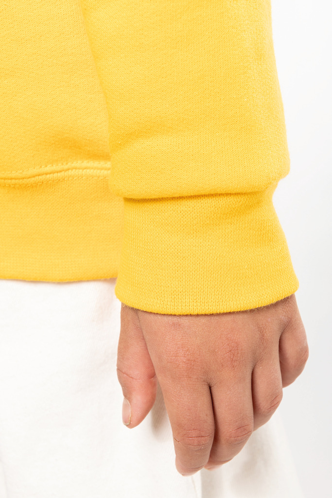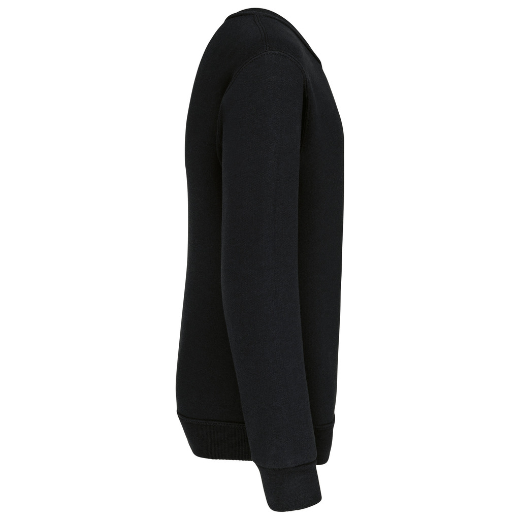 80% algodão / 20% poliéster. Interior cardado. Mangas direitas. Acabamento do decote, manga e cós em malha.