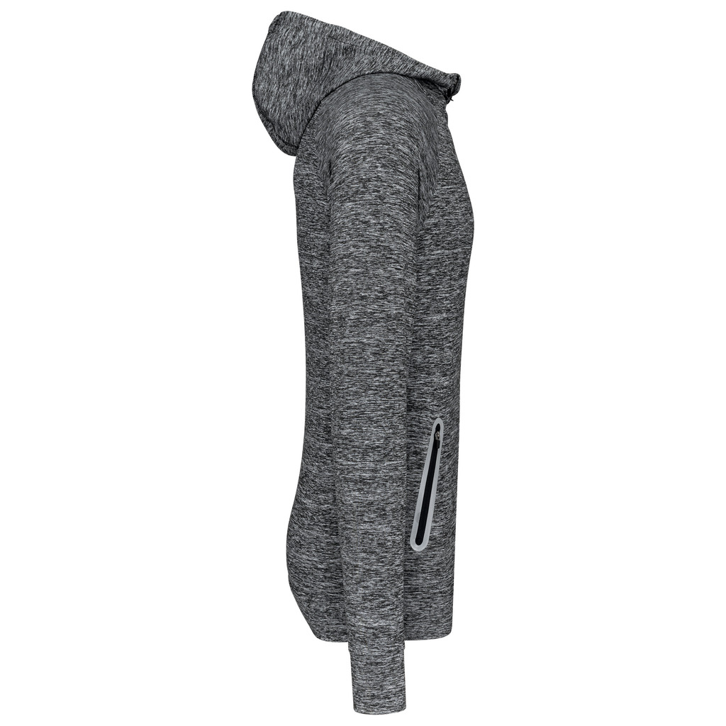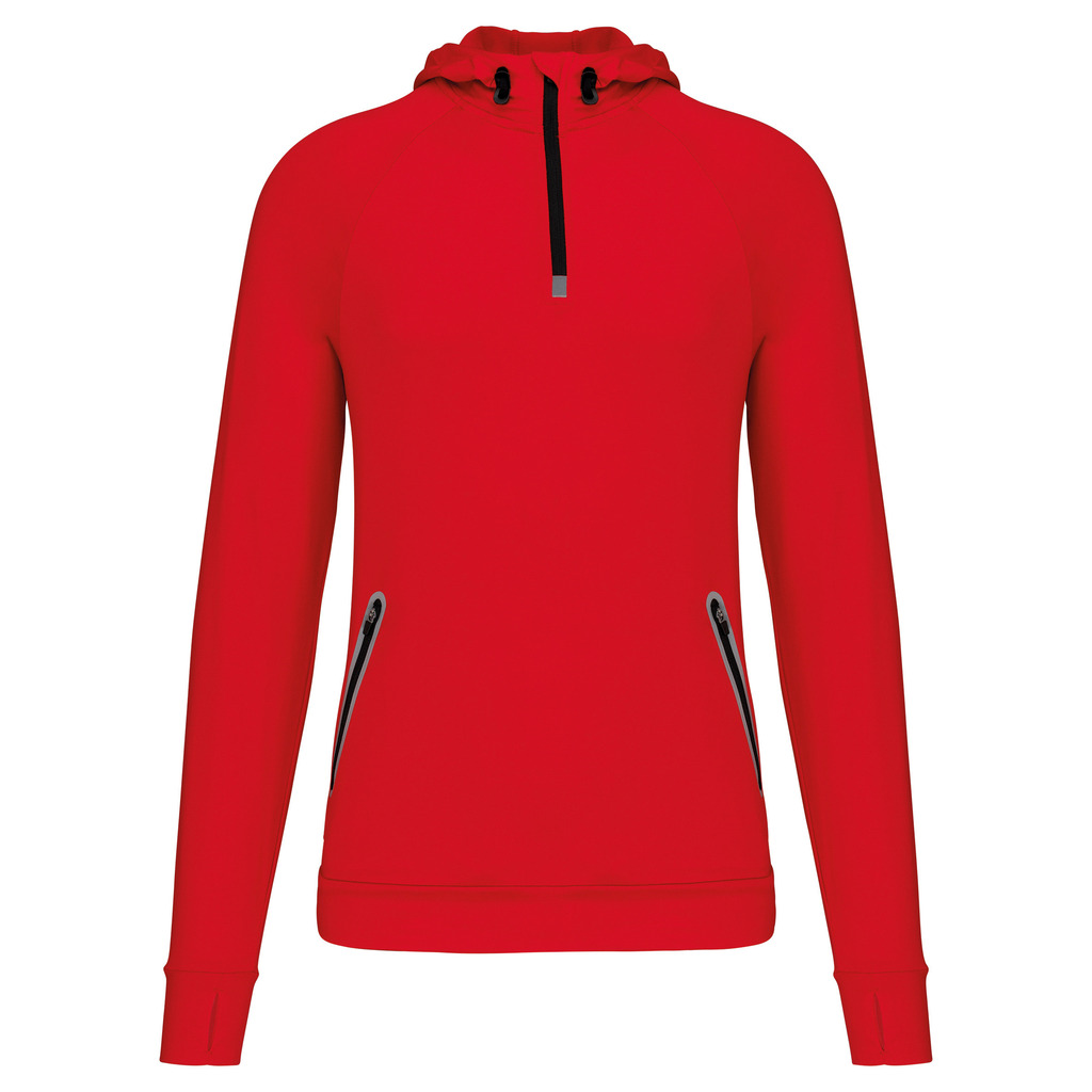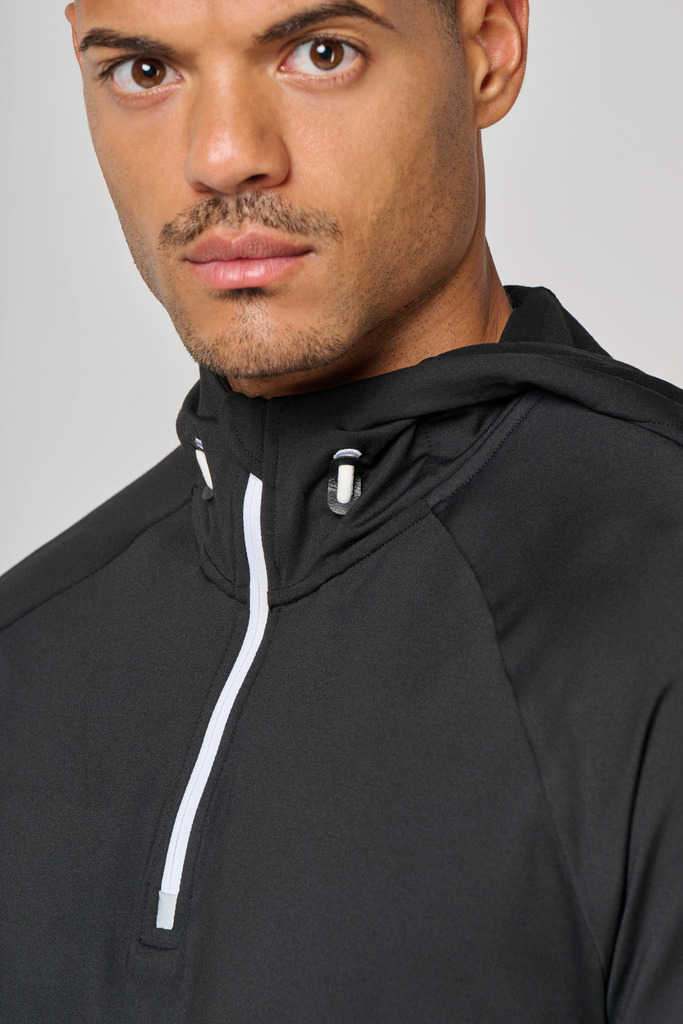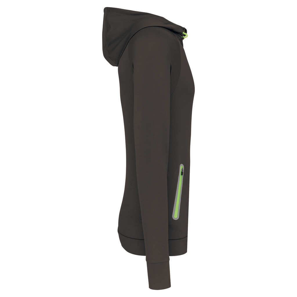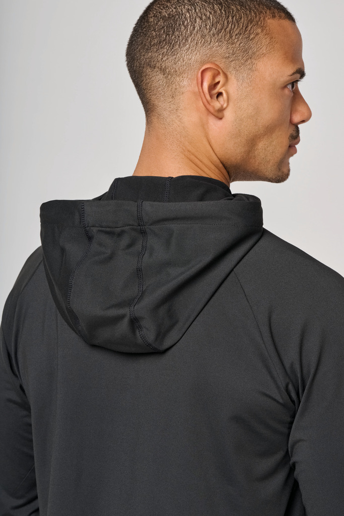 90% poliéster/10% elastano. Tecido jersey cardado ultra-suave. Mangas raglan. 2 bolsos com fecho e reflectores. Fechos e cordões: White para a cor Navy, Black para a cor Red e Sport Grey Melange e Lime para a cor Dark Grey.