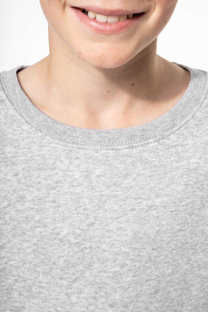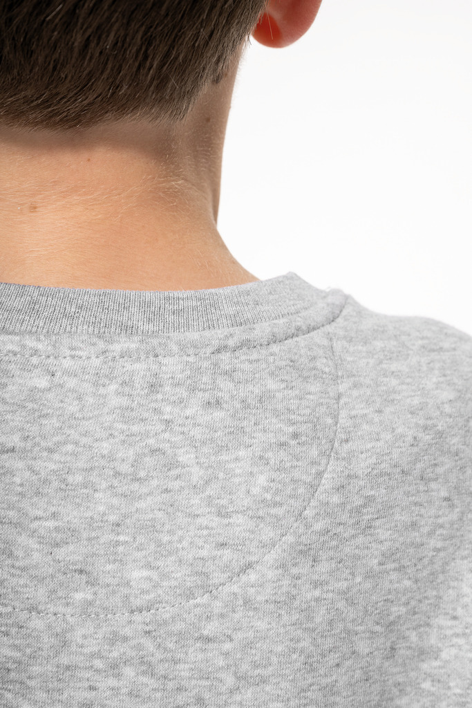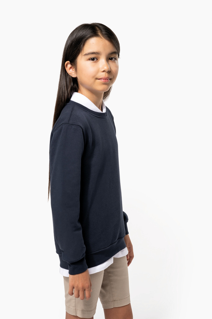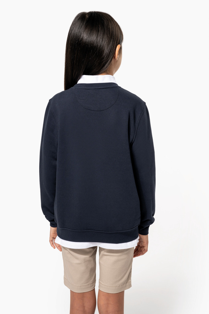 80% algodão / 20% poliéster. Algodão penteado. Tecido cardado com 3 fios LSF (Low Shrinkage Fleece) com tratamento antiborboto. Fabricada em Portugal. Corte justo. Decote, punhos e bainha em malha rib 1×1. Acabamento com pesponto duplo nos ombros, cavas, punhos e bainha. Tapa-costuras em jersey tom sobre tom no acabamento do interior do decote. Meia-lua nas costas. Etiqueta no interior da peça para escrever o nome. Sem etiqueta de marca no decote, apenas indicação de tamanho amovível para facilitar a personalização.