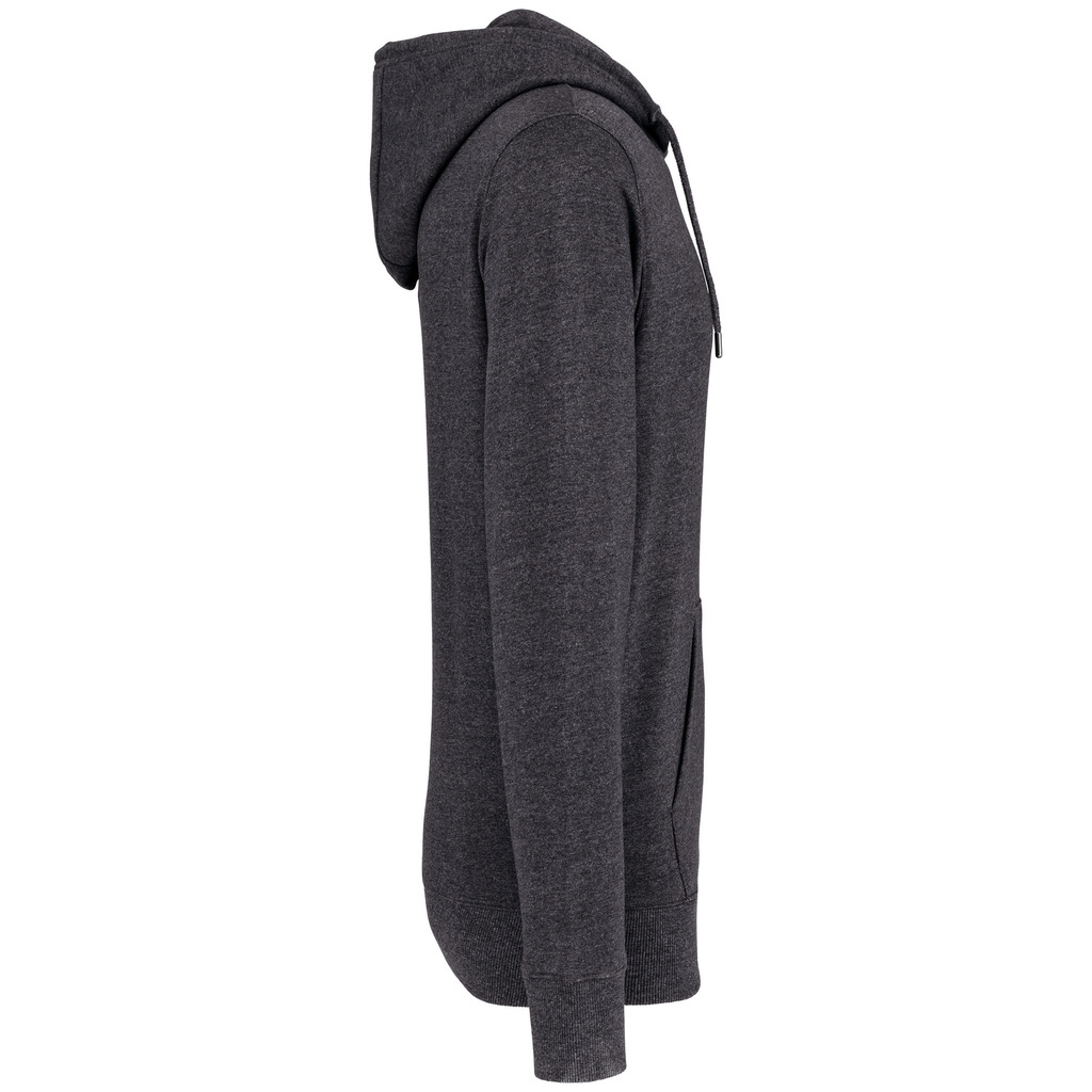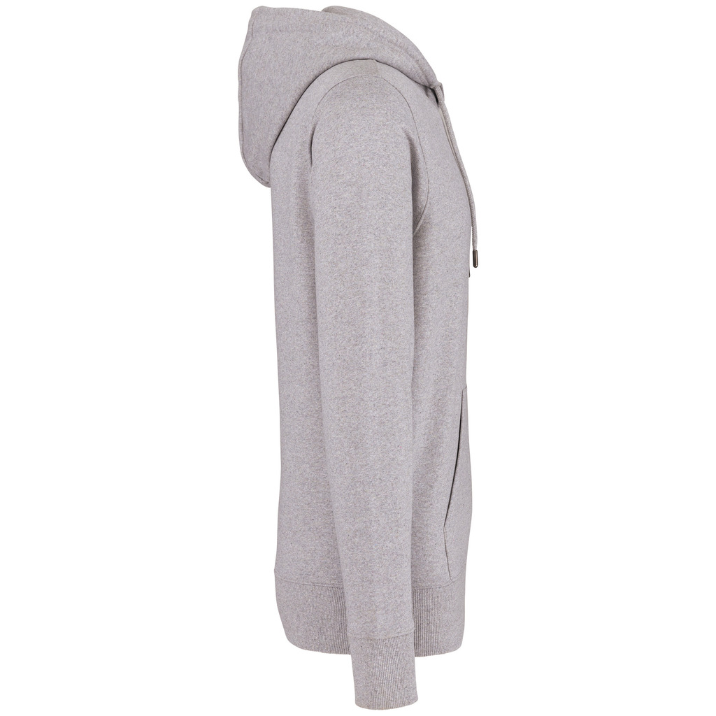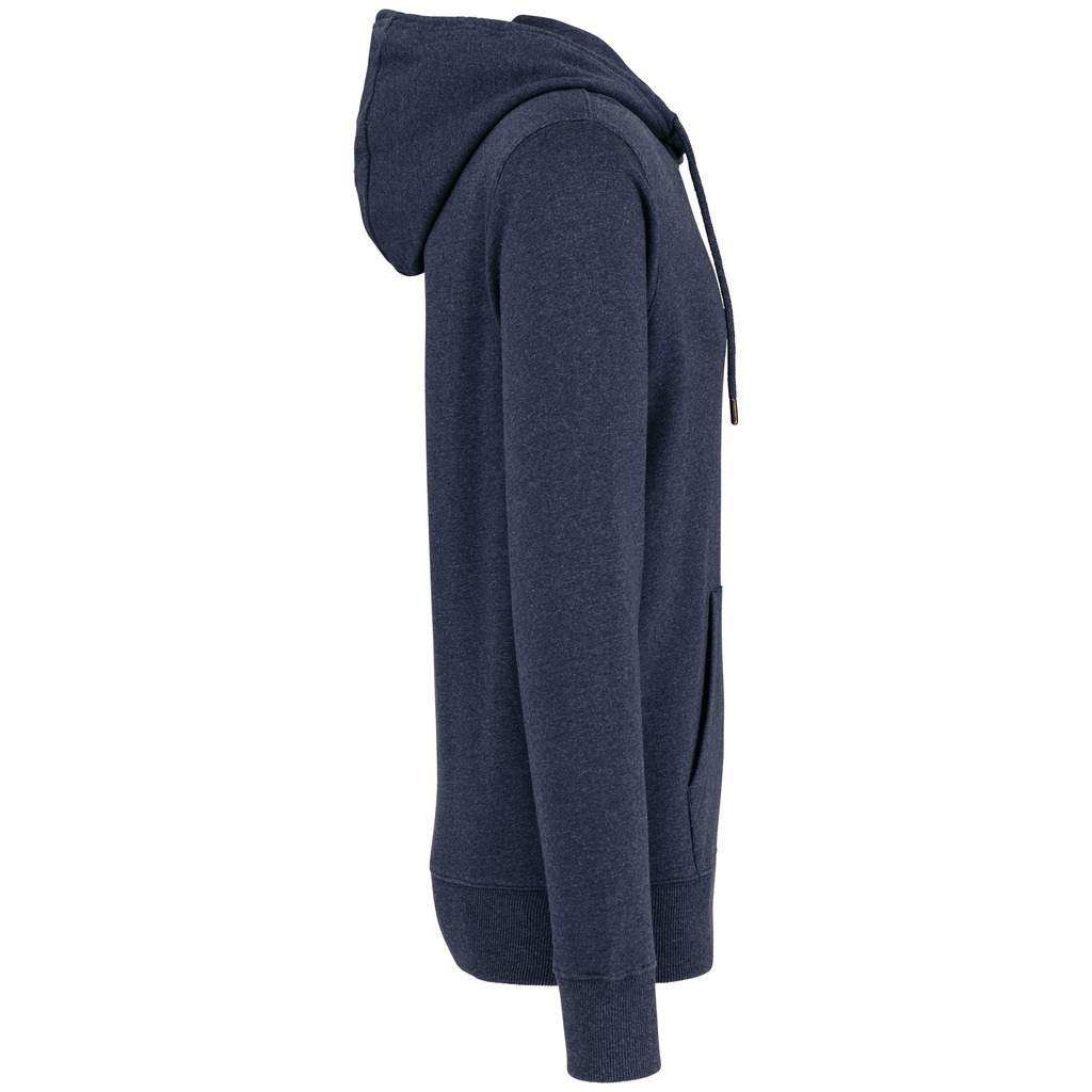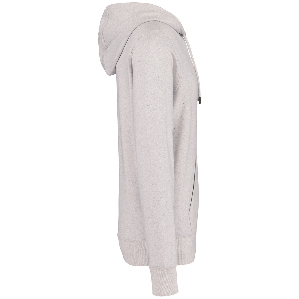 55% algodão reciclado pré-consumo / 45% poliéster reciclado pós-consumo. Corte justo. Interior cardado em contraste. Meia-lua em contraste. Bolso à canguru. Malha rib 2 x 2 no decote, no cós e nos punhos. Pesponto duplo nos punhos, cavas, no cós e decote. Tapa-costuras no interior. Capuz forrado no material principal. Cordão do capuz redondo com extremidade em metal. Ilhós do cordão costurado. Os produtos compostos por materiais reciclados podem apresentar ligeiras variações de composição e de cor.