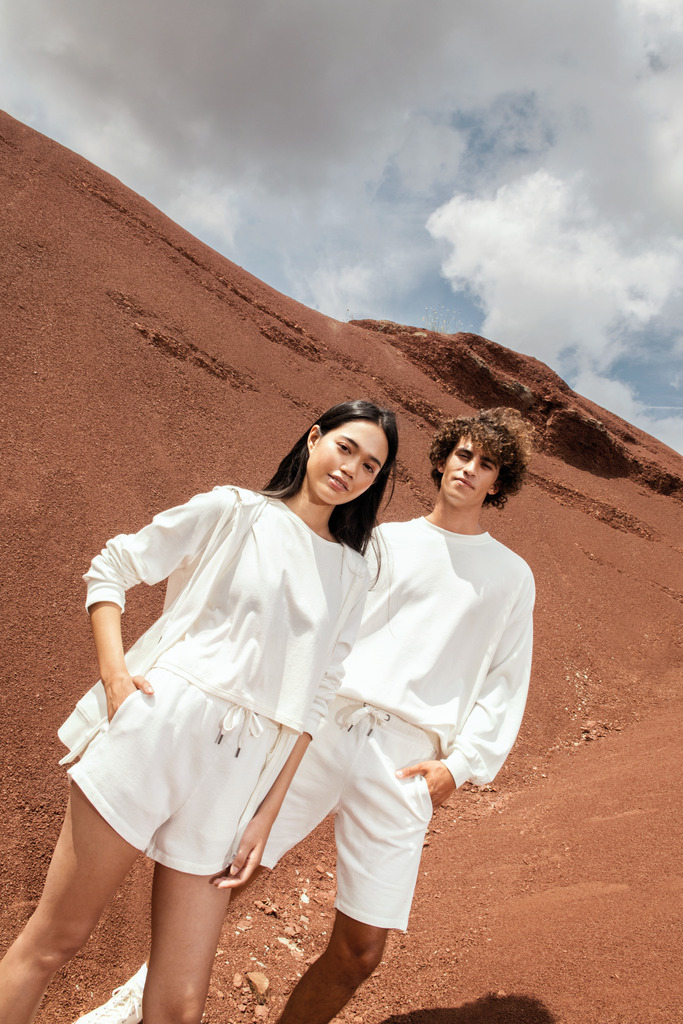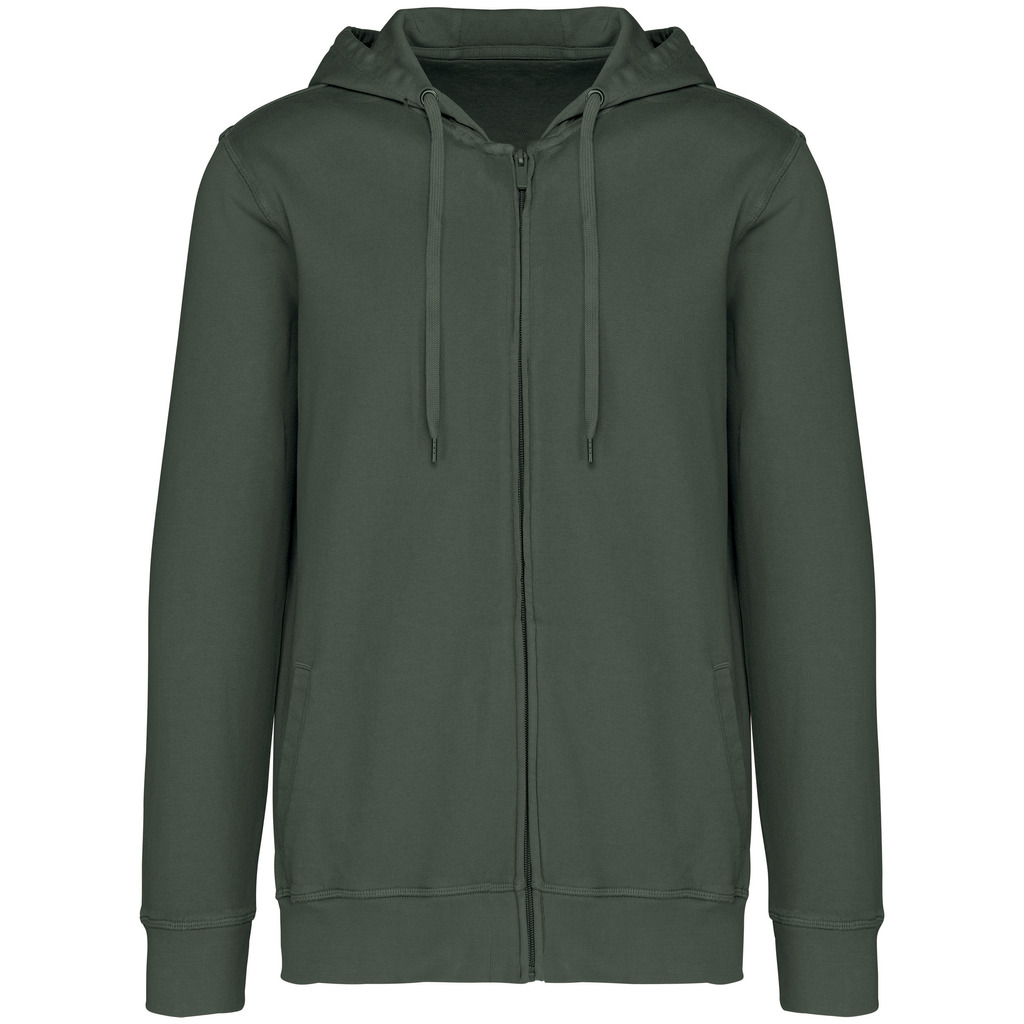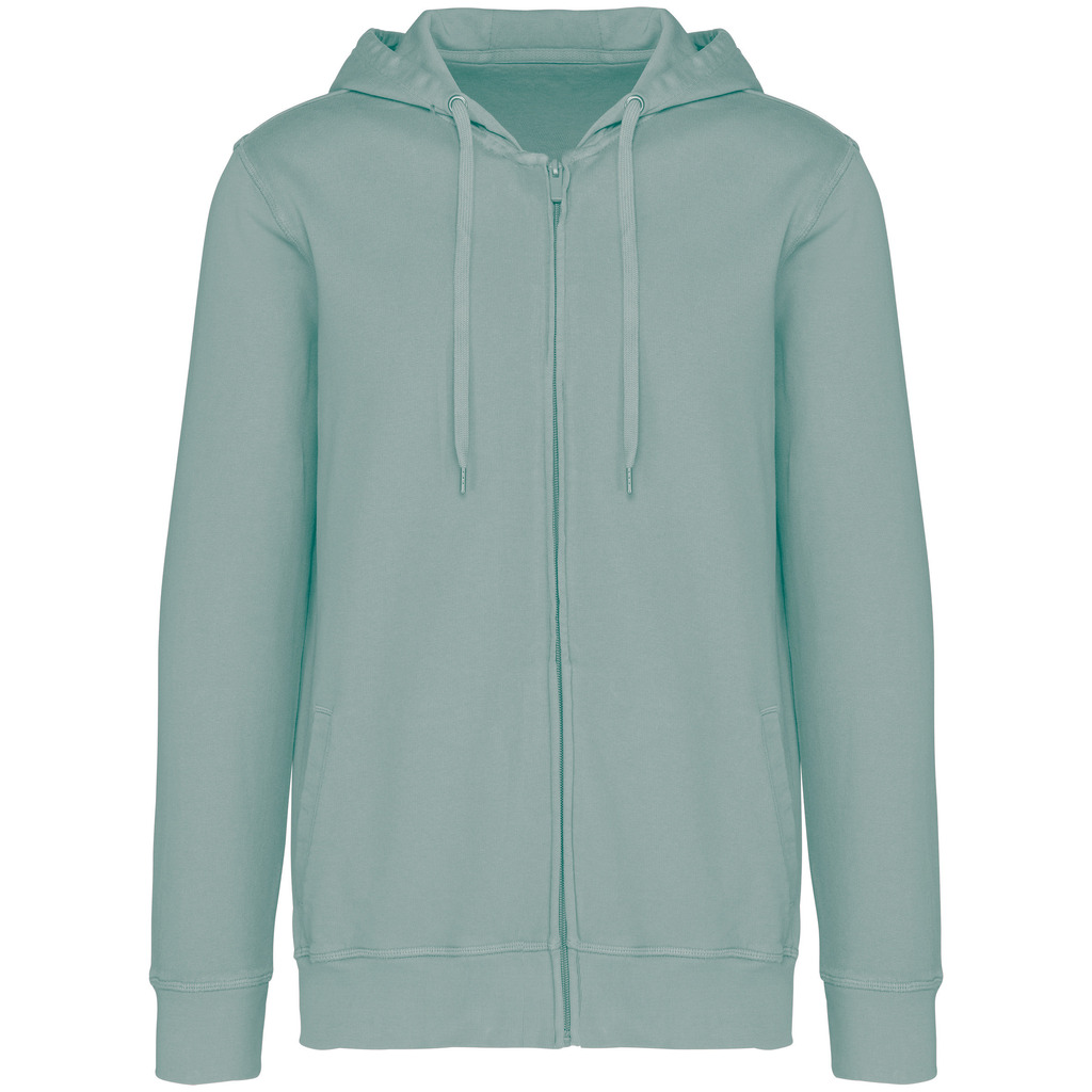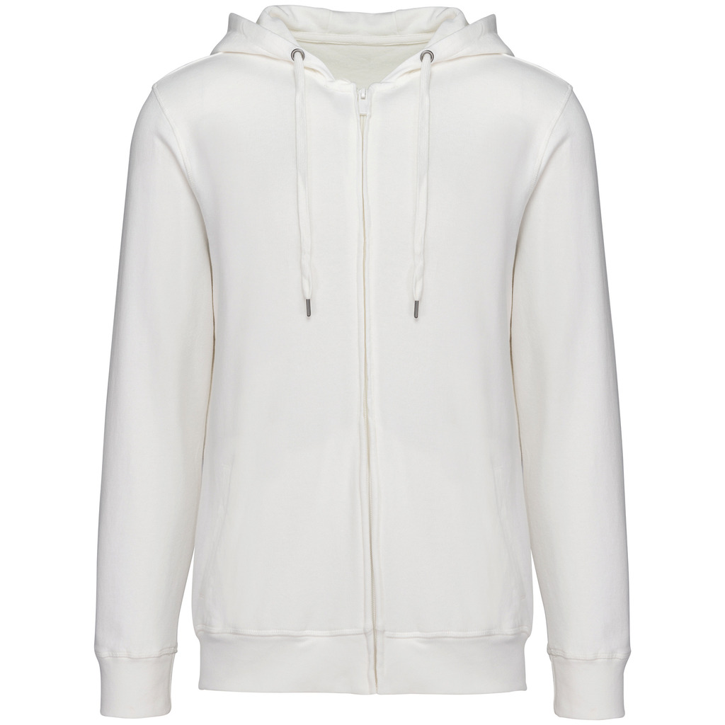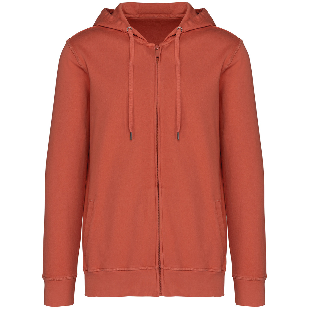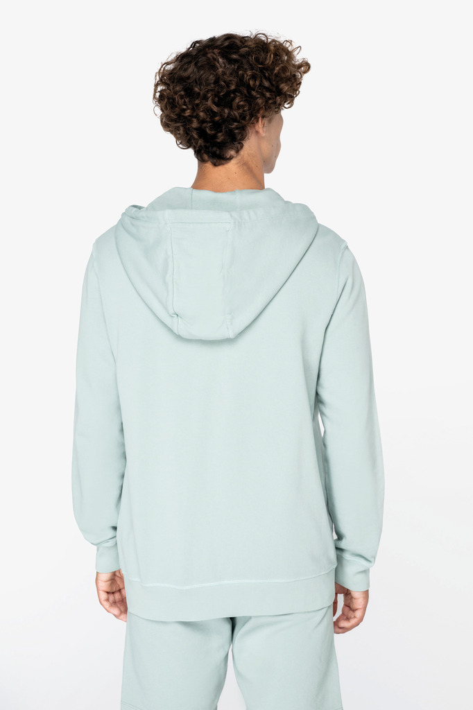 100% algodão biológico. Fabricada em Portugal. Algodão penteado ringspun. Corte justo. Banho de enzimas. Interior não cardado (French Terry). Meia-lua nas costas. Fecho em nylon reciclado. 2 bolsos frontais. Capuz com 3 painéis forrado no material principal. Cordão plano tom sobre tom, pontas e ilhós em metal reciclado. Ponto de recobrimento no decote, nas cavas, nos punhos e no cós. Malha rib 1 x 1 nos punhos, no decote e no cós. Tapa-costuras interior em chevron. Peça tingida após confecção: as cores podem variar ligeiramente de produto para produto. Este produto é susceptÃvel de tingir em contacto com superfÃcies ou peças de roupa claras.