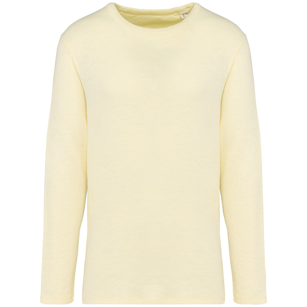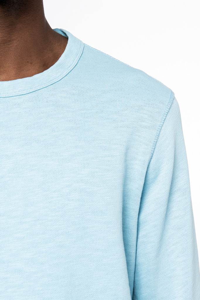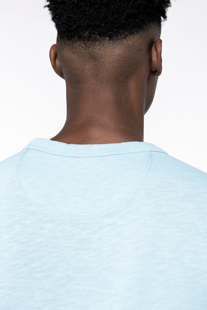 100% algodão biológico. Fabricada em Portugal. Corte justo. Interior não cardado (Light French Terry). Decote com acabamento diferente. Ponto de recobrimento nas cavas, no decote, nos punhos e no cós. Aberturas laterais com tapa-costuras em chevron. Peça tingida após confecção: as cores podem variar ligeiramente de produto para produto. Este produto é susceptÃvel de tingir em contacto com superfÃcies ou peças de roupa claras.