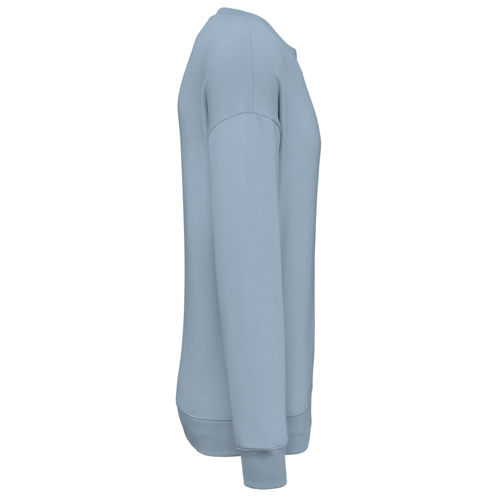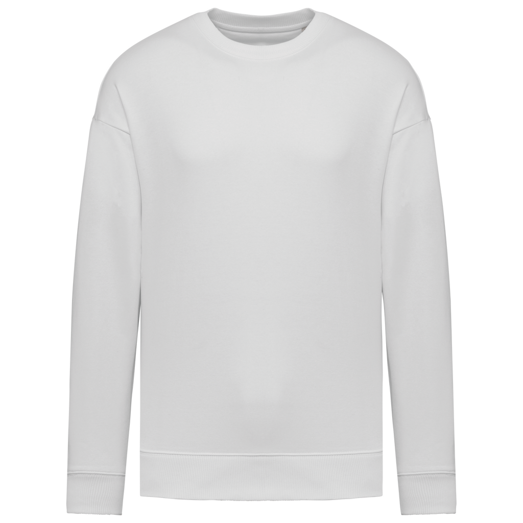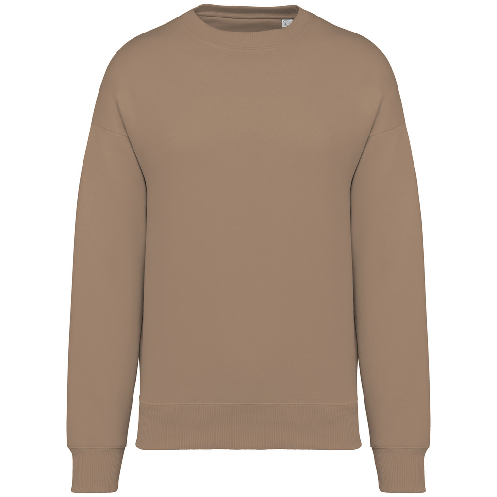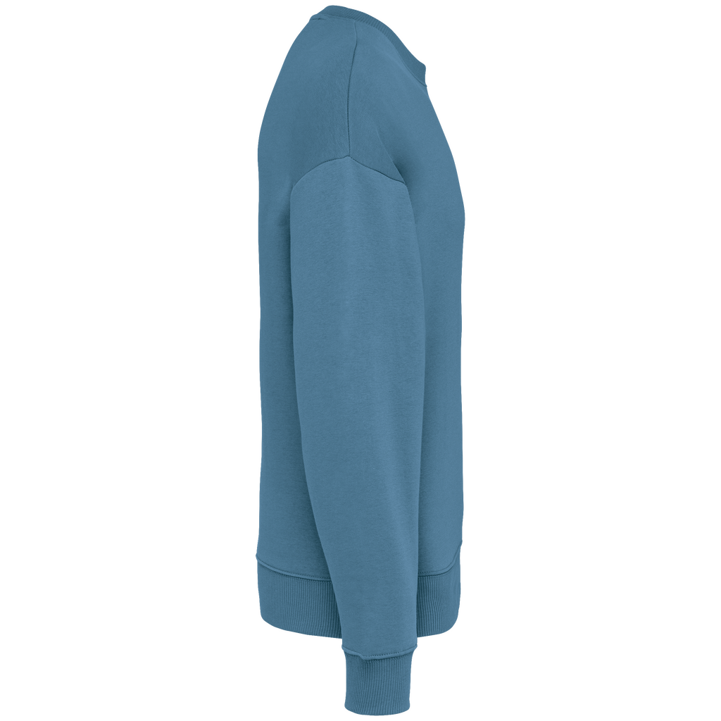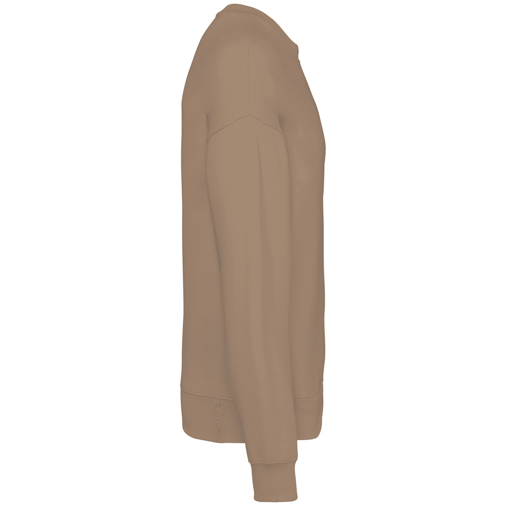 85% algodão biológico / 15% poliéster reciclado. Algodão penteado ringspun. Banho de enzimas. Corte oversize com ombros descaÃdos. Interior cardado 3 fios LSF (Low Shrinkage Fleece). Meia-lua nas costas. Malha rib 2 x 1 no decote no cós e nos punhos. Pesponto duplo no decote, nos punhos e no cós. Tapa-costuras no interior do decote em chevron tom sobre tom. A cor Raw Natural distingue-se pelo seu aspecto bruto visualmente texturado, salpicada de partÃculas finas visÃveis a olho nu.