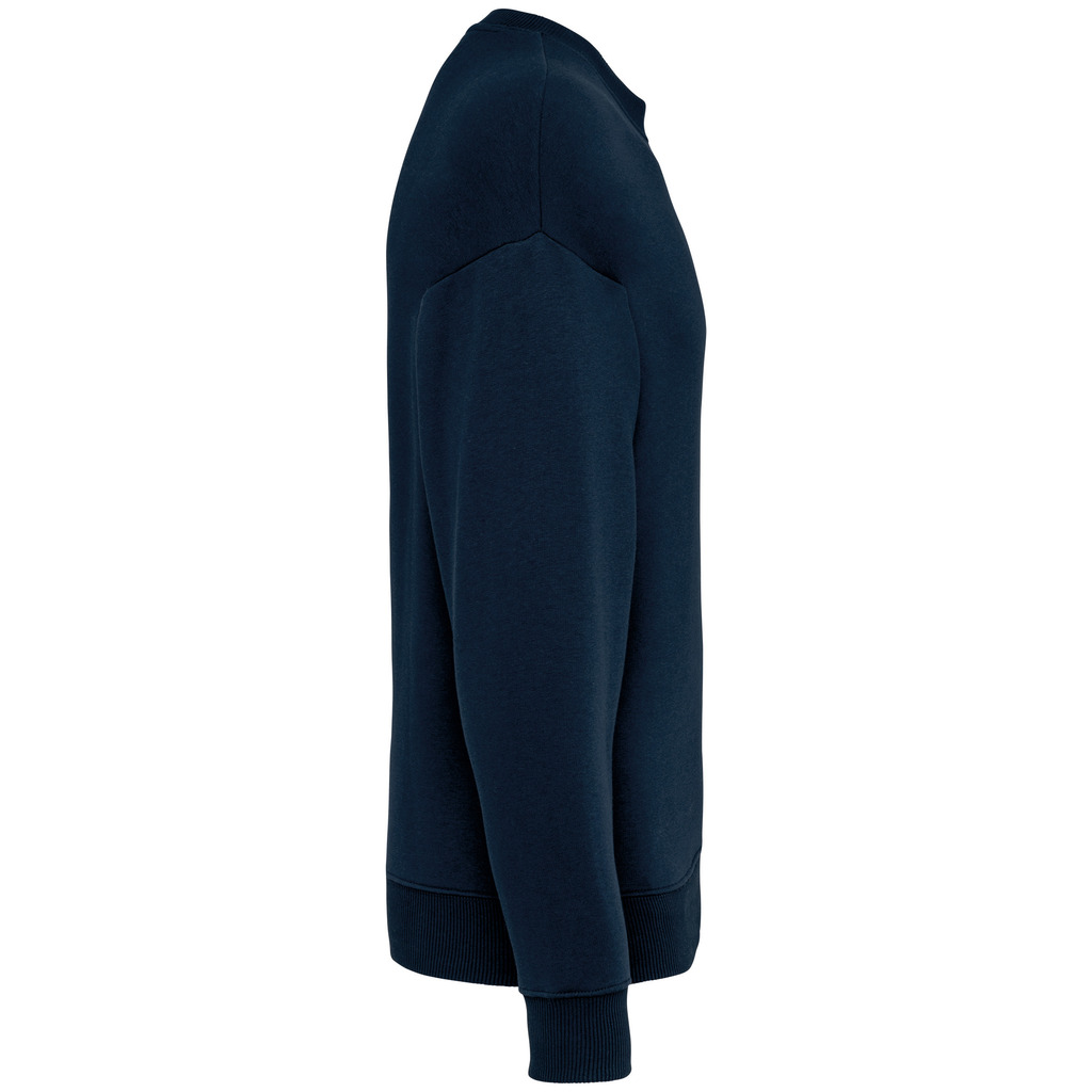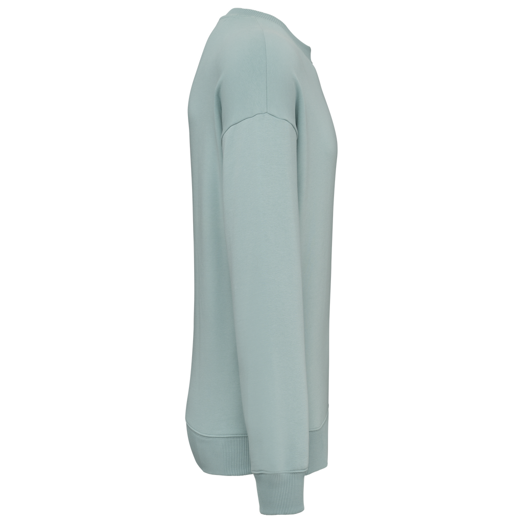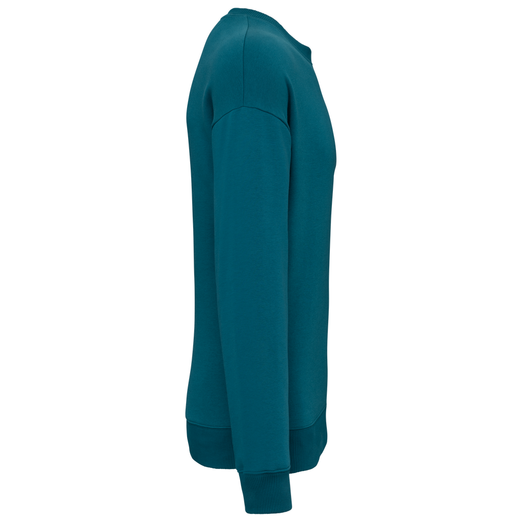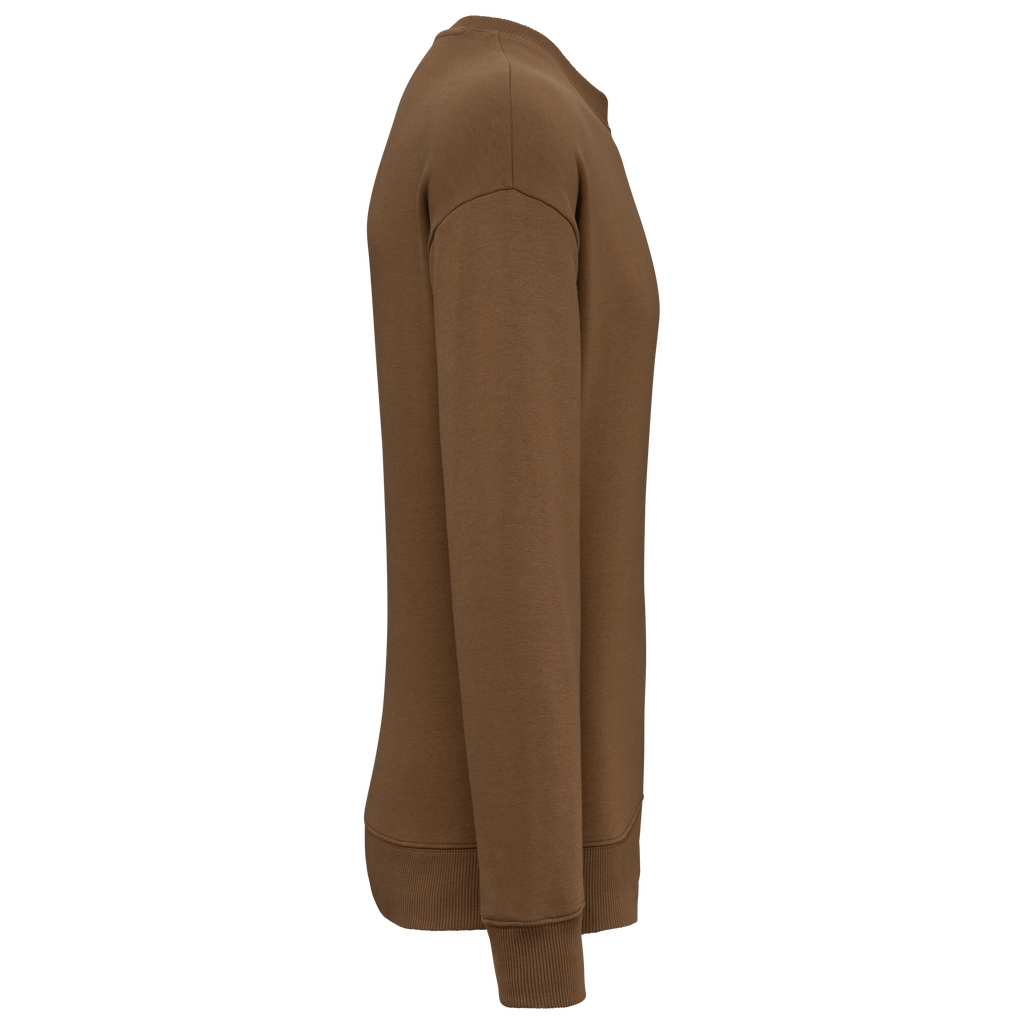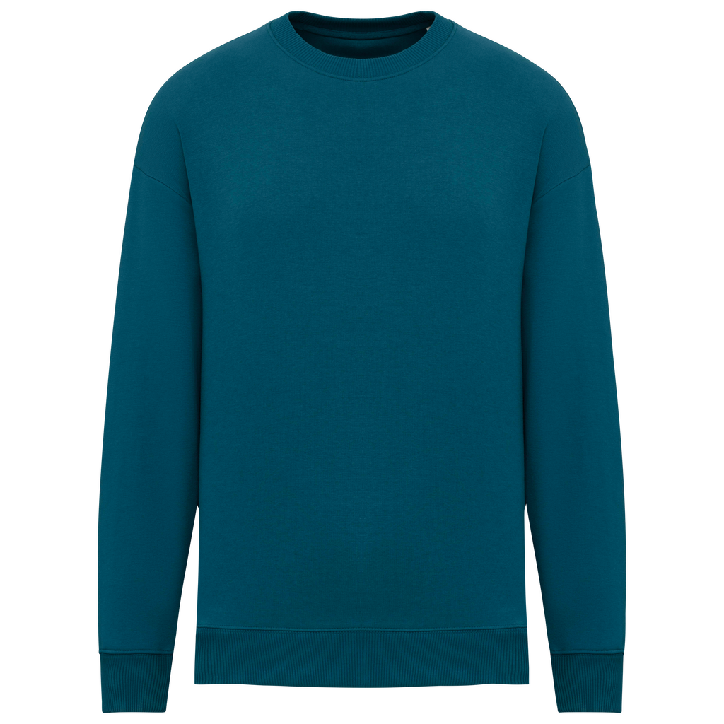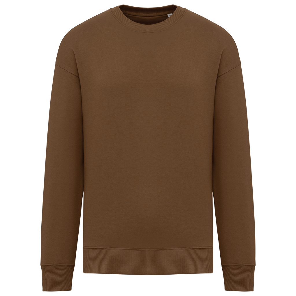 85% algodão biológico / 15% poliéster reciclado. Algodão penteado ringspun. Banho de enzimas. Corte oversize com ombros descaÃdos. Interior cardado 3 fios LSF (Low Shrinkage Fleece). Meia-lua nas costas. Malha rib 2 x 1 no decote no cós e nos punhos. Pesponto duplo no decote, nos punhos e no cós. Tapa-costuras no interior do decote em chevron tom sobre tom. A cor Raw Natural distingue-se pelo seu aspecto bruto visualmente texturado, salpicada de partÃculas finas visÃveis a olho nu.