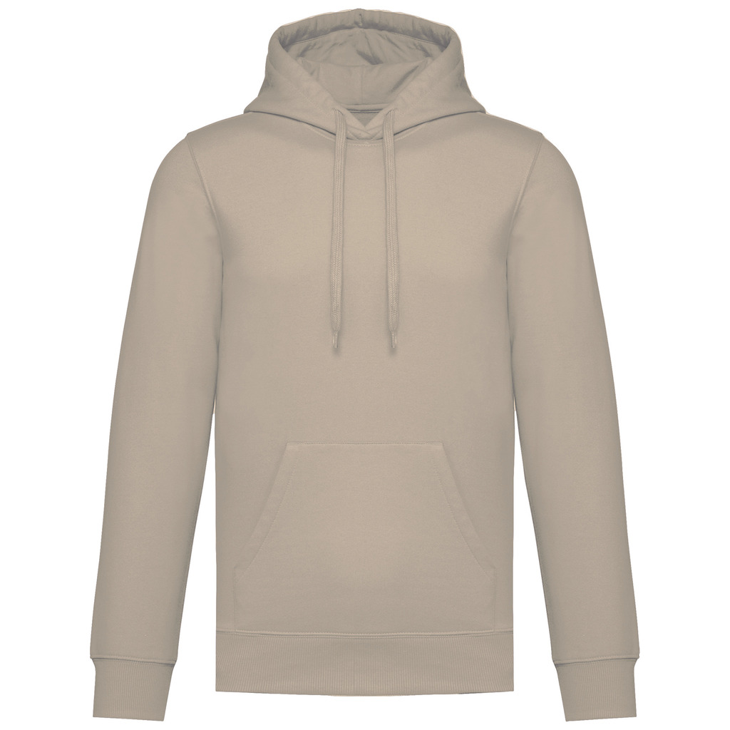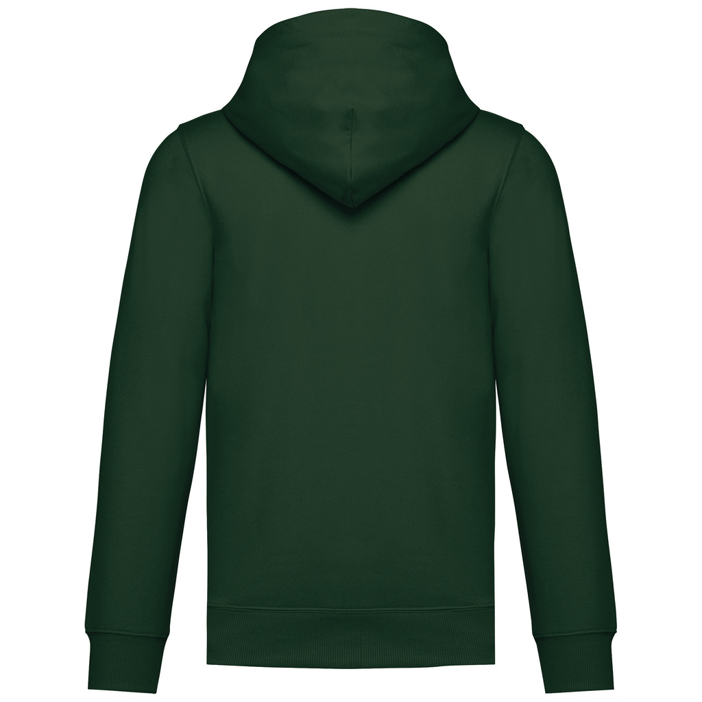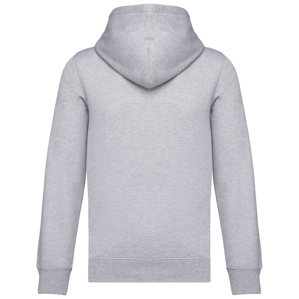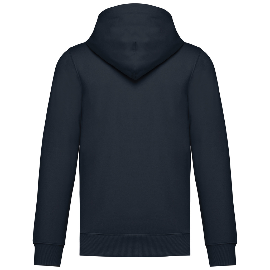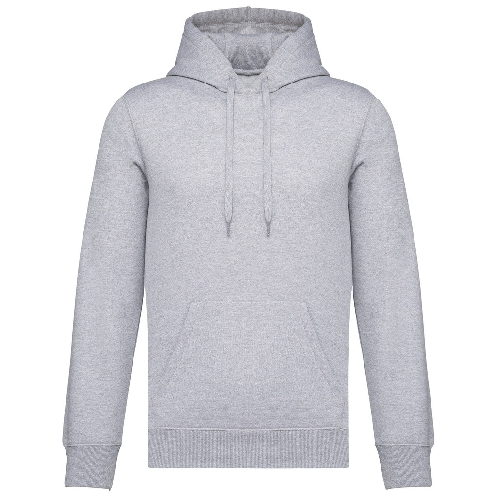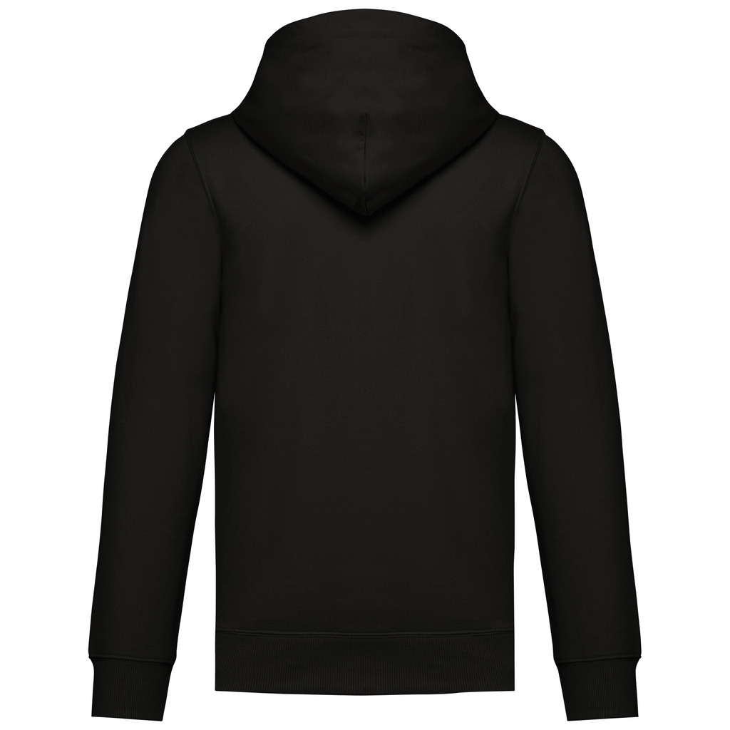 50% algodão ringspun / 50% poliéster reciclado pós-consumo. Interior cardado. Corte direito. Corte e cose. Malha rib 2×1 montagem tubular para melhor acabamento do decote, dos punhos e da bainha. Bolso à canguru. Capuz forrado em poliéster / algodão jersey com cordão de ajuste plano. Tapa-costuras em jersey tom sobre tom no interior do decote. Sem etiqueta de marca no decote, apenas com indicação de tamanho para facilitar a personalização.