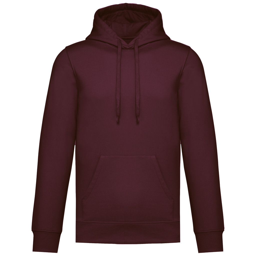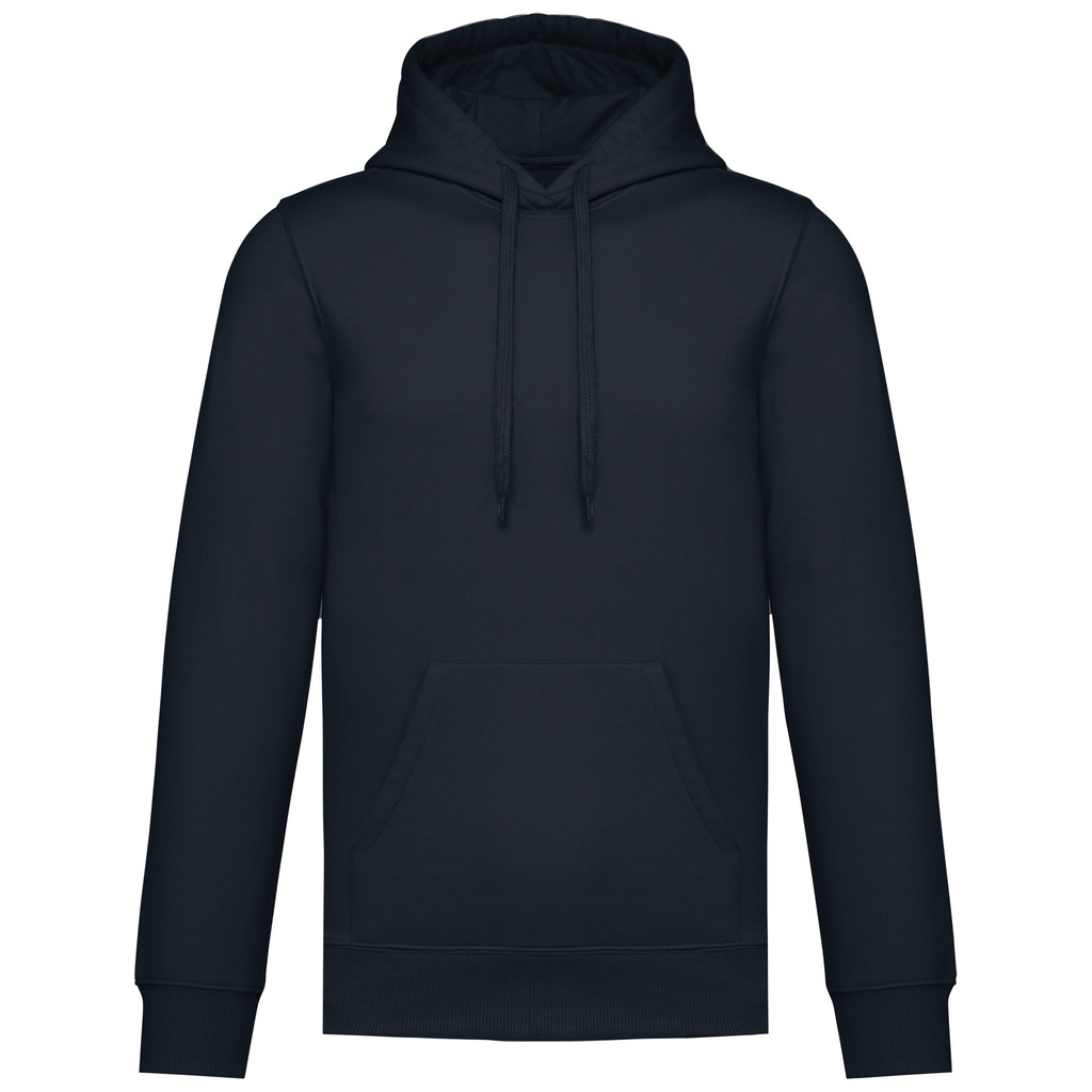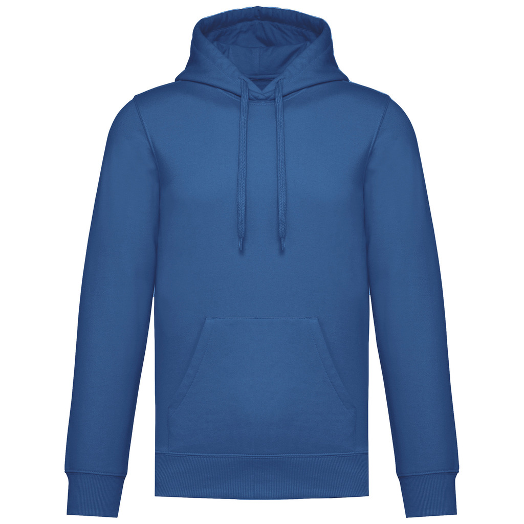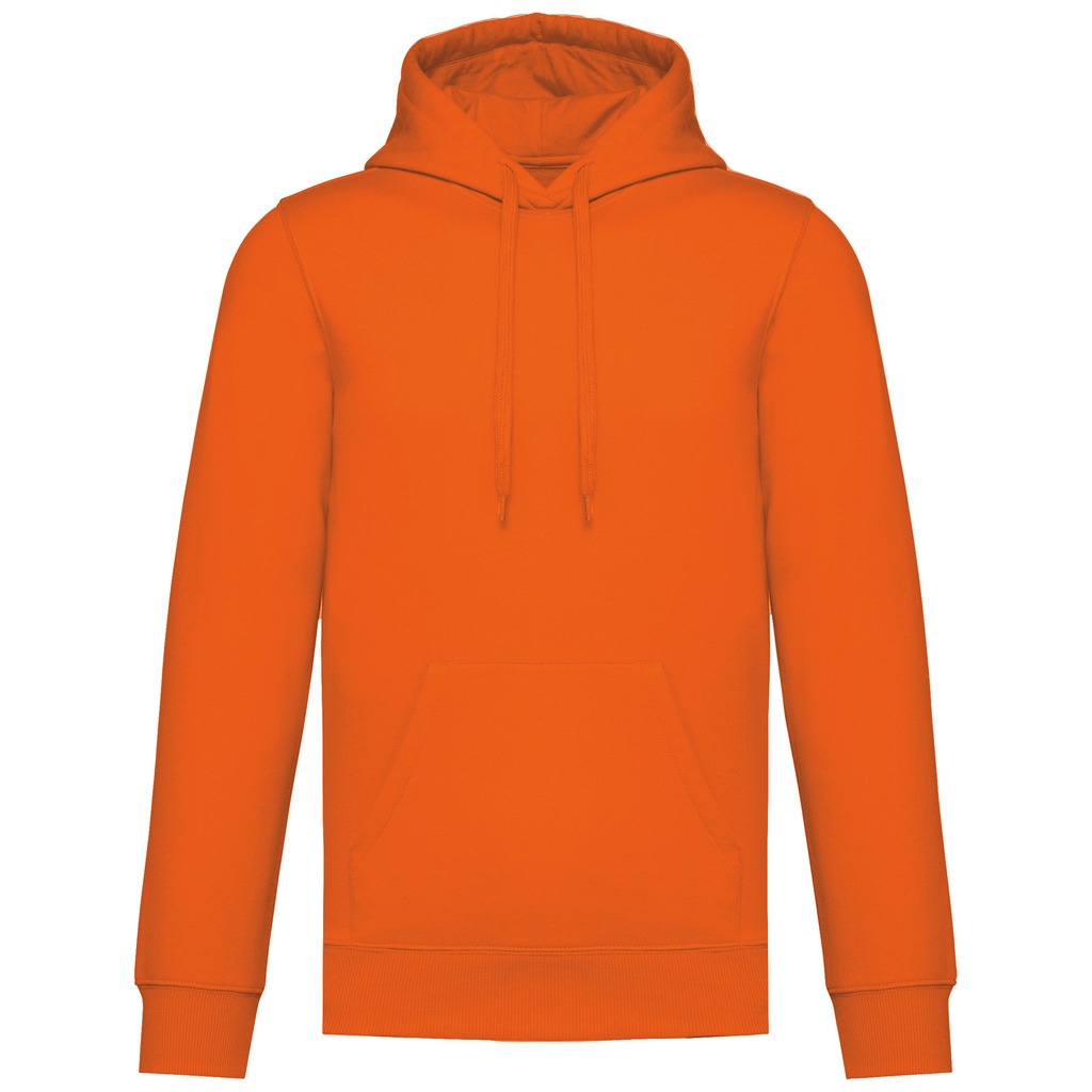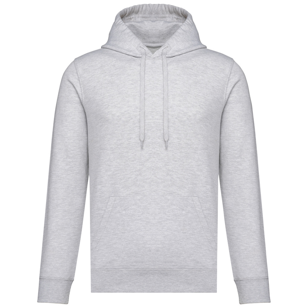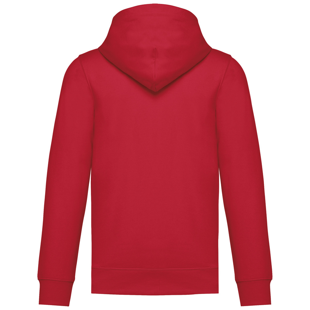 50% algodão ringspun / 50% poliéster reciclado pós-consumo. Interior cardado. Corte direito. Corte e cose. Malha rib 2×1 montagem tubular para melhor acabamento do decote, dos punhos e da bainha. Bolso à canguru. Capuz forrado em poliéster / algodão jersey com cordão de ajuste plano. Tapa-costuras em jersey tom sobre tom no interior do decote. Sem etiqueta de marca no decote, apenas com indicação de tamanho para facilitar a personalização.