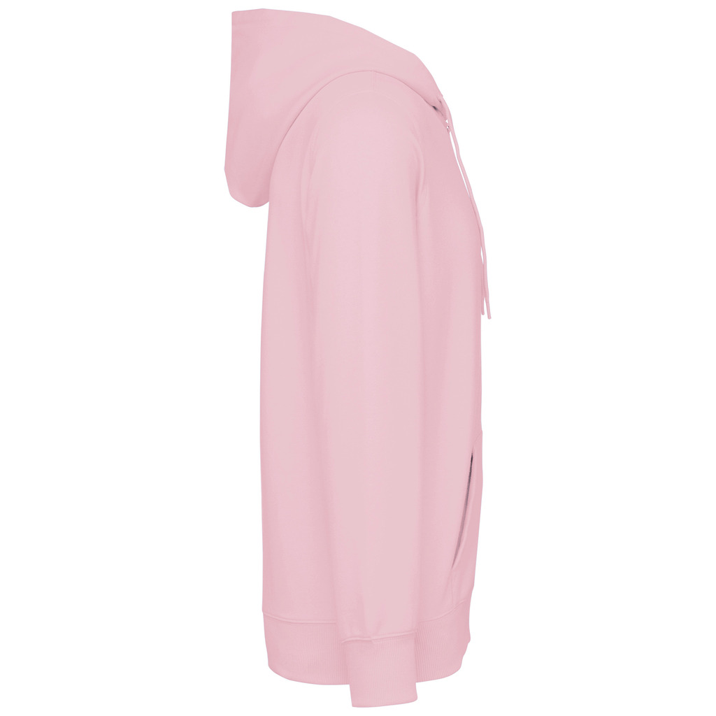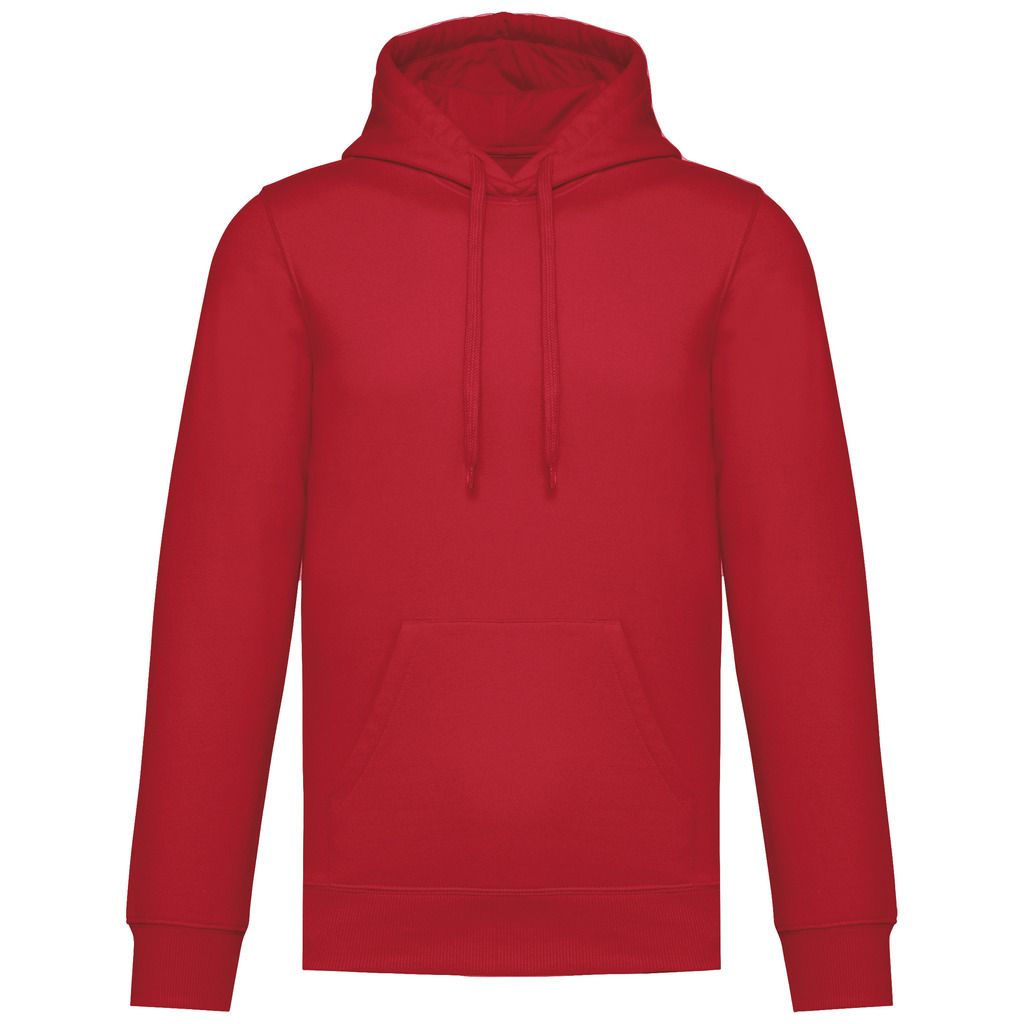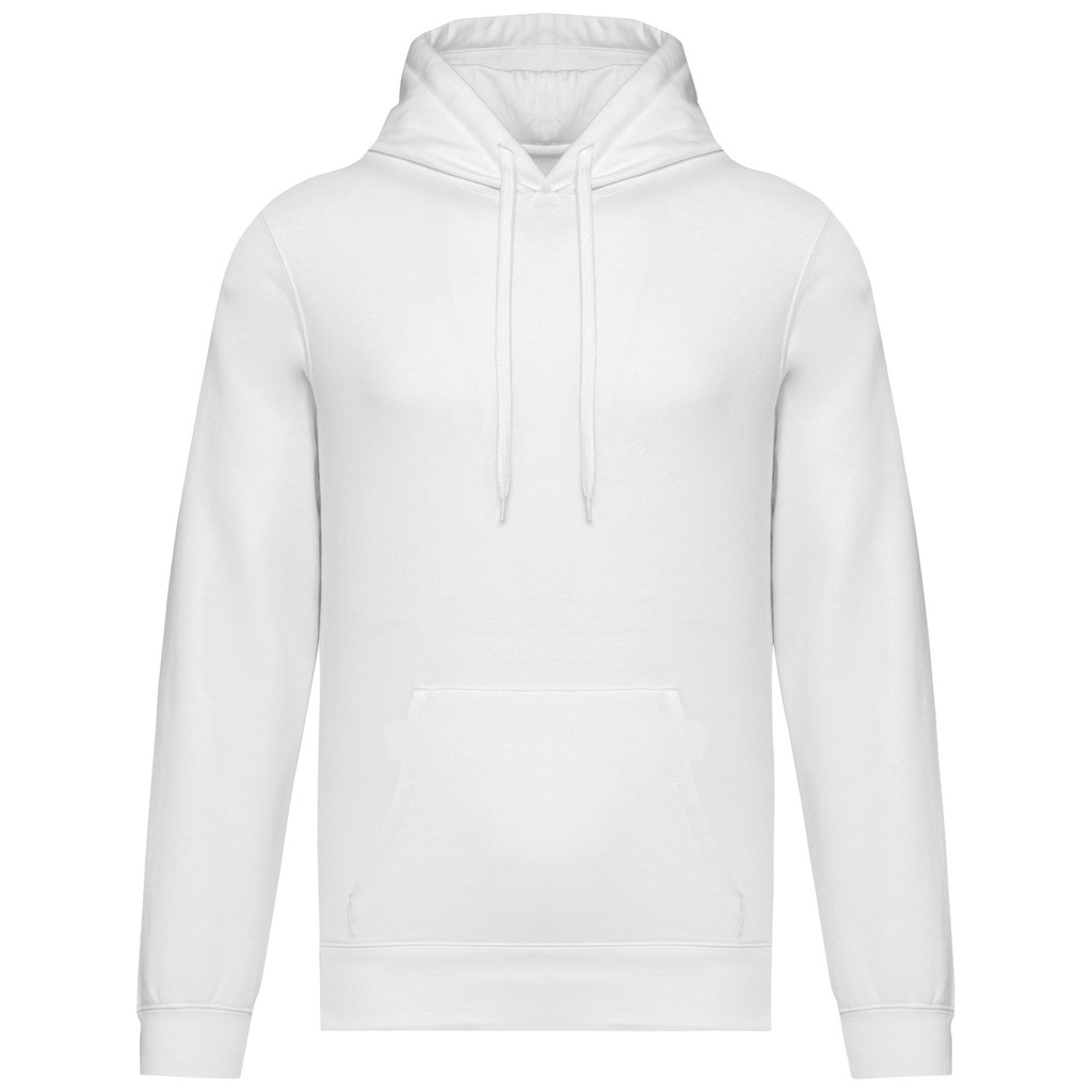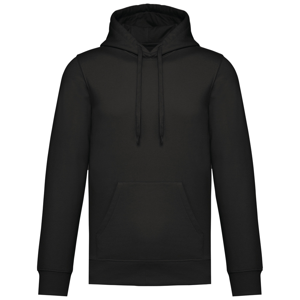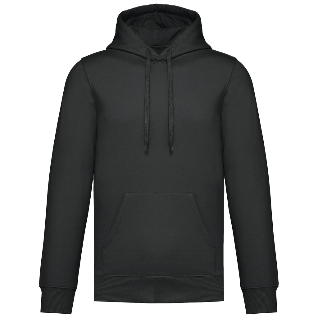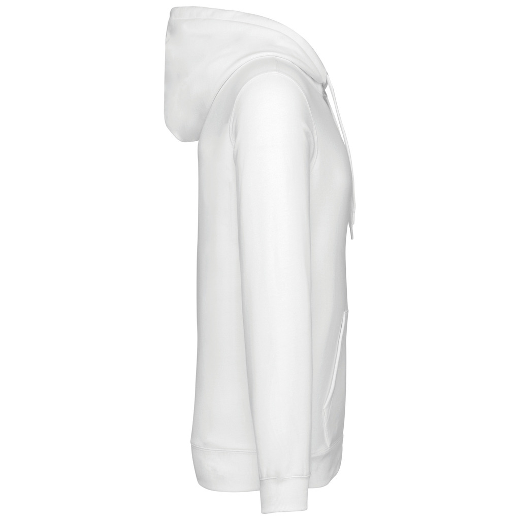 50% algodão ringspun / 50% poliéster reciclado pós-consumo. Interior cardado. Corte direito. Corte e cose. Malha rib 2×1 montagem tubular para melhor acabamento do decote, dos punhos e da bainha. Bolso à canguru. Capuz forrado em poliéster / algodão jersey com cordão de ajuste plano. Tapa-costuras em jersey tom sobre tom no interior do decote. Sem etiqueta de marca no decote, apenas com indicação de tamanho para facilitar a personalização.