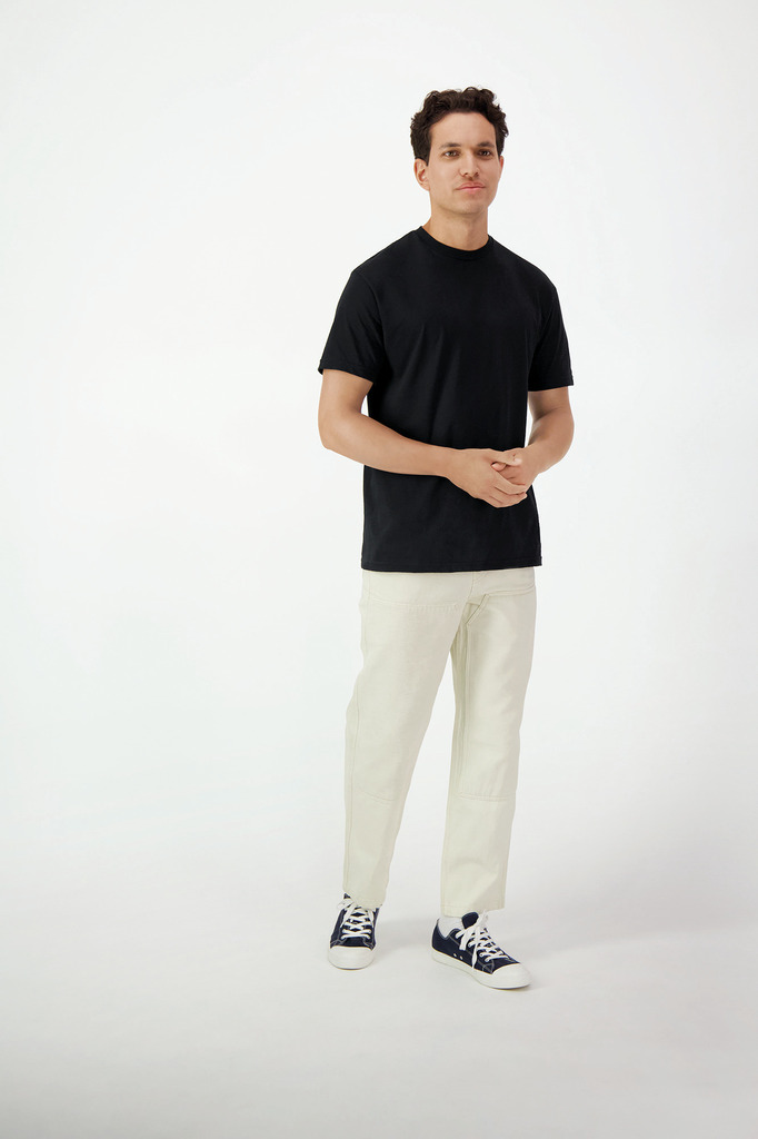 100% algodão (excepto Graphite Heather: 50% algodão / 50% poliéster e Sport Grey: 90% algodão / 10% poliéster). 150 g/m². Decote estreito em malha rib. Tapa costuras ao nÃvel do pescoço e ombros para maior conforto e durabilidade. Corte clássico.