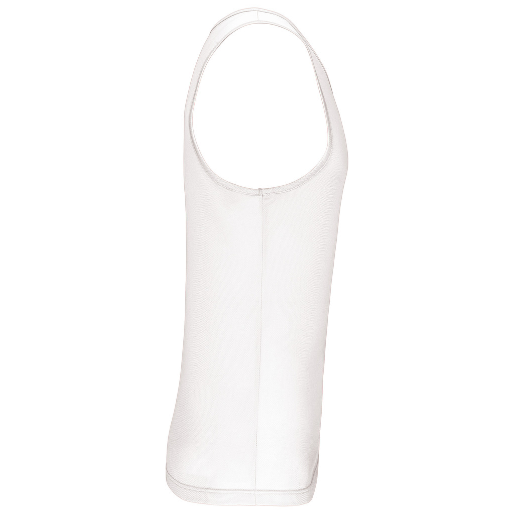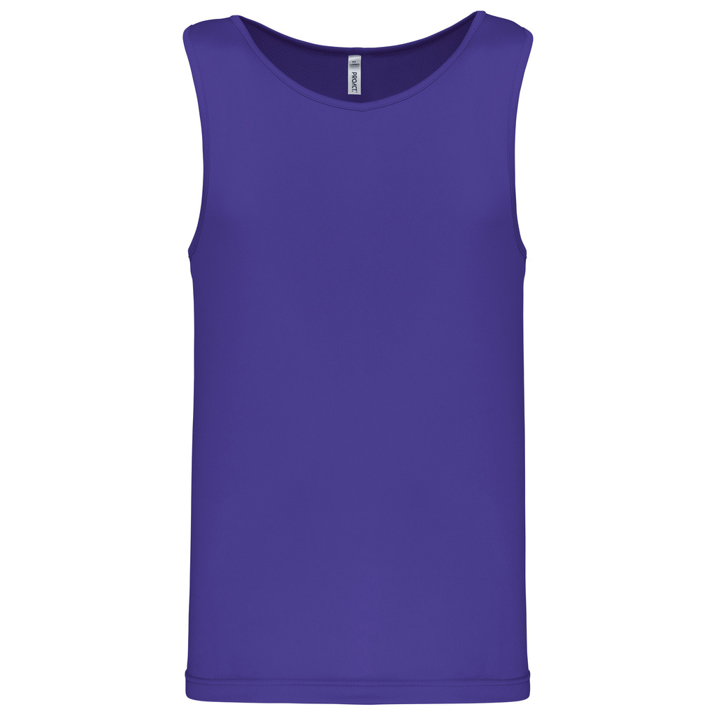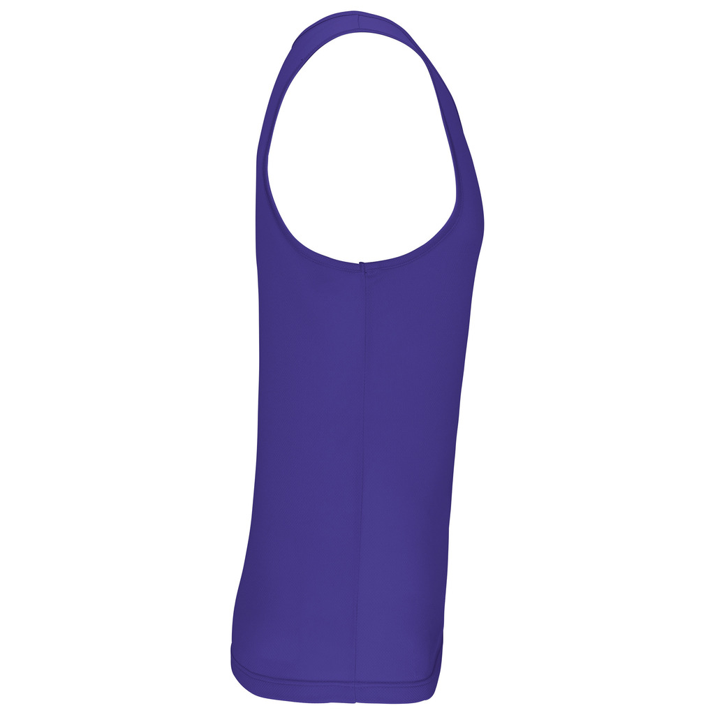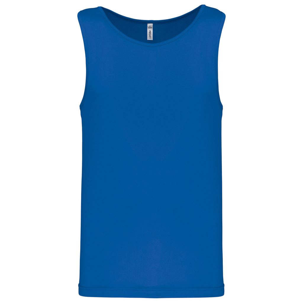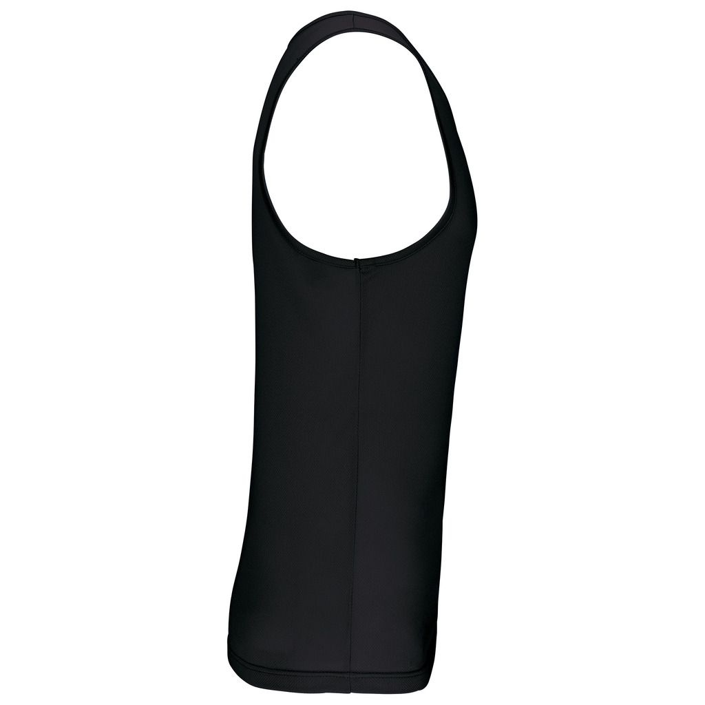 100% poliéster. Tecido leve e de secagem rápida. Reforço no decote e no acabamento da cava. Acabamento costura dupla.