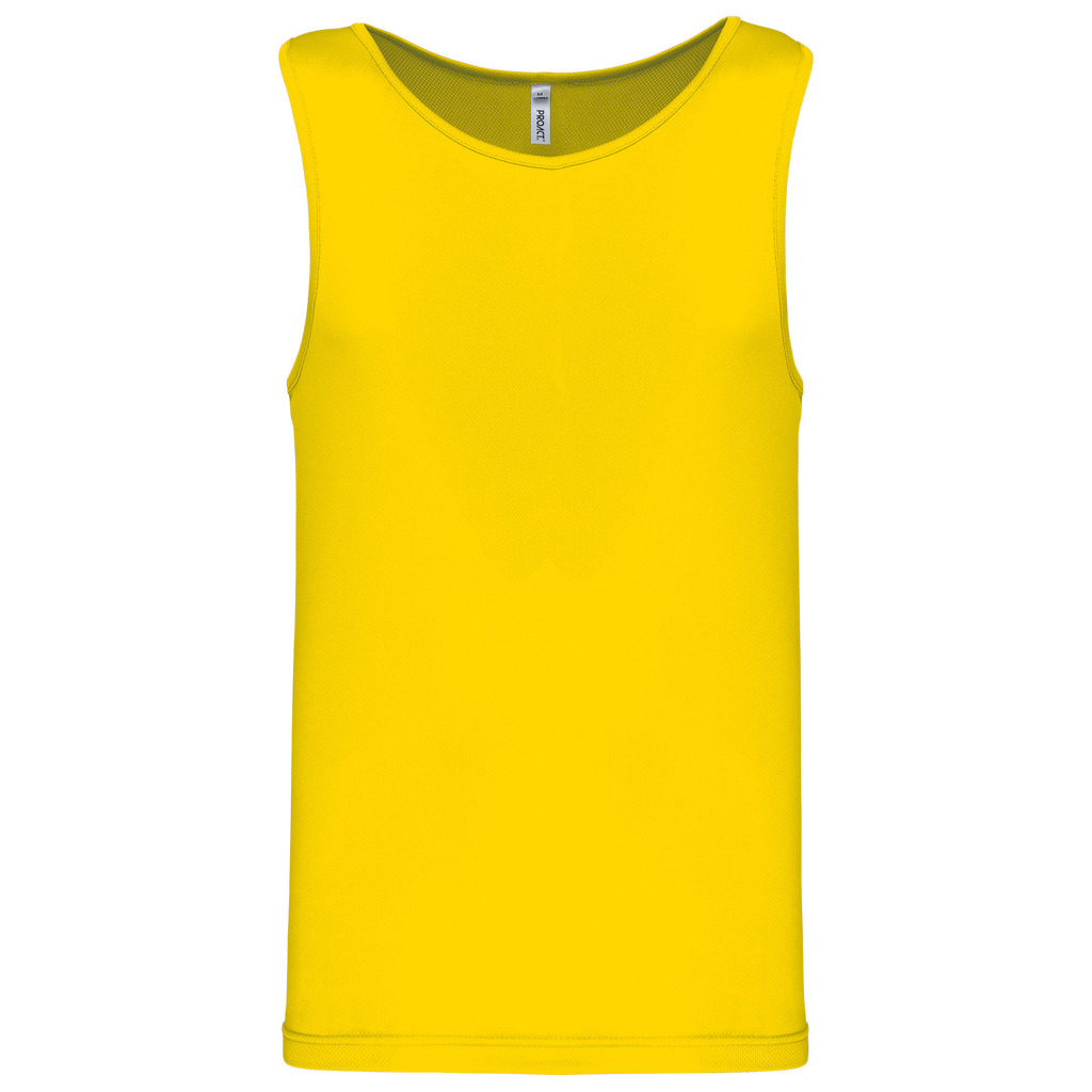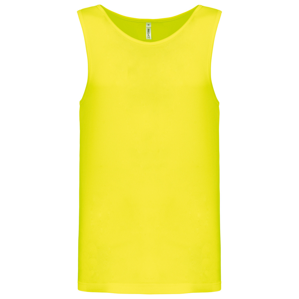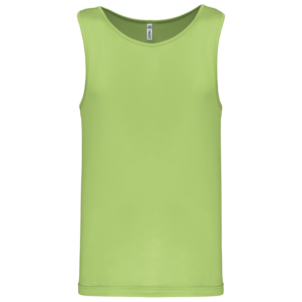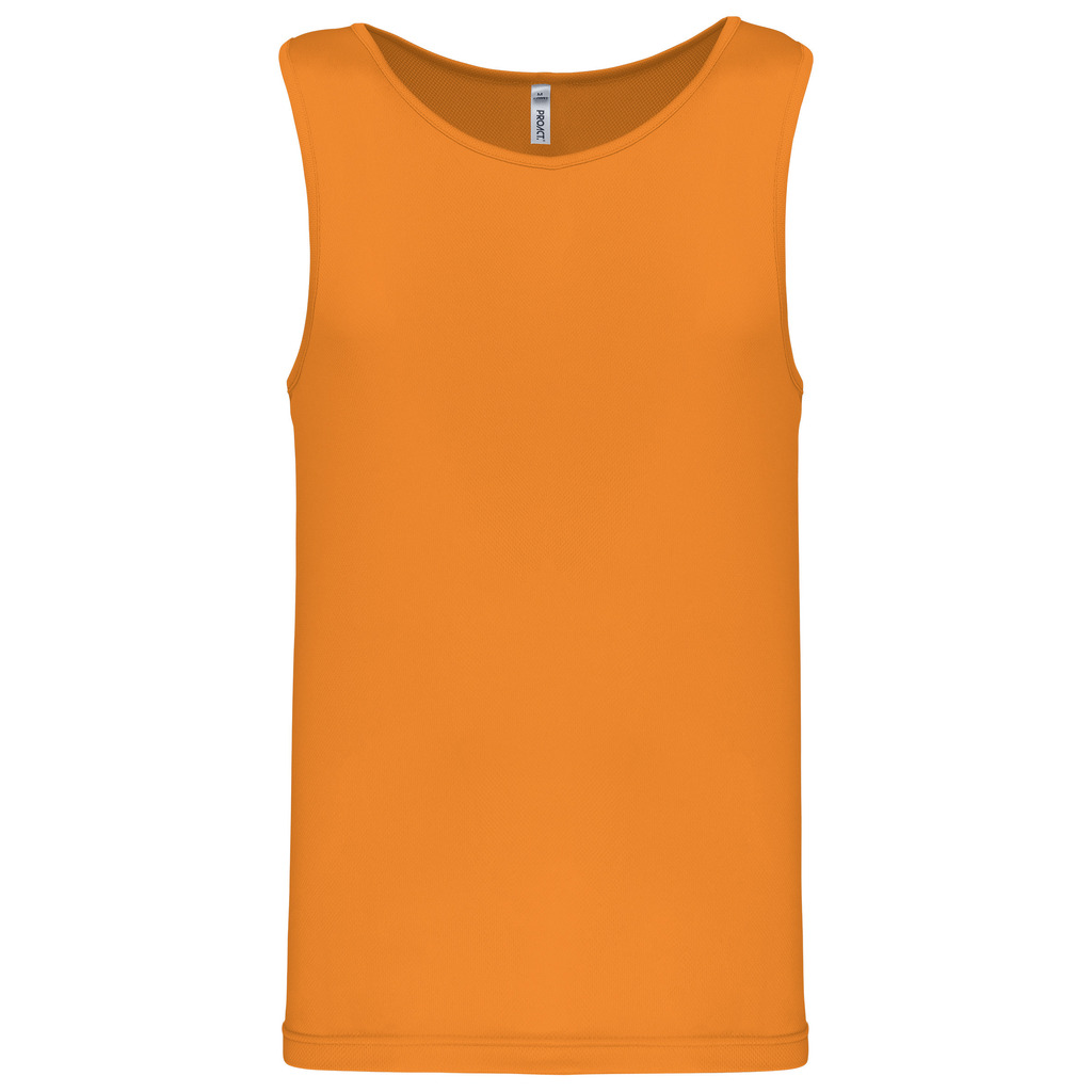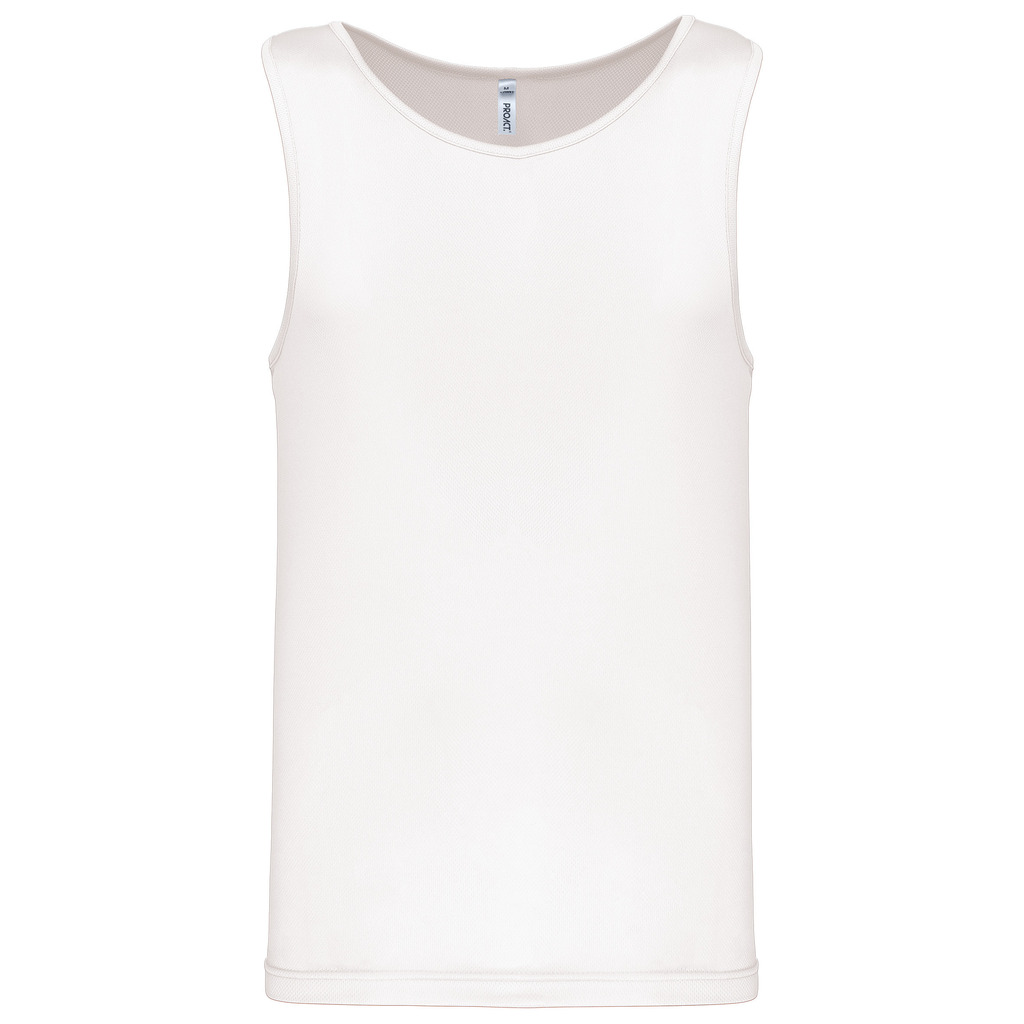 100% poliéster. Tecido leve e de secagem rápida. Reforço no decote e no acabamento da cava. Acabamento costura dupla.