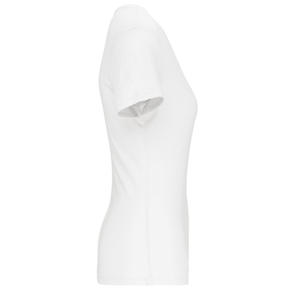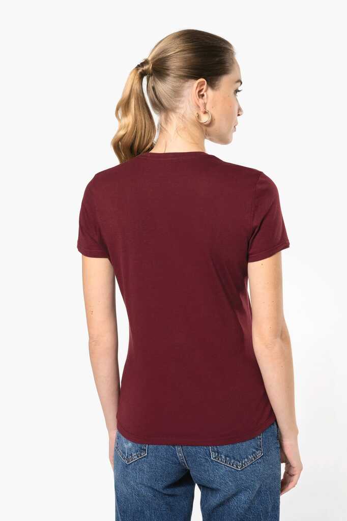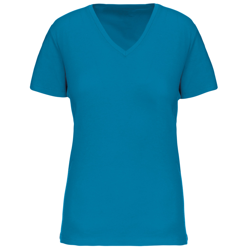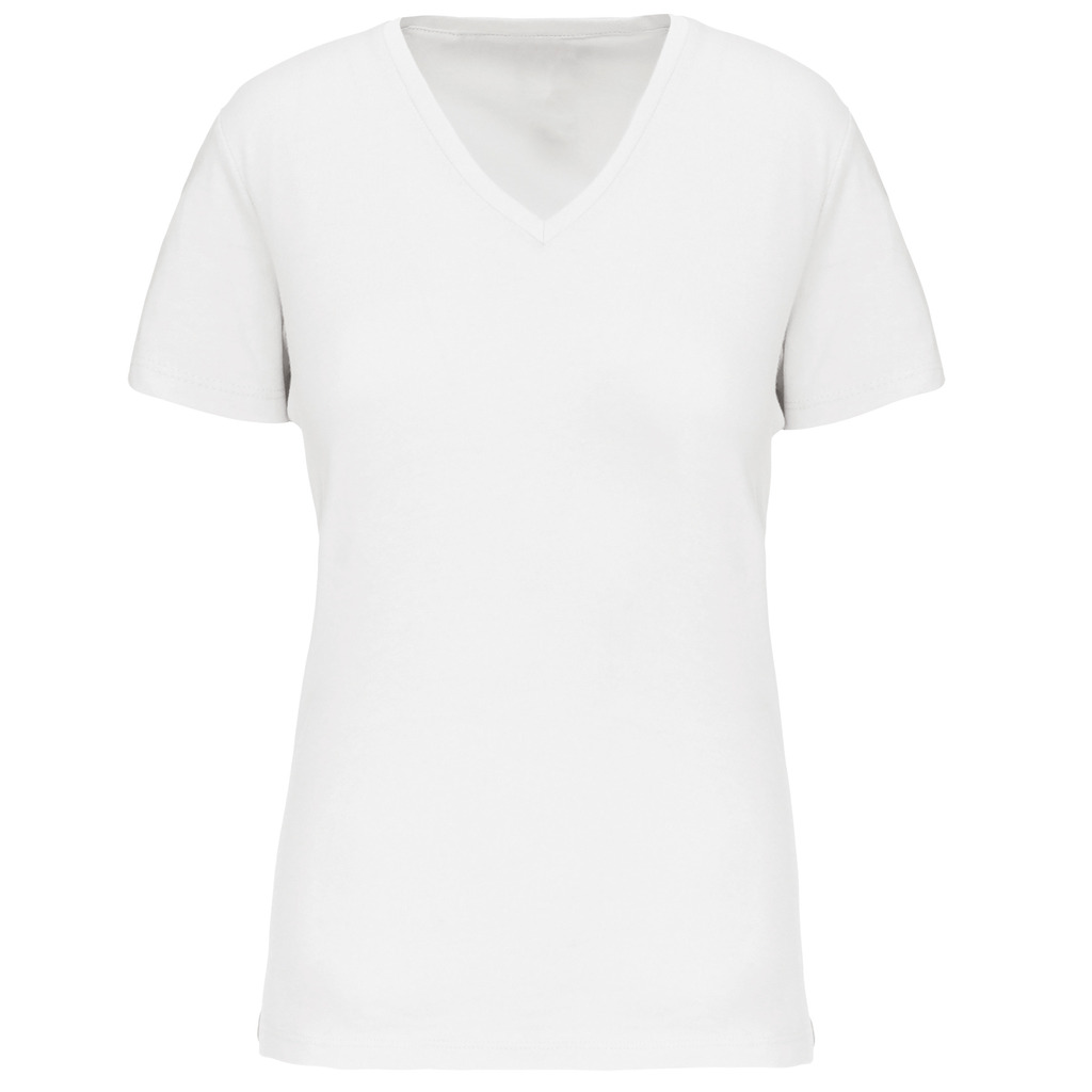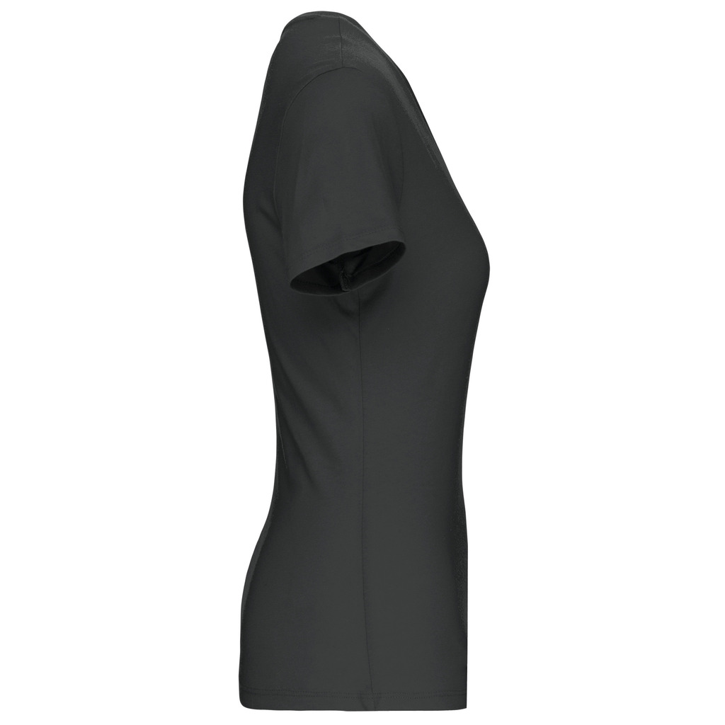 Cores lisas: 100% algodão. Cor Ash Heather: 98% algodão / 2% viscose e Oxford Grey: 90% algodão / 10% viscose. Todas as colorações são feitas de algodão em conversão biológico. Algodão penteado. Decote V com acabamento em malha rib e elastano. Tapa-costuras à cor. Acabamento da manga e bainha com costura dupla.