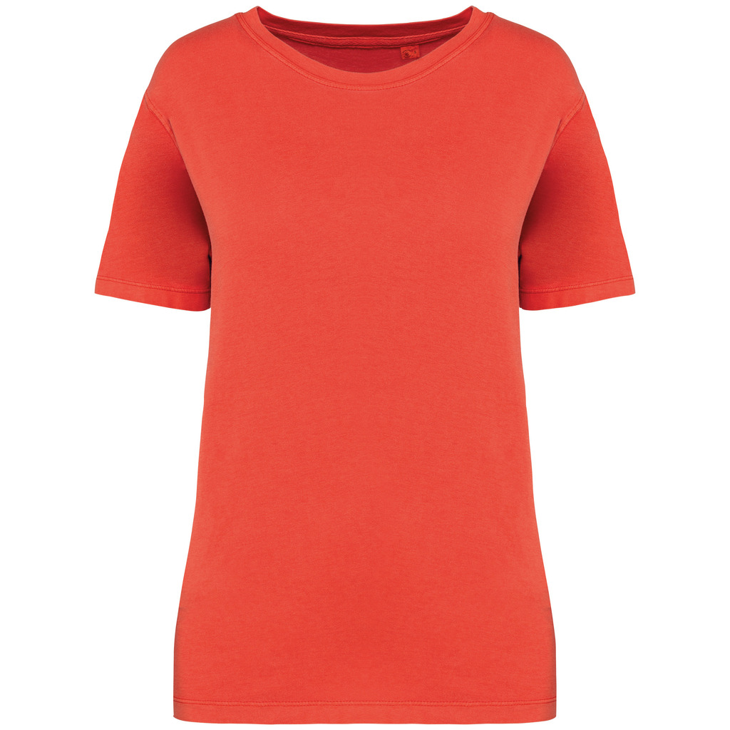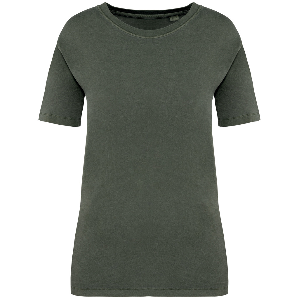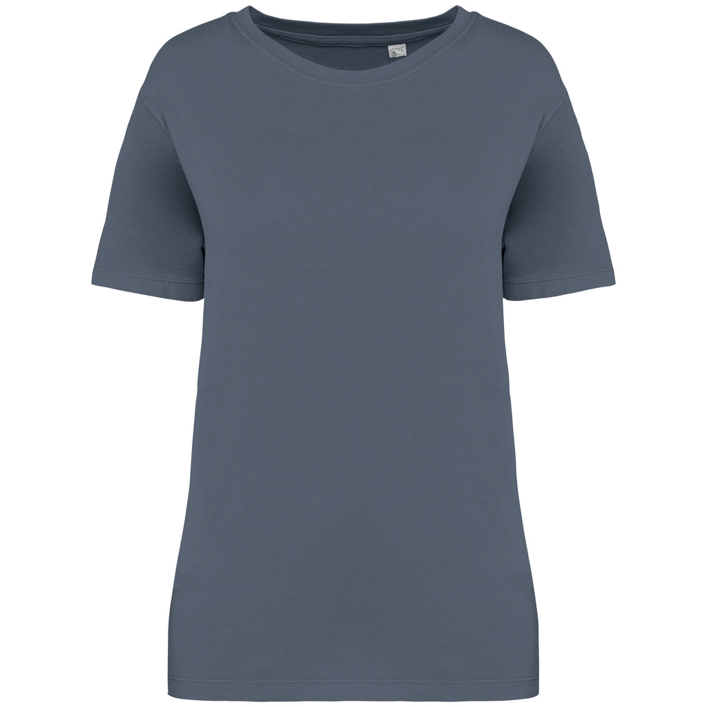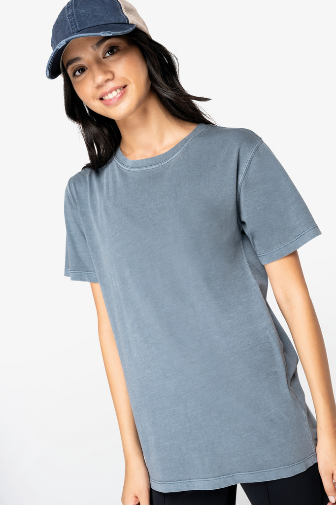 100% algodão biológico. Algodão penteado ringspun. Corte regular. Costuras laterais. Banho de enzimas. Decote em malha rib 1 x 1. Tapa-costuras no interior do decote em chevron. Pesponto duplo nas cavas, nos ombros e no decote. Bainha com costura dupla nas mangas e no cós. Peça tingida após confecção: as cores podem variar ligeiramente. Este produto é susceptÃvel de tingir em contacto com superfÃcies ou peças de roupa claras.