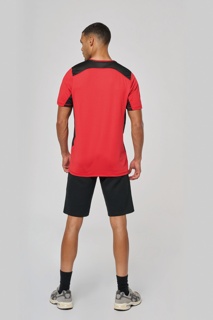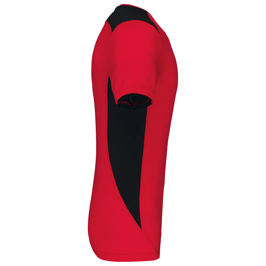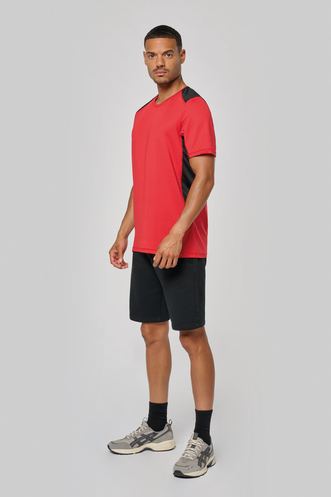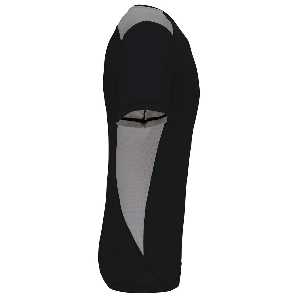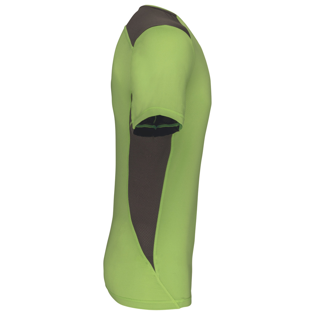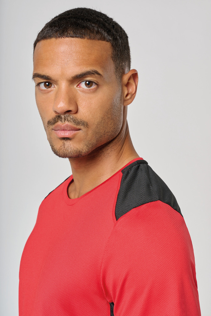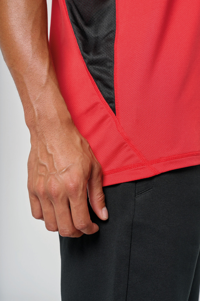 92% poliéster/8% elastano. Detalhes em malha perfurada 94% poliéster/6% elastano 180 g/m². Material flexível e corte concebido para a prática de vários desportos. Detalhes laterais, nos ombros e nas mangas em malha perfurada para uma maior liberdade de movimentos.