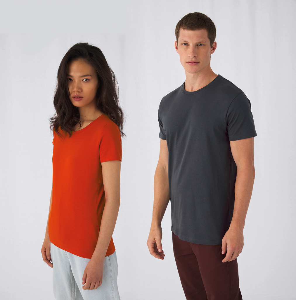 Jersey simples 100% algodão bio ou biológico em conversão ring spun penteado (excepto Sport Grey: 90% algodão biológico penteado pré-encolhido/10% viscose). Comprimento do corpo confortável. Costuras laterais. Decote redondo em malha. Acabamento com tapa costuras no decote e nos ombros. Muito suave ao toque e agradável. Sistema “B&C No Label”: fornecida com etiqueta sem marca para um rebranding perfeito.