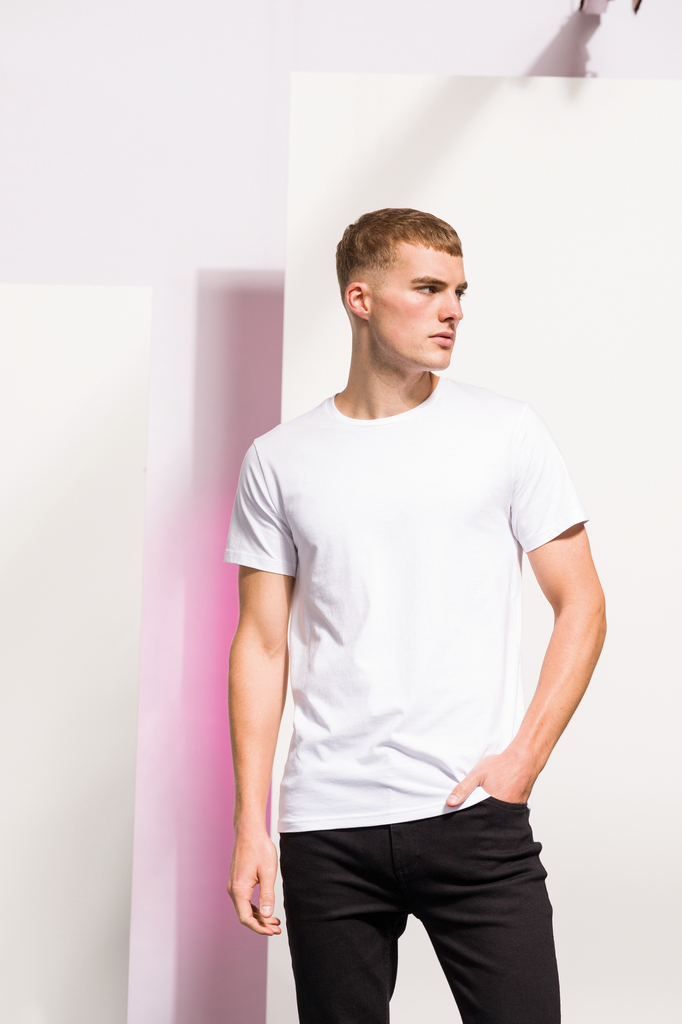 96% algodão / 4% elastano com banho de enzimas para suavidade extra. Costuras laterais. Decote redondo em malha rib com tapa costuras.