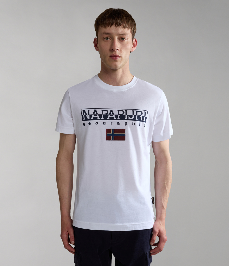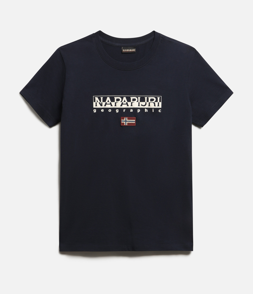 100% algodão. Esta t-shirt de manga curta S-Ayas possui bordas caneladas, decote redondo, bem como o logótipo Napapijri Geographic e a bandeira norueguesa impressos no peito.