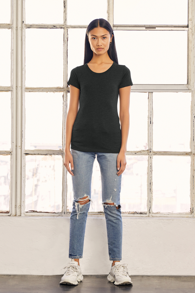 50% poliéster/25% algodão ring spun penteado/25% rayon. T-shirt com decote redondo. Material mesclado Triblend. Corte comprido.