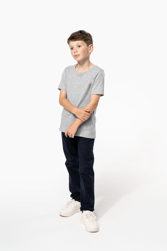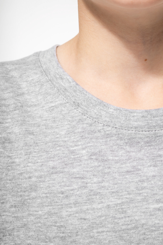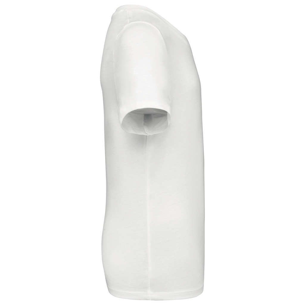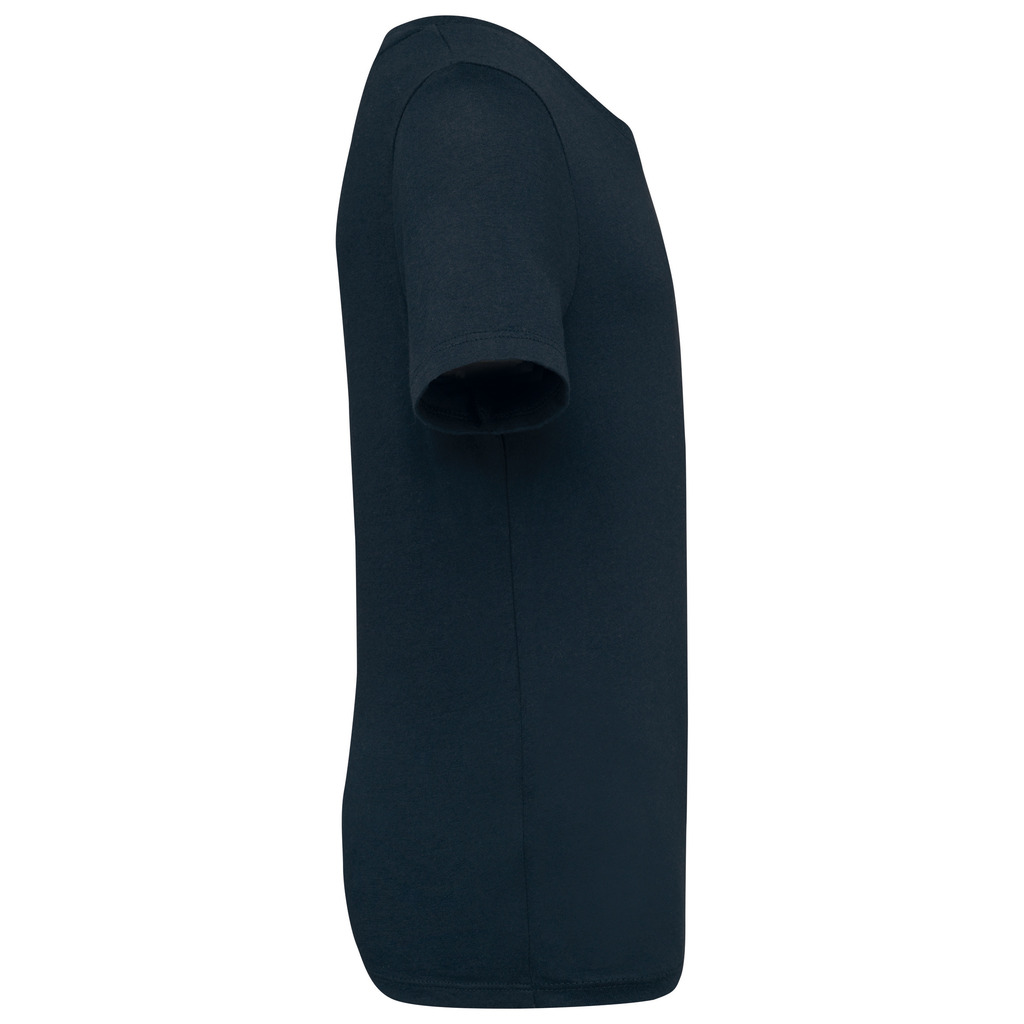 100% algodão. Malha jersey. Algodão penteado. Corte justo. Costuras laterais. Fabricada em Portugal. Com banho de enzimas. Decote em malha rib 1×1. Acabamento com pesponto duplo nas mangas e na bainha. Reforço nos ombros. Tapa-costuras no material principal tom sobre tom no acabamento interior do decote. Sem etiqueta de marca, apenas indicação de tamanho amovÃvel para facilitar a personalização.