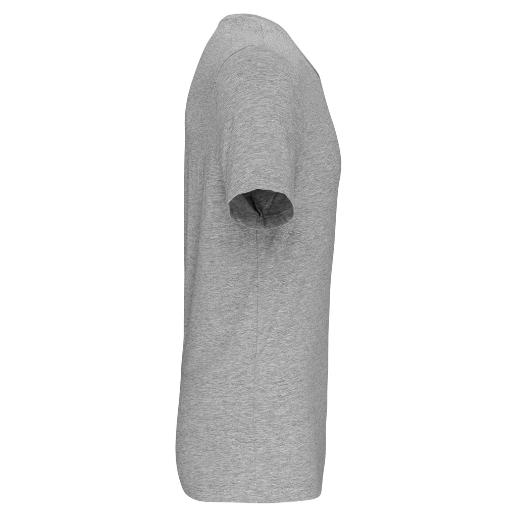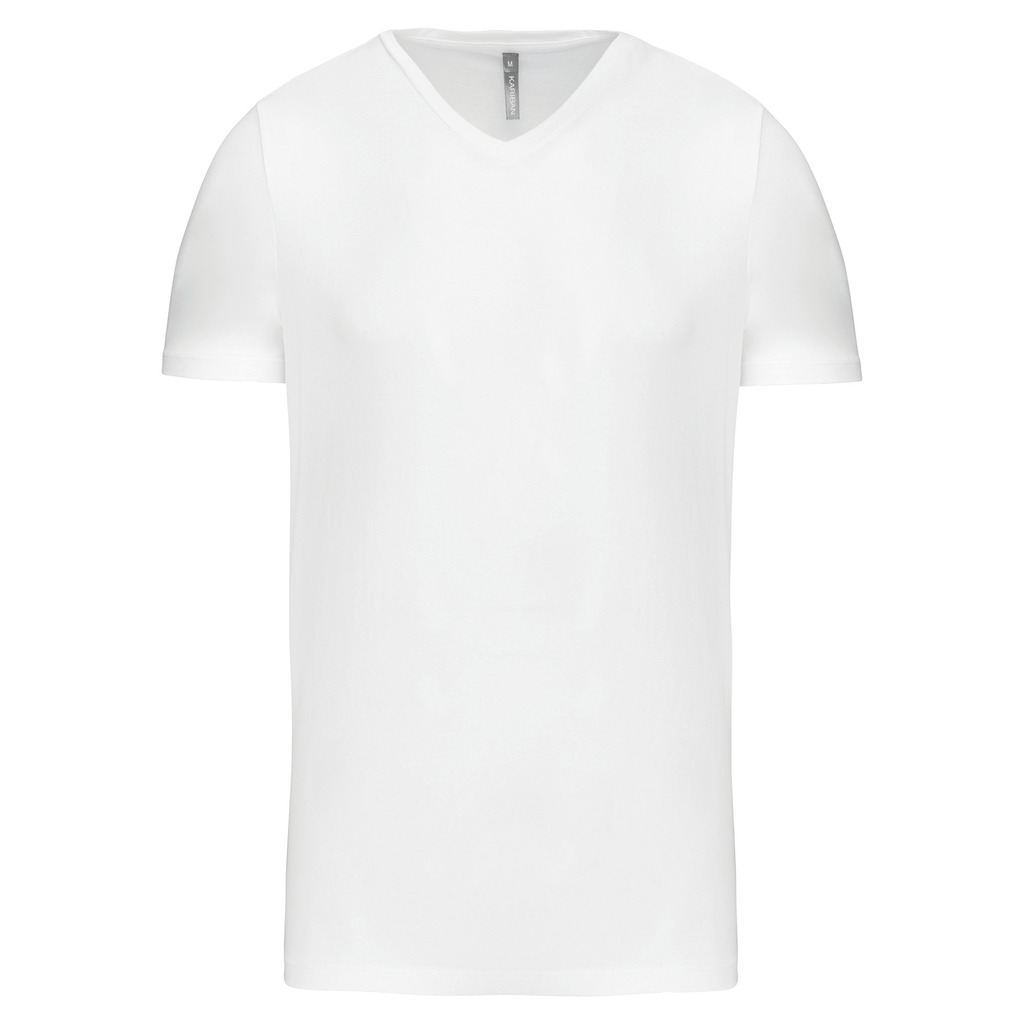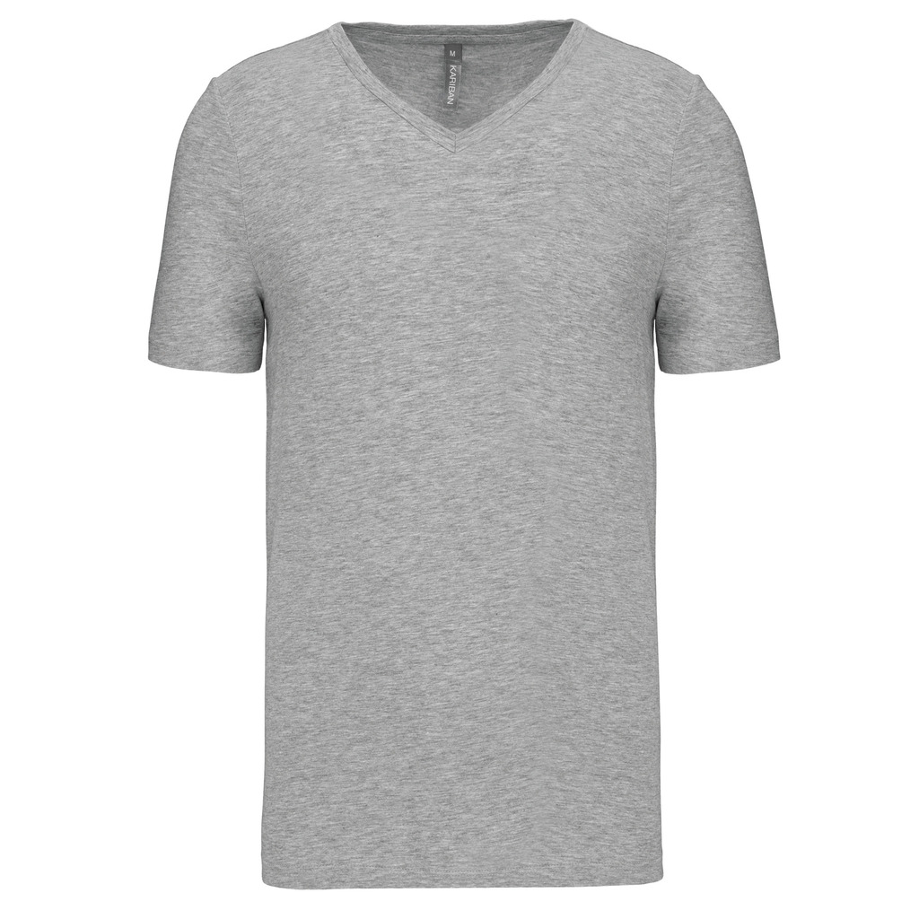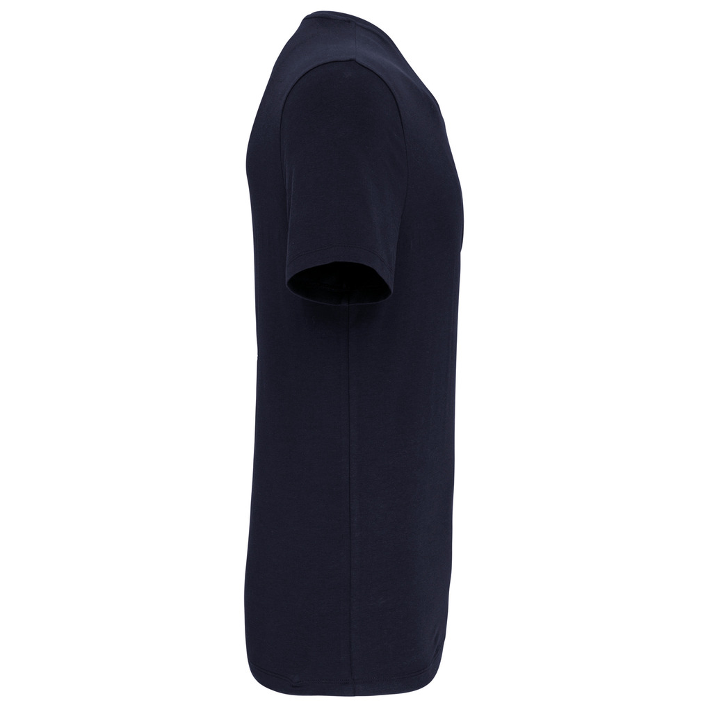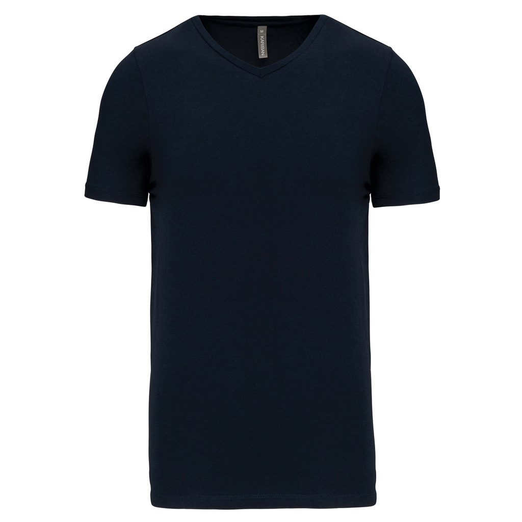 97% algodão / 3% elastano. Cores mescladas: 87% algodão / 9% viscose / 4% elastano. Decote em V. Acabamento da manga e bainha com costura dupla. Com um corte moderno e justo assemelha-se ao estilo do pronto a vestir.