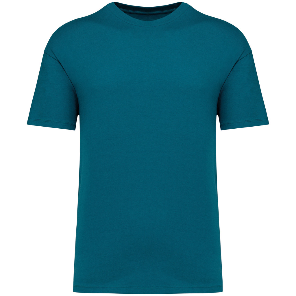 100% algodão biológico. Algodão penteado. Corte direito com ombros descaÃdos. Costuras laterais. Com banho de enzimas. Decote em malha rib 1 x 1. Reforço nos ombros no material principal. Acabamento pesponto duplo nas mangas e na bainha. Este produto é rastreável graças à tecnologia Awareâ„¢.