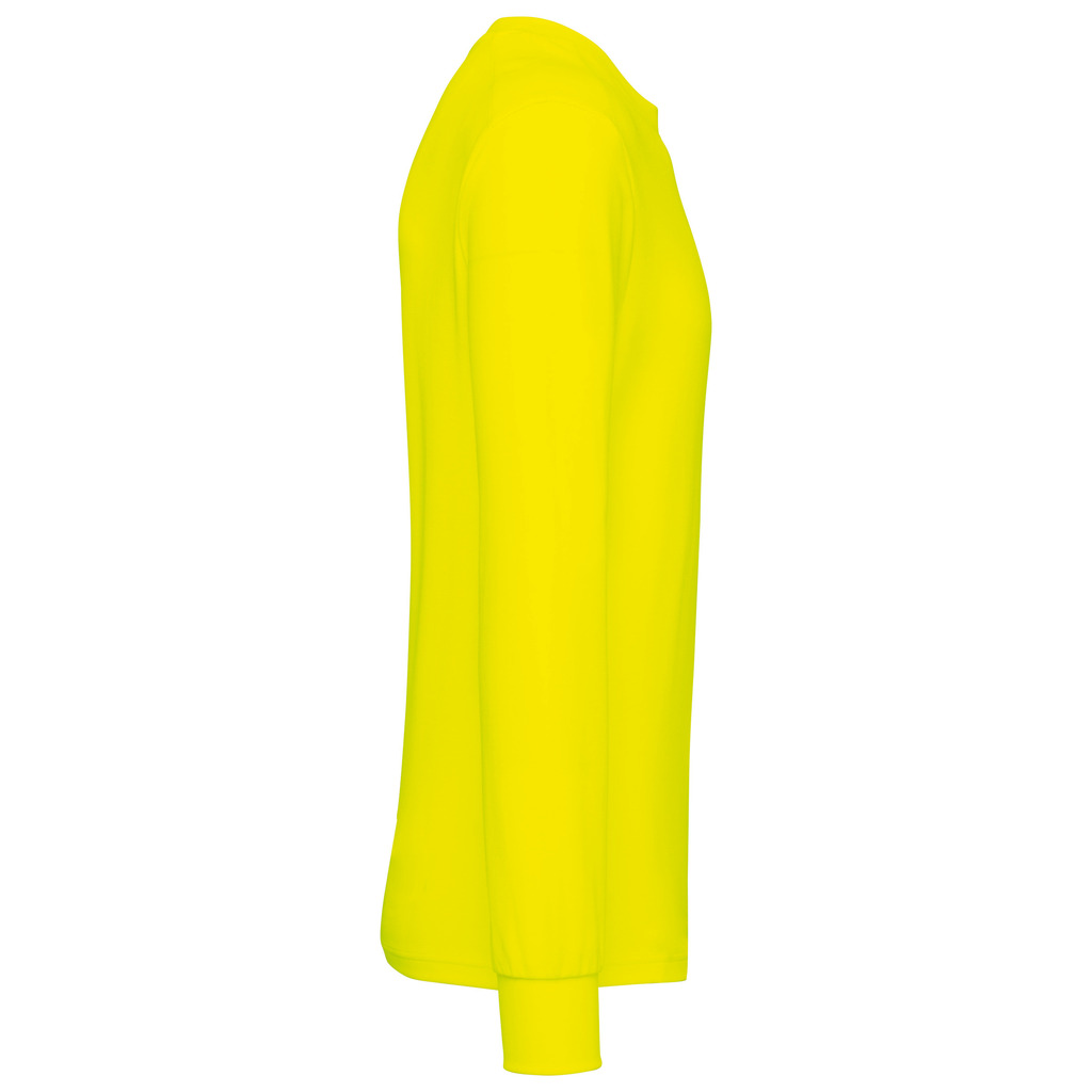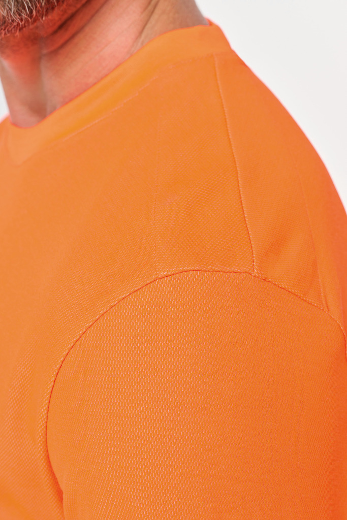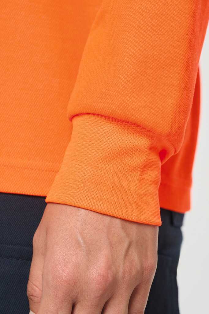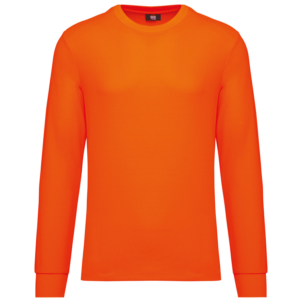 60% algodão penteado/40% poliéster reciclado. Malha piqué interlock. Lavagem industrial e/ou lavagem doméstica a 60°C. Corte confortável. Decote e punhos em malha rib duplo 1×1. Tapa-costuras no interior do decote. Reforços interiores dos ombros em tecido em twill 65% poliéster/35% algodão, para evitar a deformação durante a lavagem industrial. Bolsa RFID na parte inferior abaixo da etiqueta. Acabamento costura dupla nas mangas e na bainha. EPI Classe II – Normas NF EN ISO 13688:2013 + NF EN ISO 13688/A1:2021 (Vestuário de protecção – Requisitos gerais), NF EN 17353:2020: Tipo A (Vestuário de protecção – Equipamento de visibilidade melhorada para situações de risco moderado – Métodos de ensaio e requisitos), NF EN ISO 15797:2018 (Têxteis – Métodos de lavagem e acabamento industrial para o ensaio de vestuário de trabalho): Lavagem industrial profissional – Programa do método de lavagem 8 apenas com acabamento no túnel de secagem. Etiqueta de marca tecida.