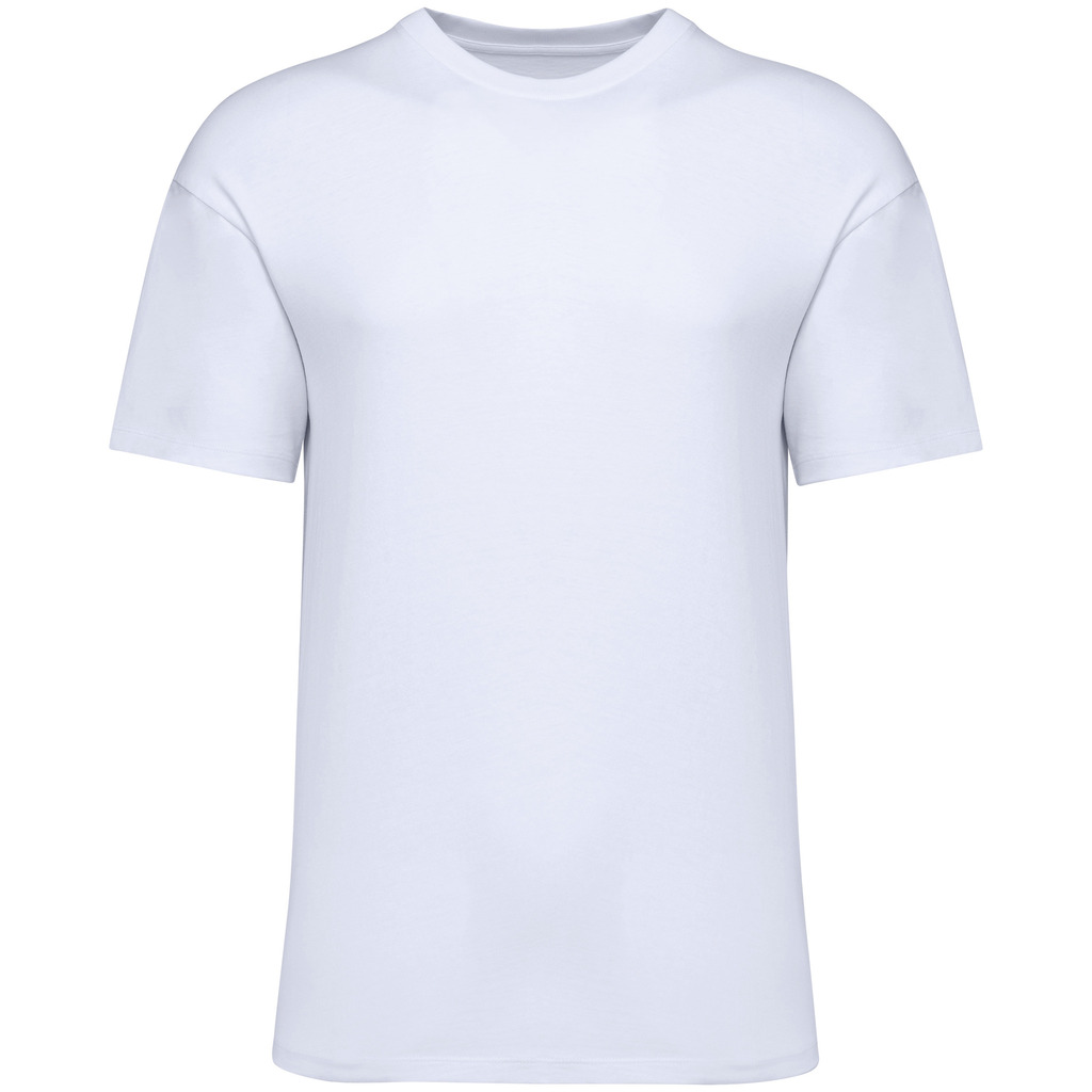 100% algodão biológico. Algodão penteado. Corte direito com ombros descaÃdos. Costuras laterais. Com banho de enzimas. Decote em malha rib 1 x 1. Reforço nos ombros no material principal. Acabamento pesponto duplo nas mangas e na bainha. Este produto é rastreável graças à tecnologia Awareâ„¢.