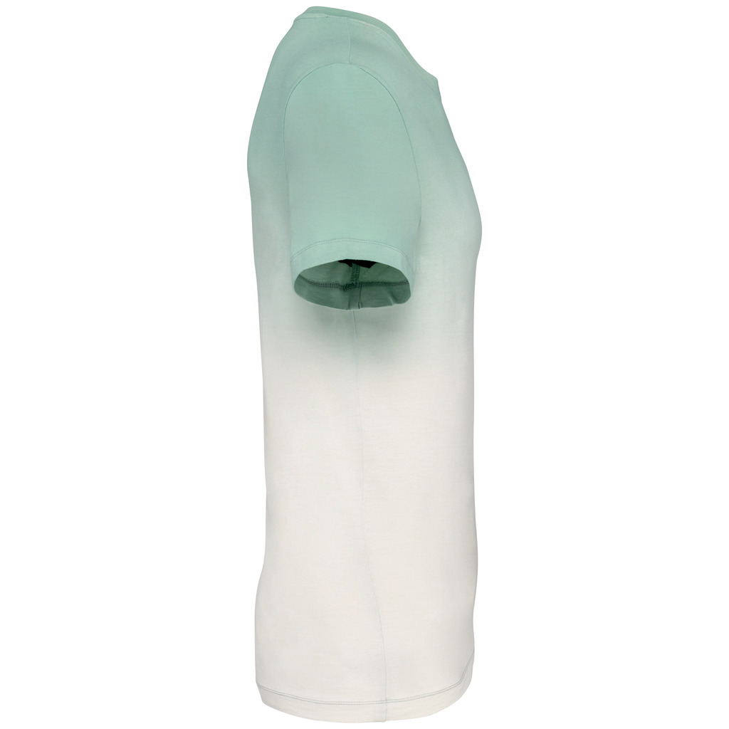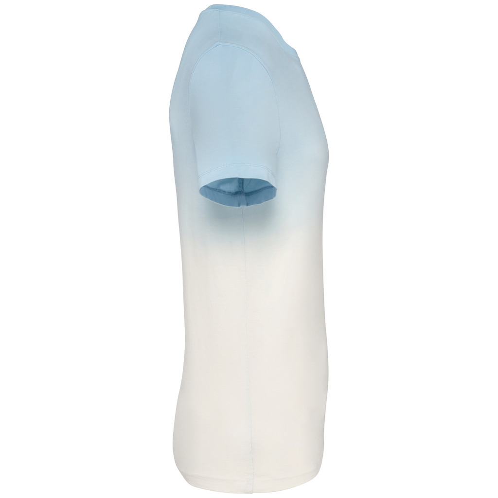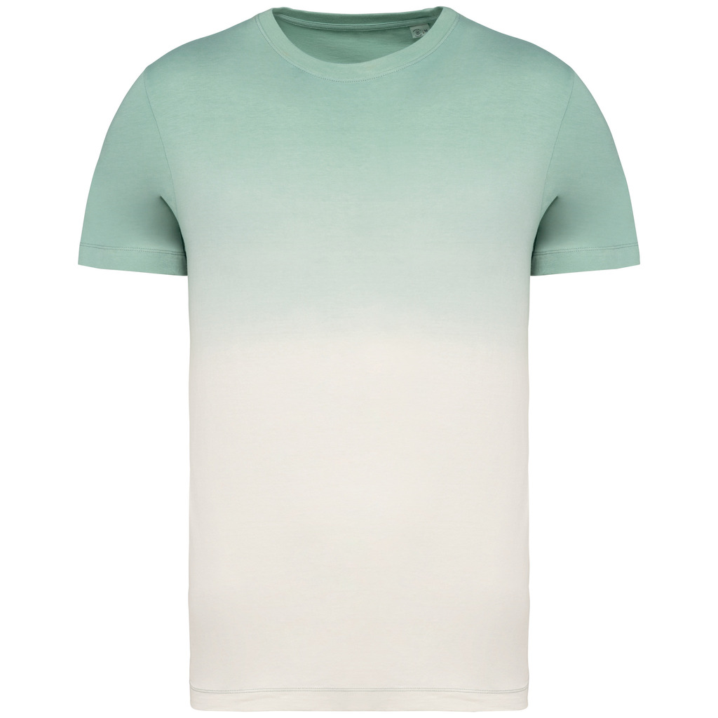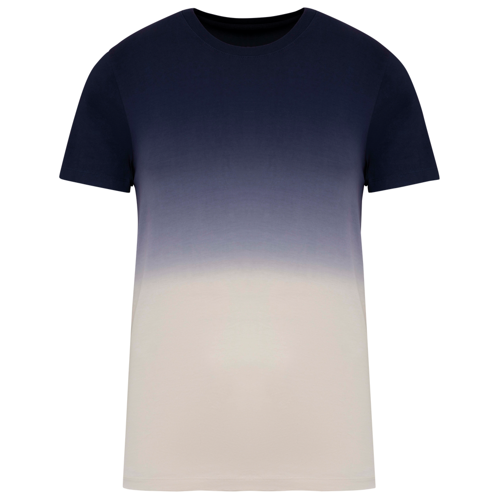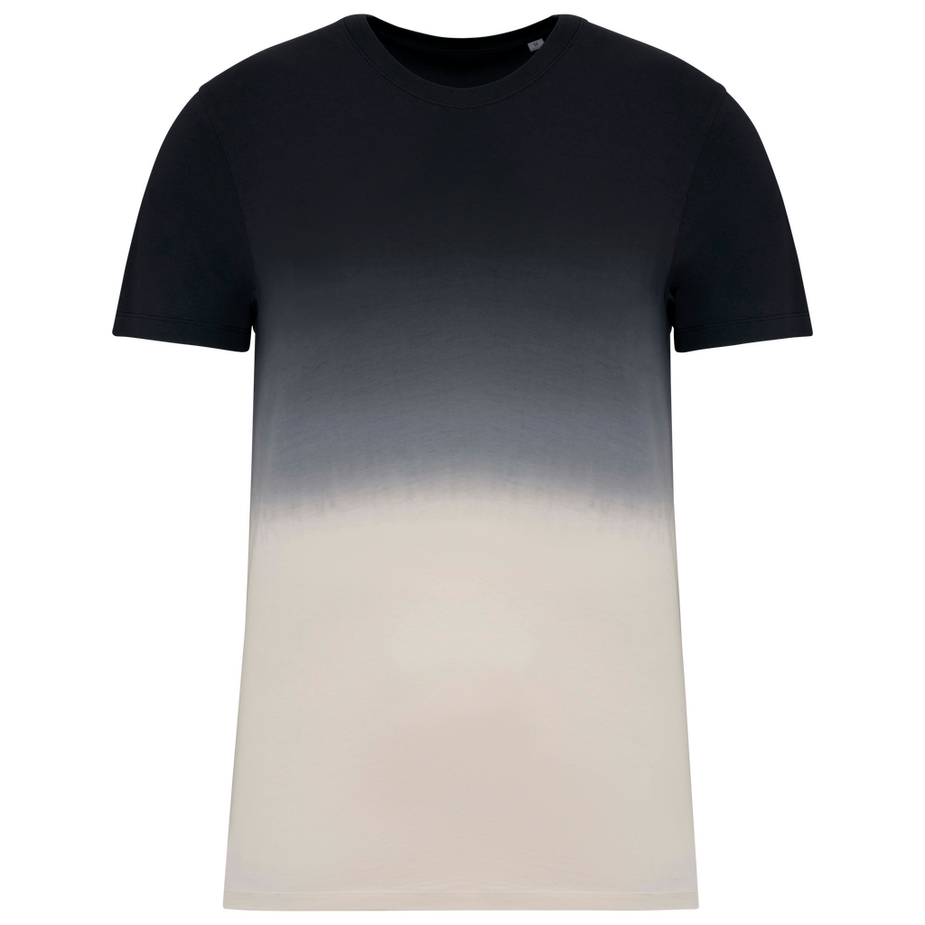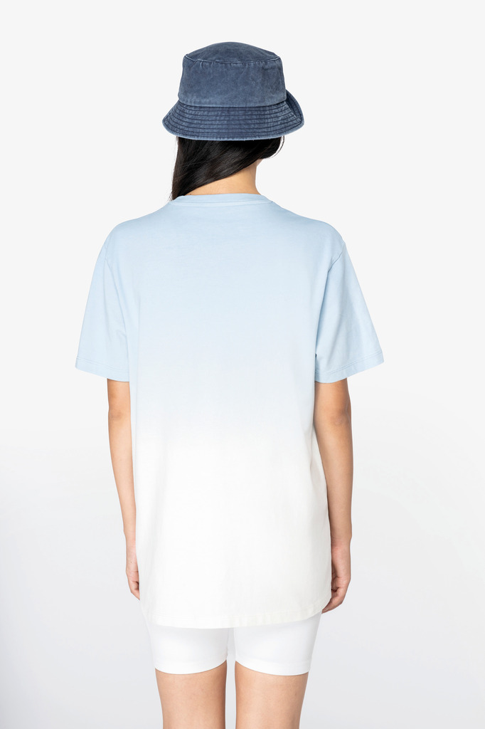 100% algodão biológico. Algodão penteado ringspun. Corte justo. Costuras laterais. Banho de enzimas. Decote em malha rib 1 x 1. Tapa-costuras no interior do decote no material principal. Bainha com costura dupla nas mangas e no cós. Peça tingida com efeito Dip Dye após confecção: as cores podem variar ligeiramente.