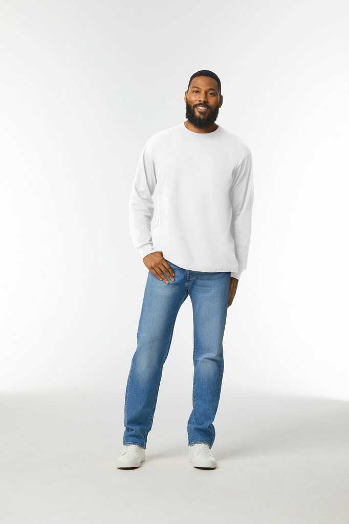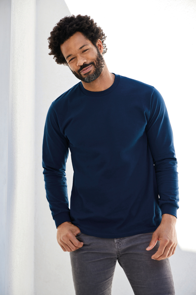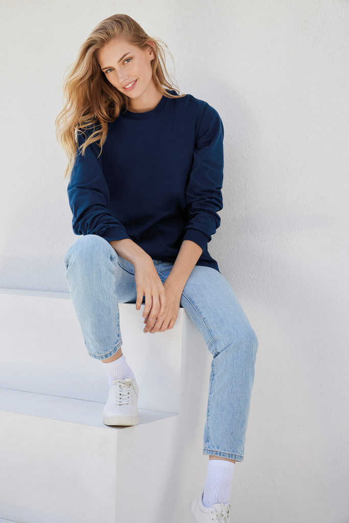 100% algodão (excepto RS Sport Grey: 90% algodão/10% poliéster). Tapa costuras no decote. Acabamento da manga em malha. Acabamento do cós com costura dupla. Tecido torcido a um quarto para eliminar a dobra central. Corte amplo. Etiqueta amovível.