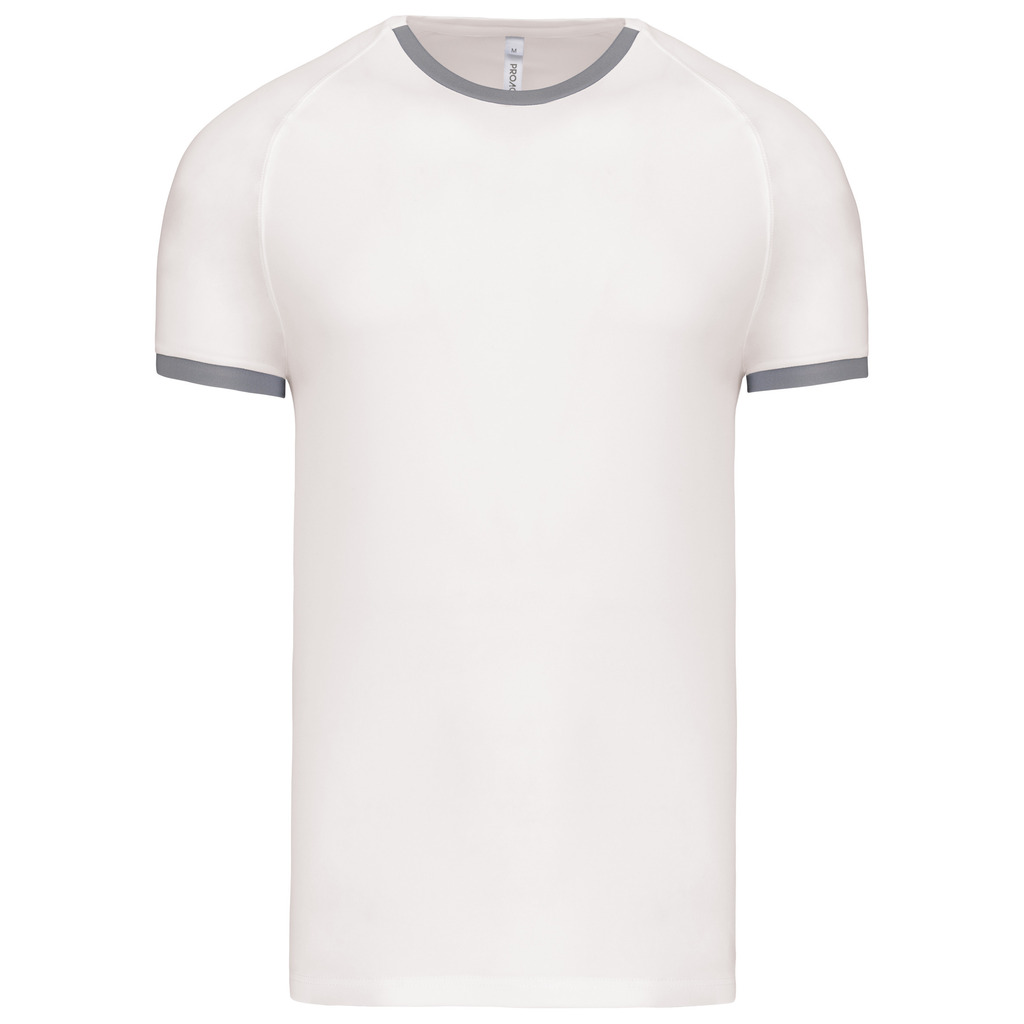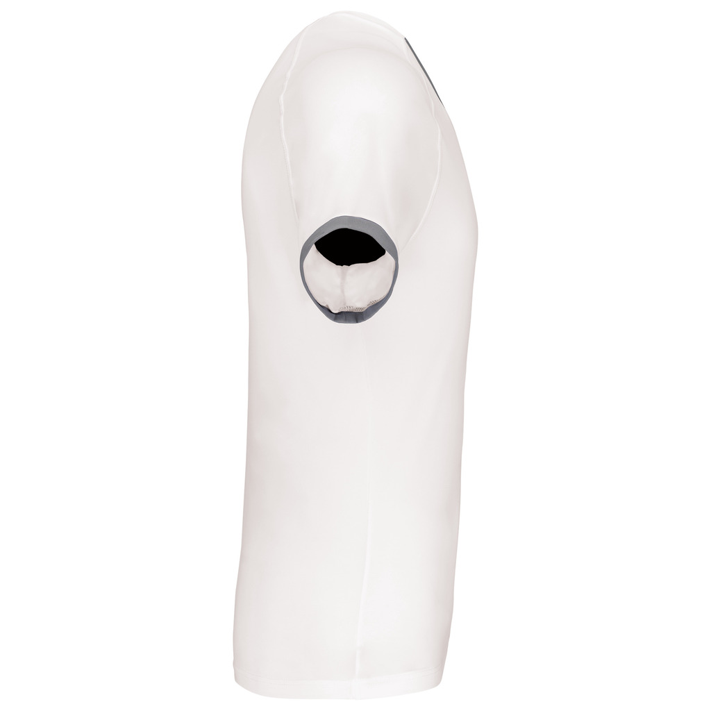 100% poliéster interlock. Mangas raglan. Tapa-costuras. Tapa-costuras em contraste no decote e mangas. Acabamento com pespontos à cor nas cavas.