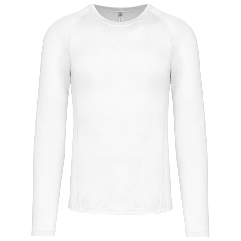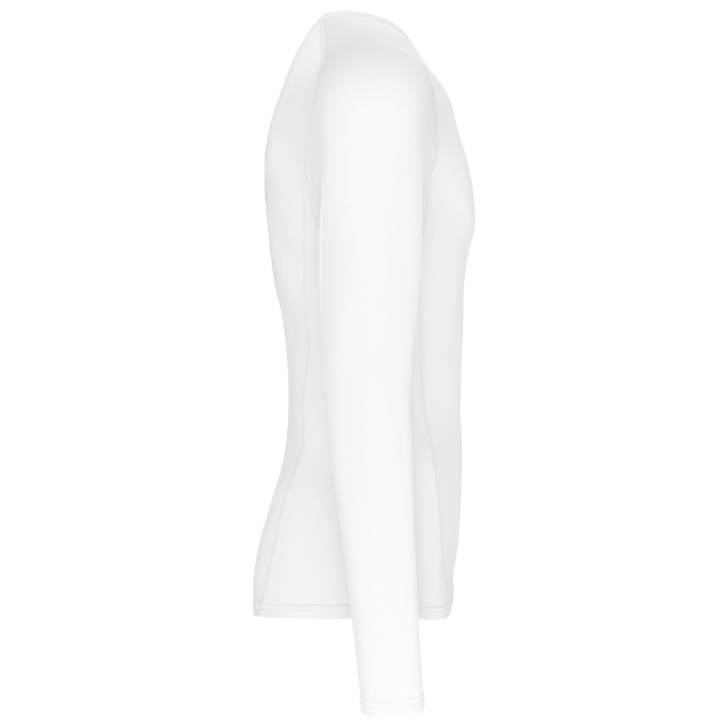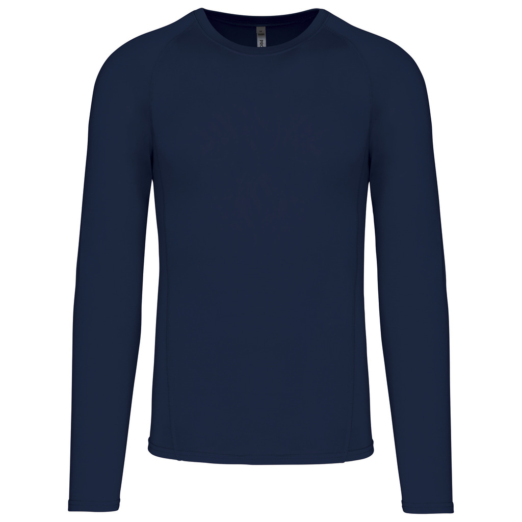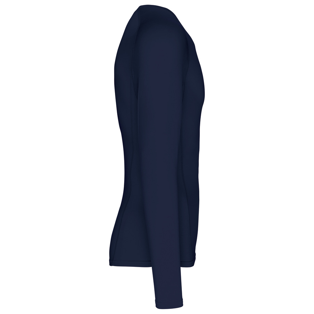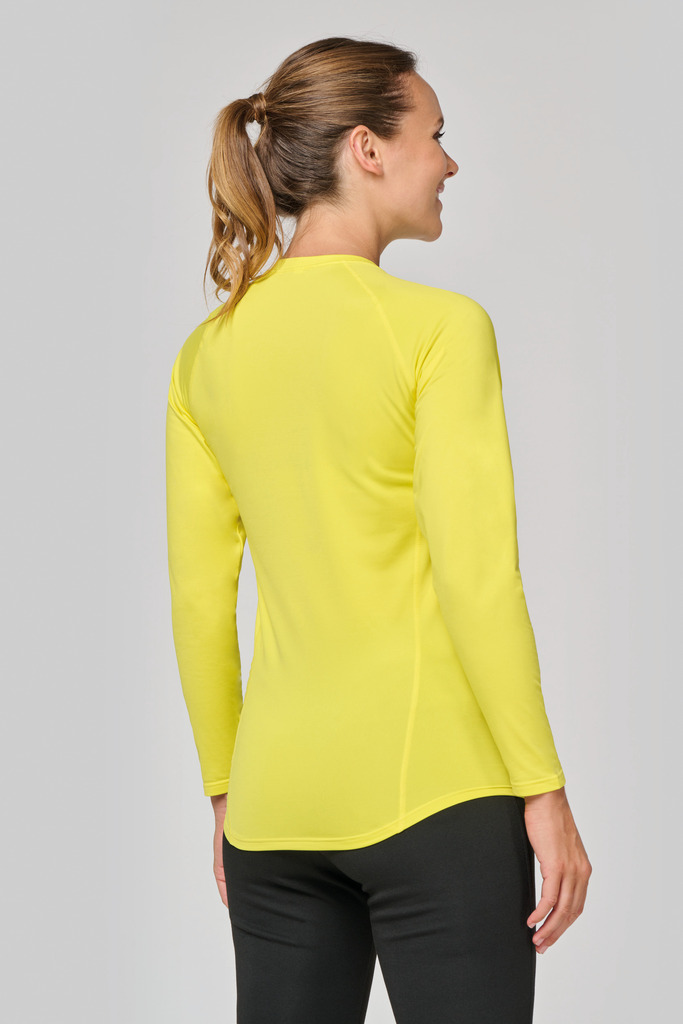 88% poliéster/12% elastano. Decote redondo. Pontos de recobrimento tom sobre tom. Acabamento costura dupla nas mangas e na bainha.