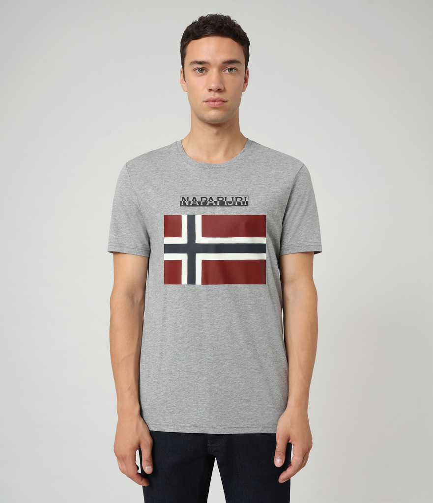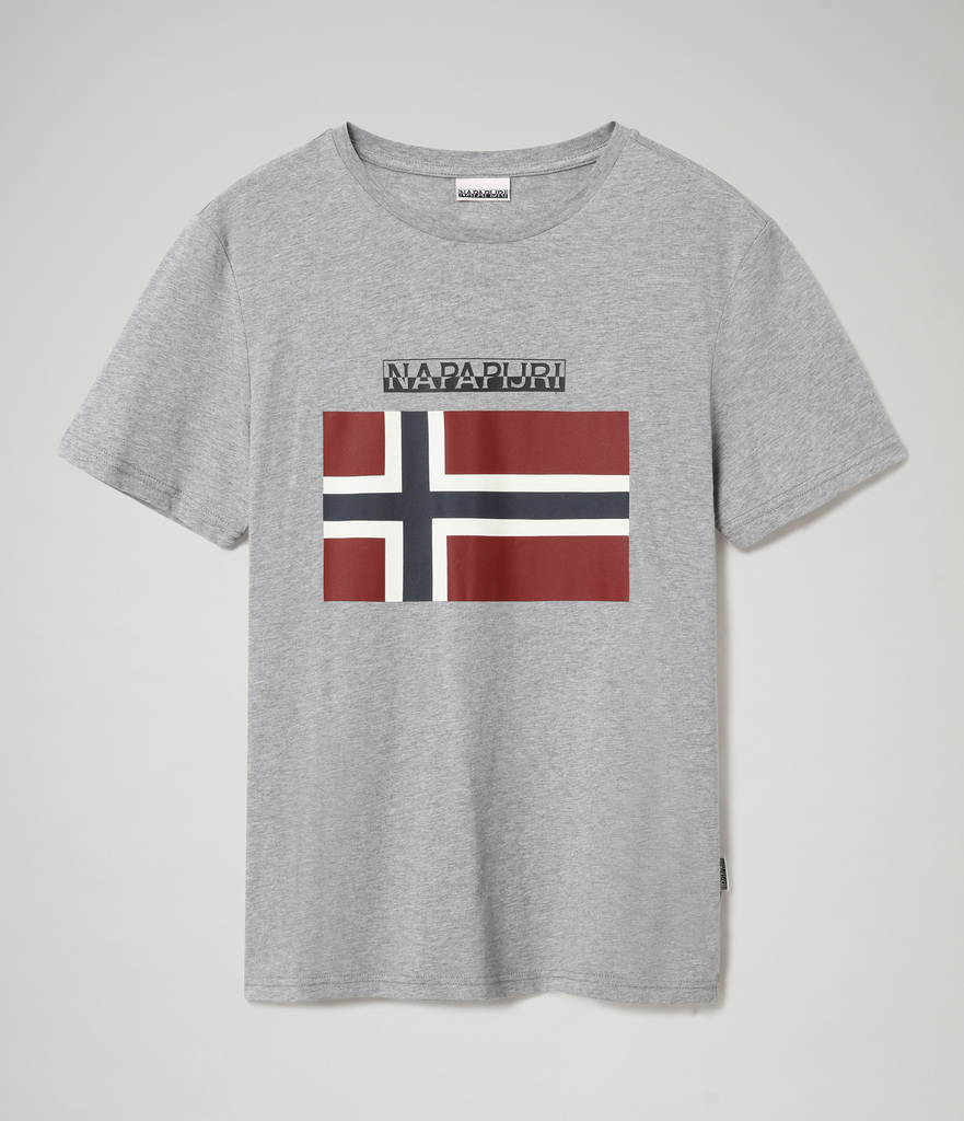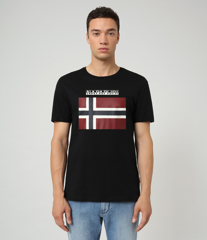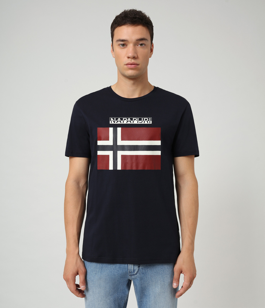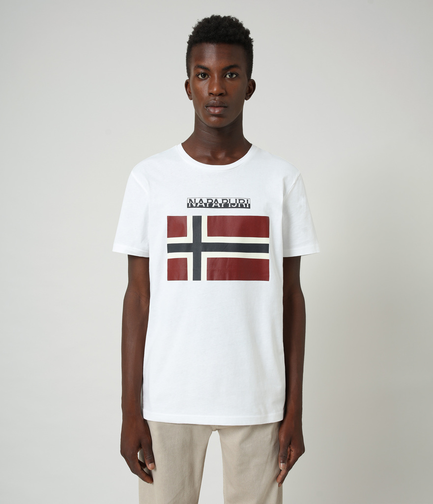 100% algodão biológico. T-shirt de manga curta. Decote redondo. Logótipo da bandeira impresso. Limitado ao stock existente.