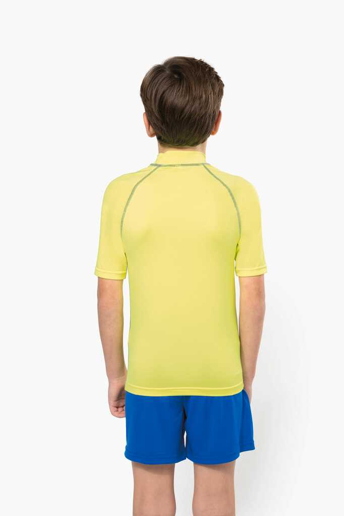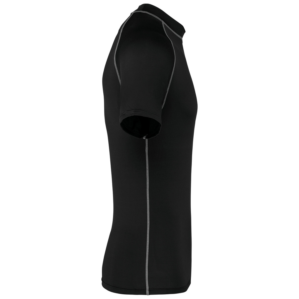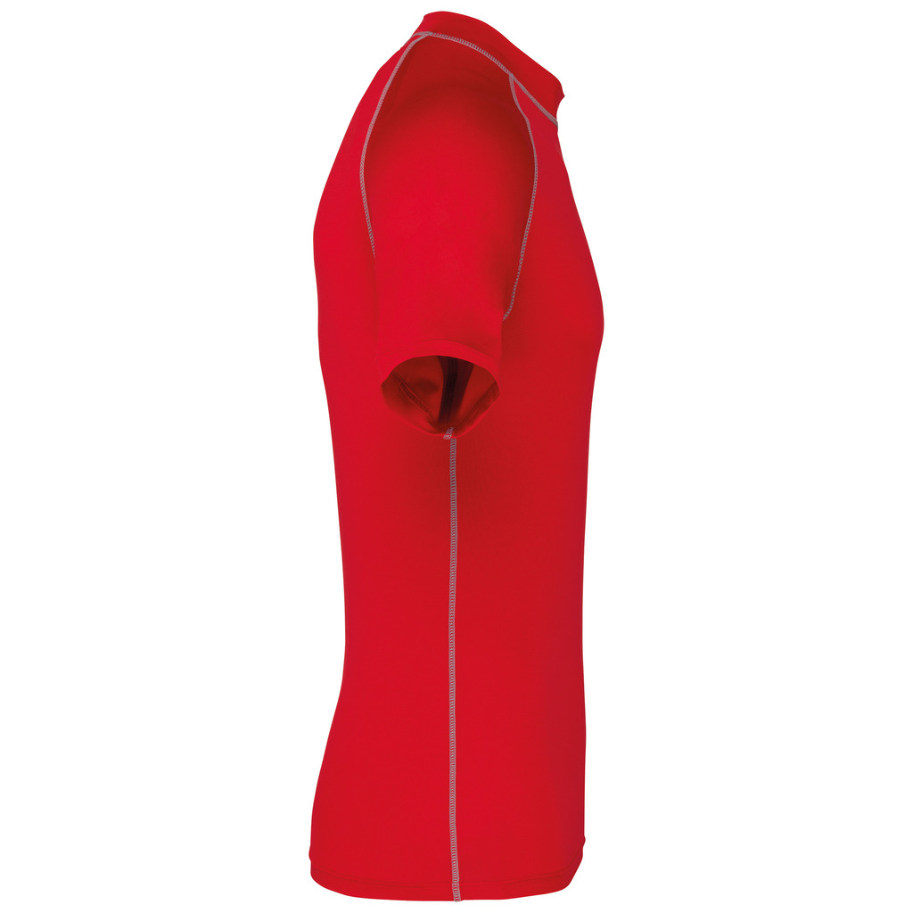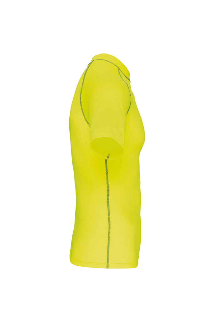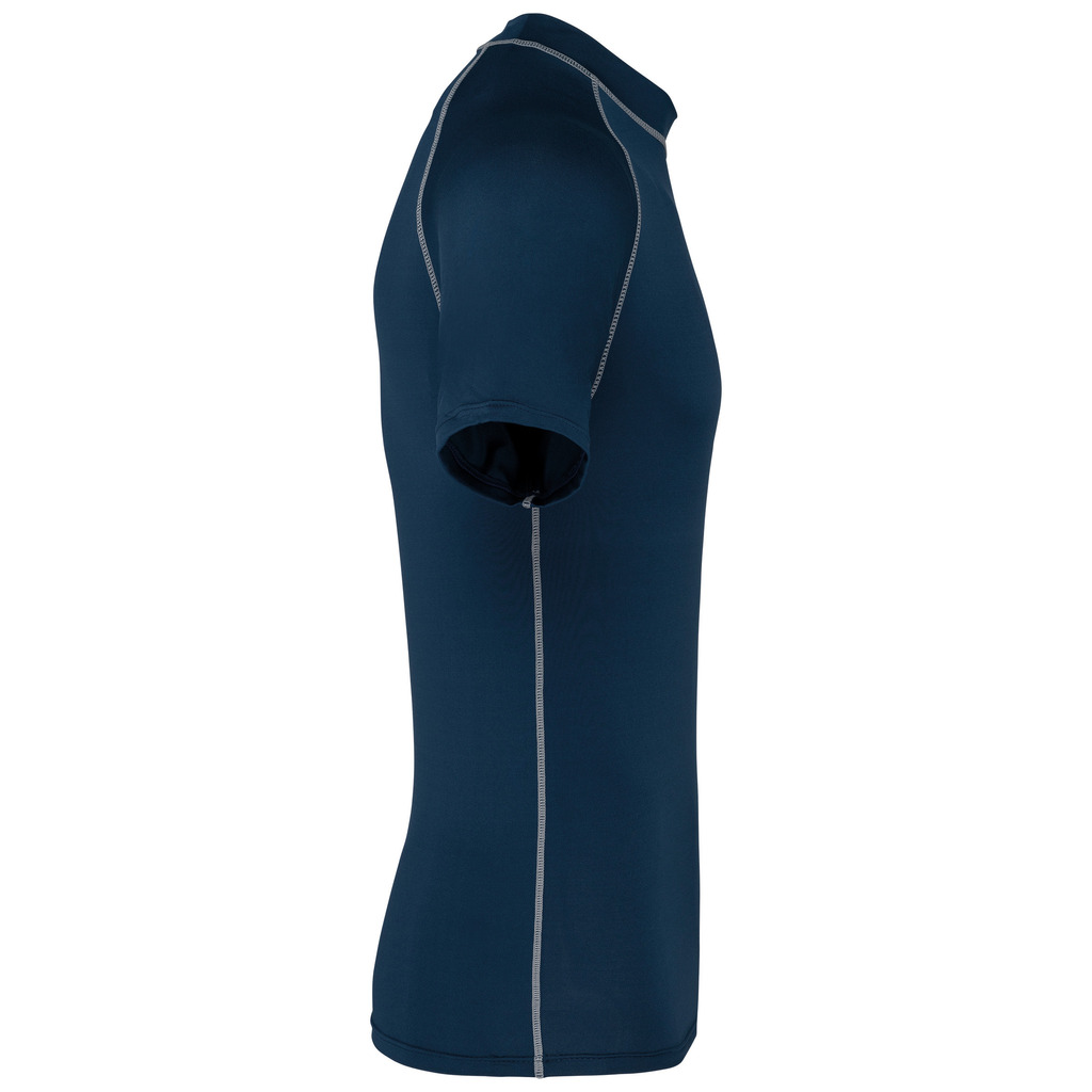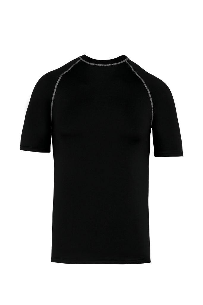 88% poliéster/12% elastano. Malha extensÃvel. Protecção UV 40+ em conformidade com as exigências da norma EN13758-1&2. Manga curta. Gola subida. Corte muito justo. Presilha elástica inserida na bainha frontal, permitindo inserir o cordão dos calções para estabilizar a t-shirt. Pespontos em contraste. Acabamentos com costura dupla nas mangas e bainha.