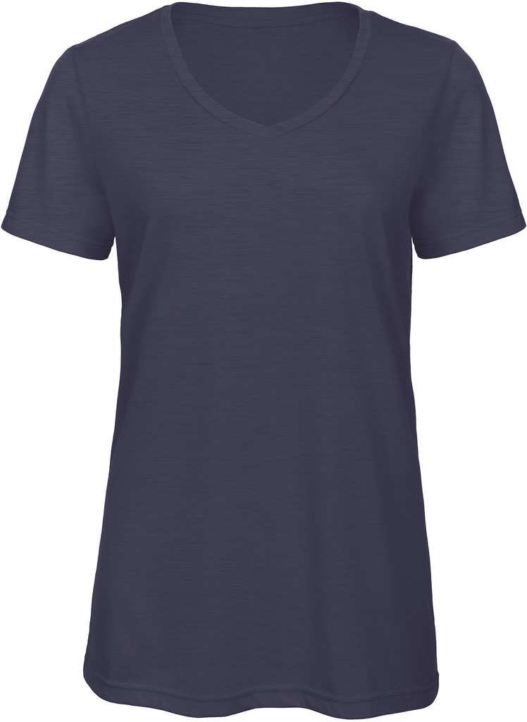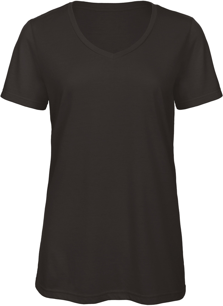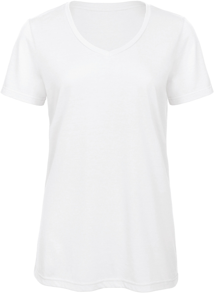 Jersey simples tri-matéria 50% poliéster / 25% algodão / 25% viscose. Decote em V fino no mesmo material. Comprimento confortável. Costuras laterais. Reforço no pescoço. Muito suave ao toque e agradável. Sistema “B&C No Label”: com etiqueta sem marca para um rebranding perfeito.