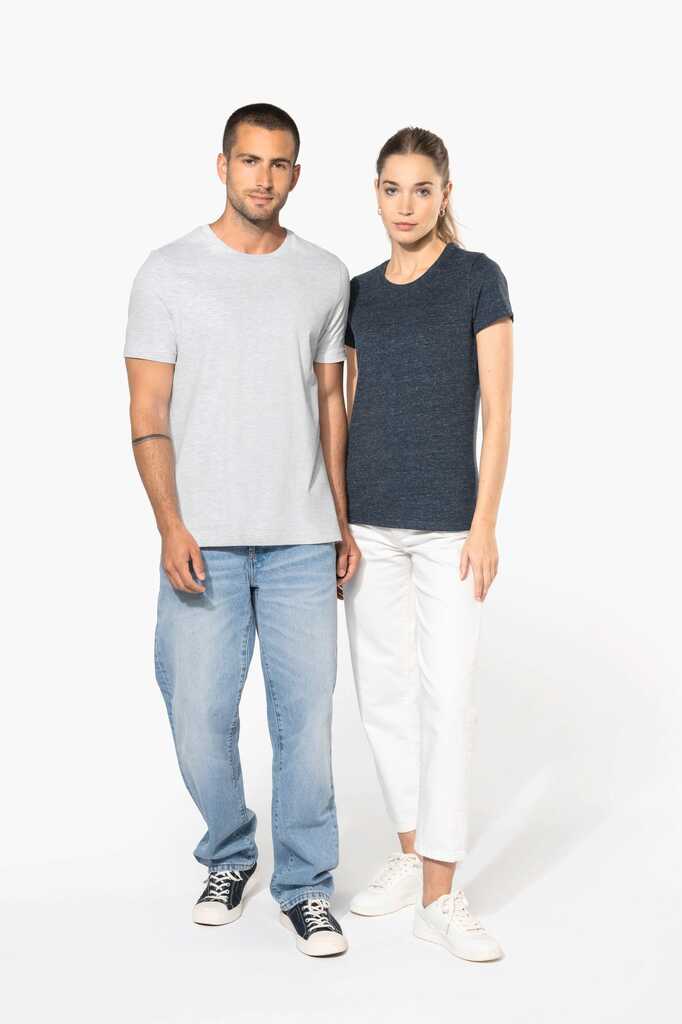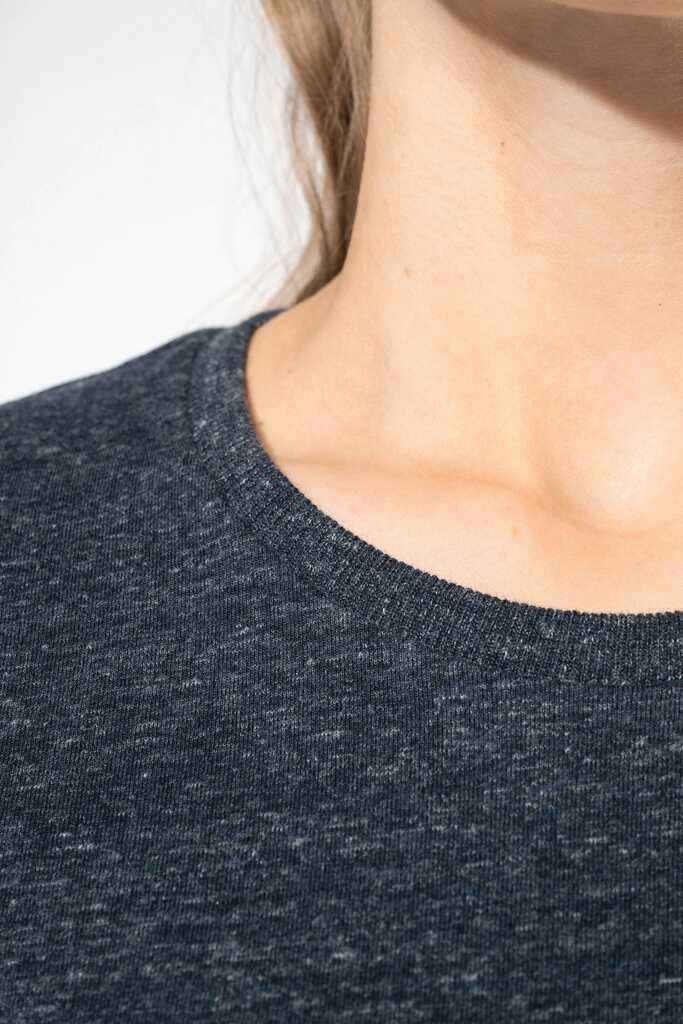 100% algodão (Ash Heather: 98% algodão / 2% viscose). Malha jersey. Decote redondo. Toque pele de pêssego e aspeto “Vintage”. Tapa-costuras duplo fashion no decote (efeito Chevron). Acabamento com costura dupla. Peça fornecida com etiqueta sem marca, contendo apenas etiqueta de tamanho para facilitar a personalização. Este produto foi submetido a um tratamento especial e apresenta um aspecto intencionalmente envelhecido. Este procedimento implica variações de cor de produto para produto, o que torna cada peça única.