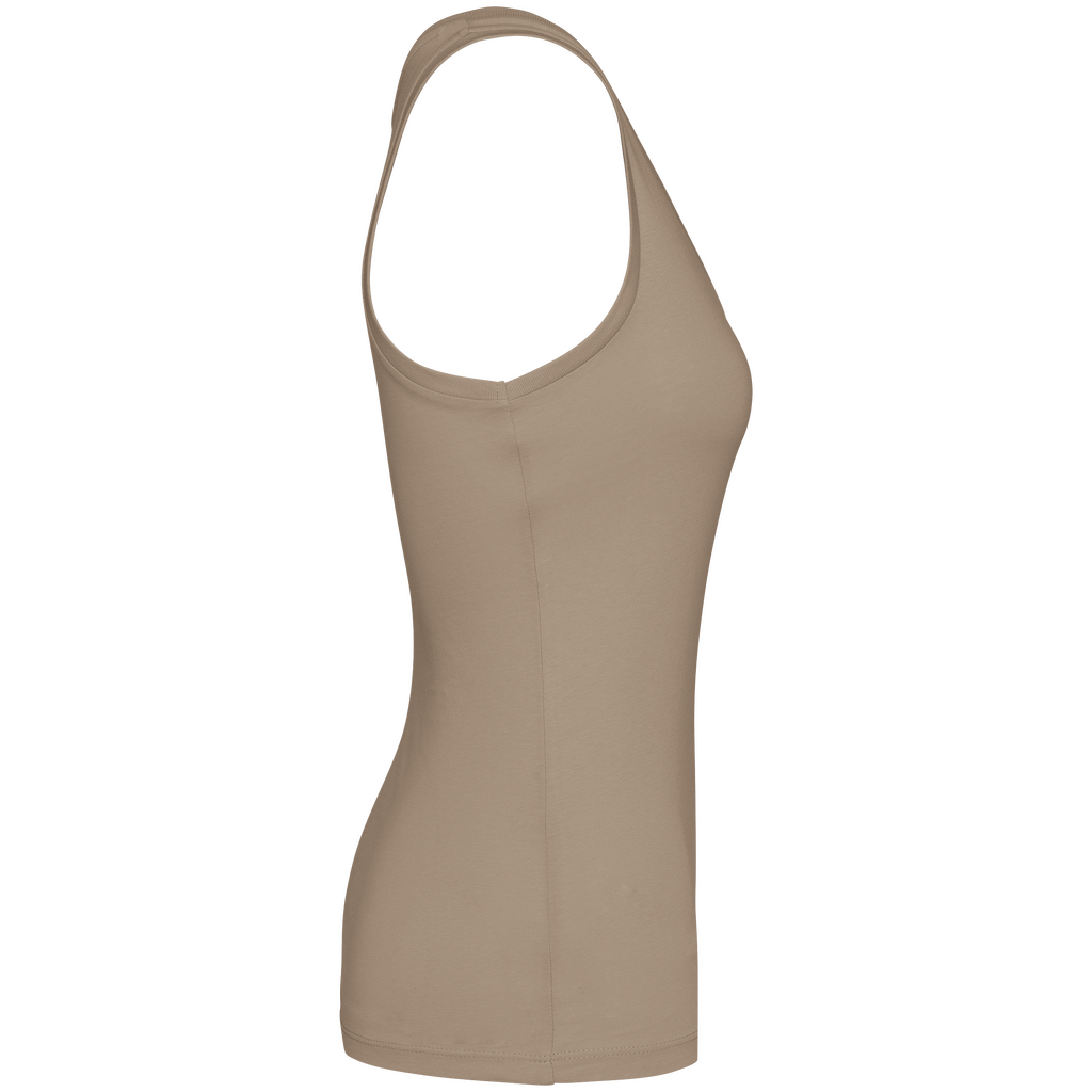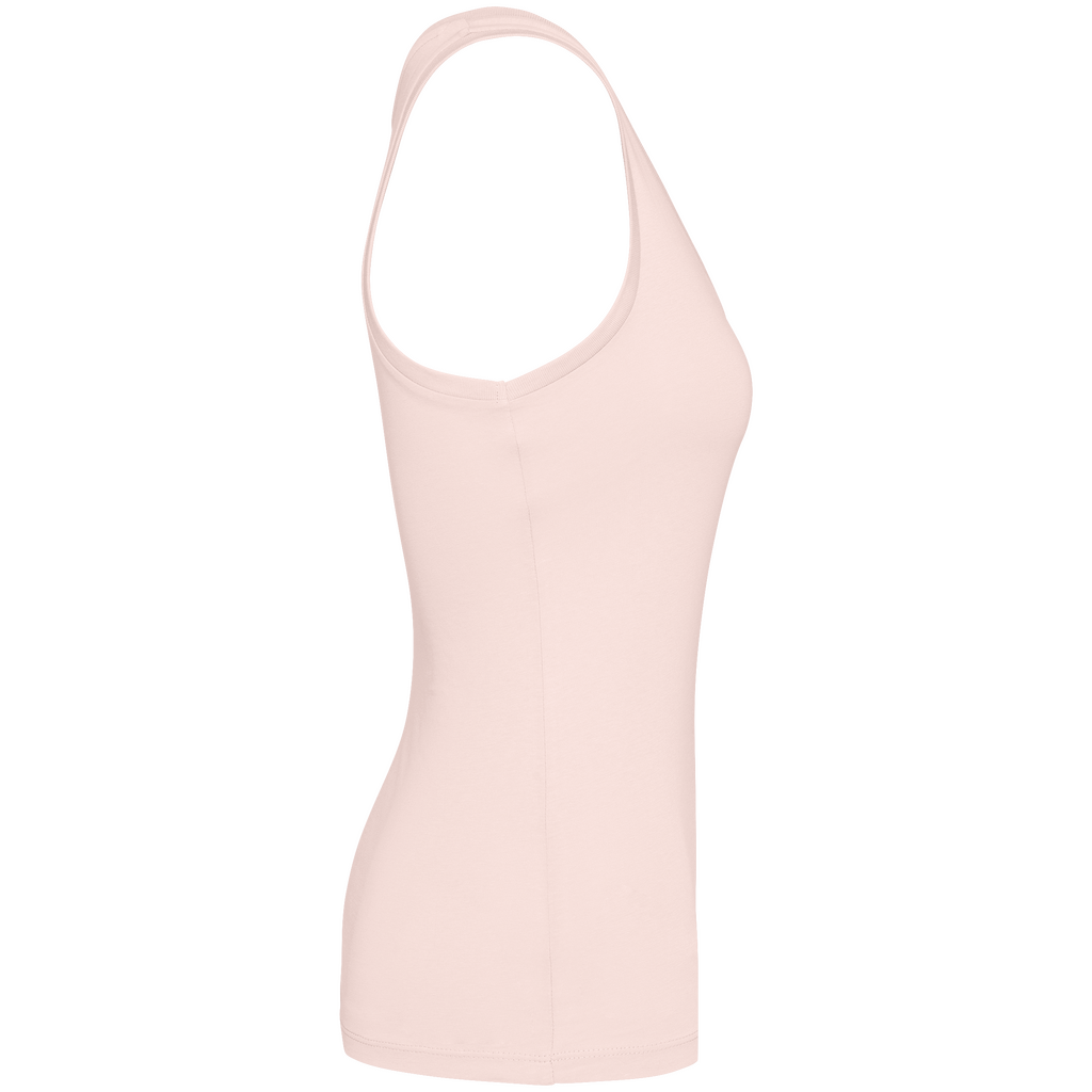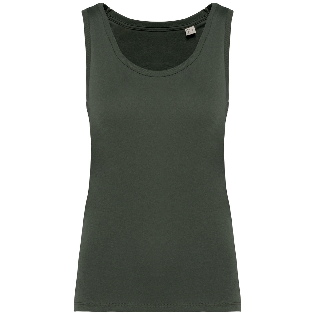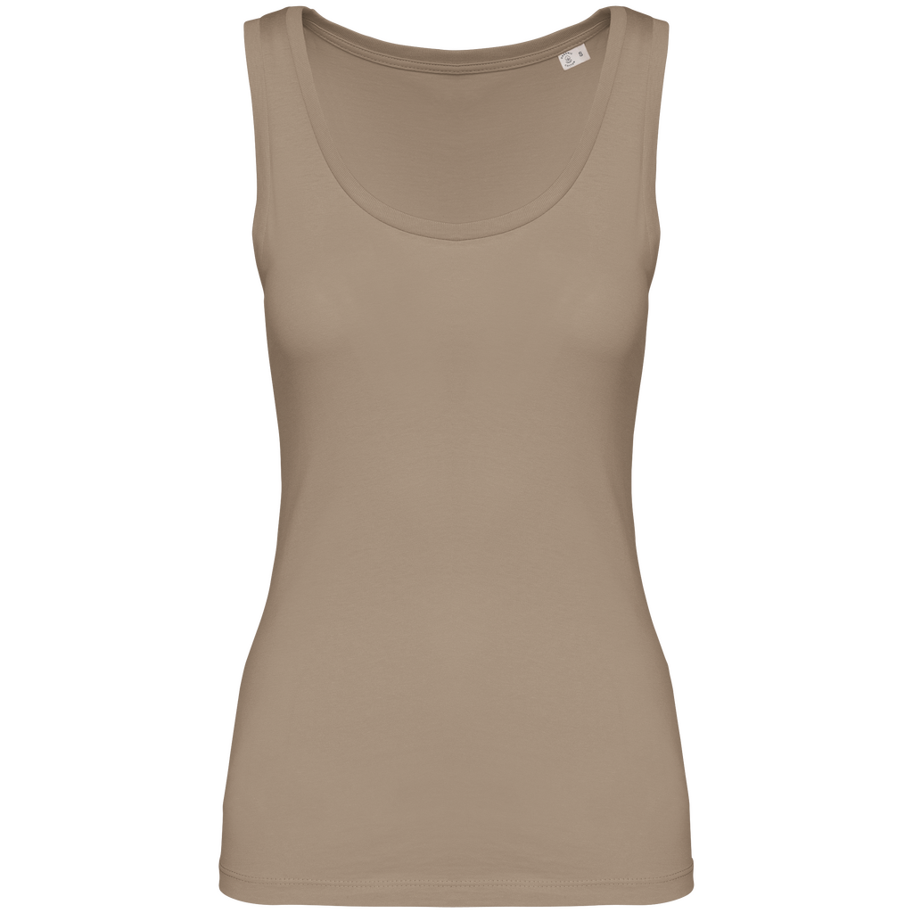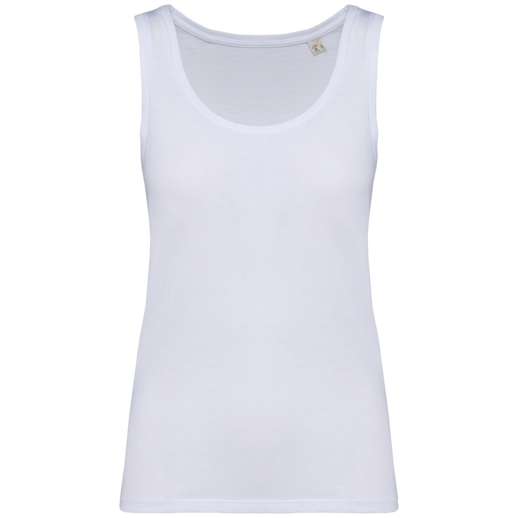100% algodão biológico. Algodão penteado ringspun. Corte justo. Costuras laterais. Decote e cavas em malha rib 1 x 1. Tapa-costuras no interior do decote no material principal. Bainha com costura dupla no cós.