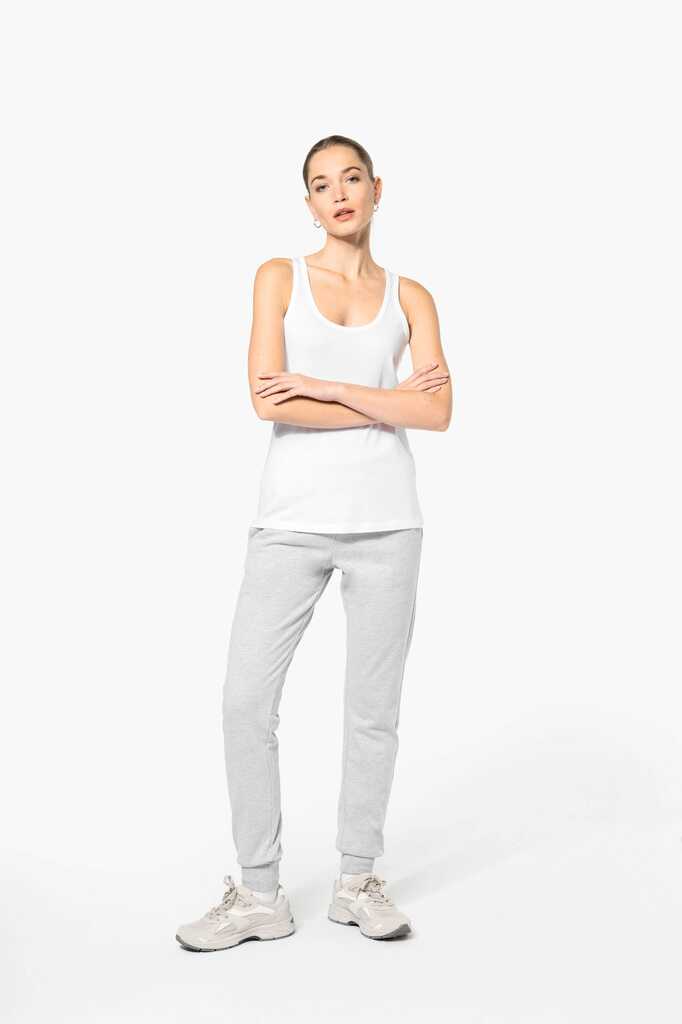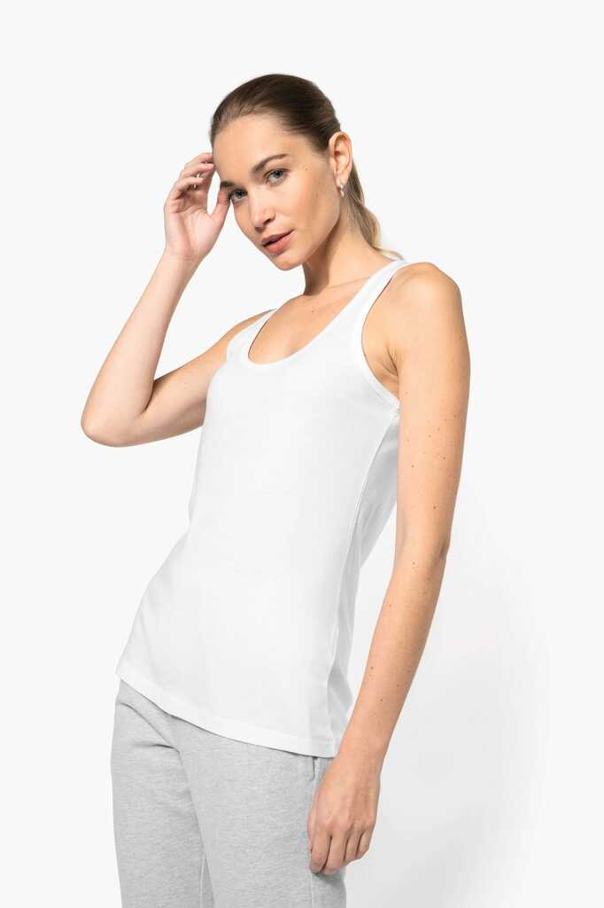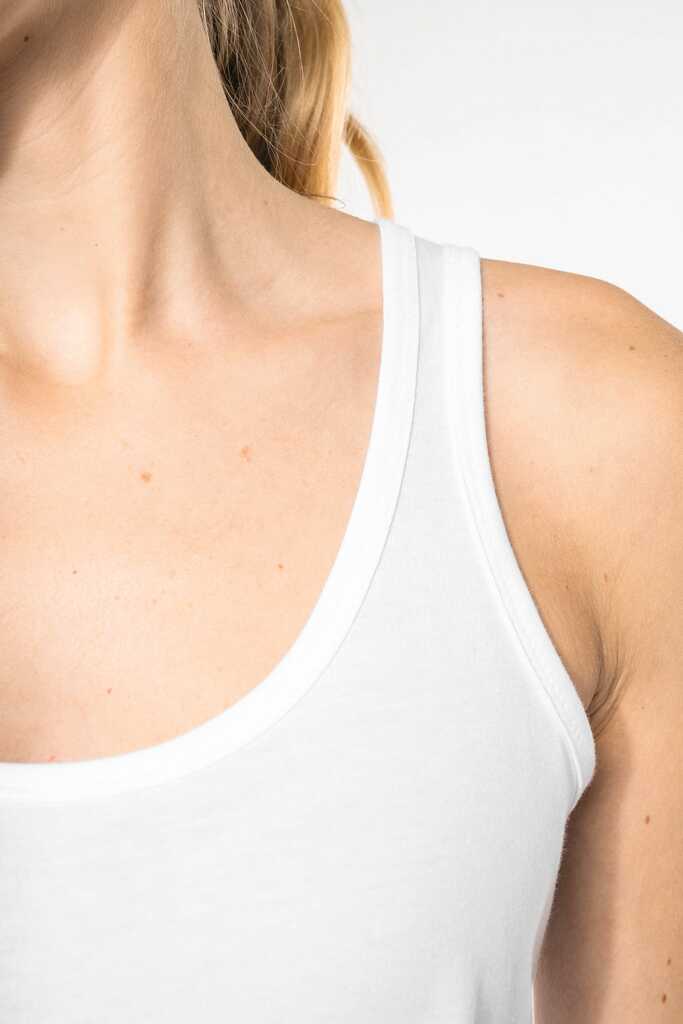 100% algodão (excepto na cor Oxford Grey: 90% algodão e 10% viscose). Todas as cores são fabricadas a partir de algodão em conversão biológico. Malha jersey. Corte e cose. Algodão penteado. Corte justo. Decote redondo. Acabamentos do decote e das cavas no material principal tom sobre tom. Acabamento da bainha com pesponto duplo. Sem etiqueta de marca, apenas com indicação de tamanho para facilitar a personalização.