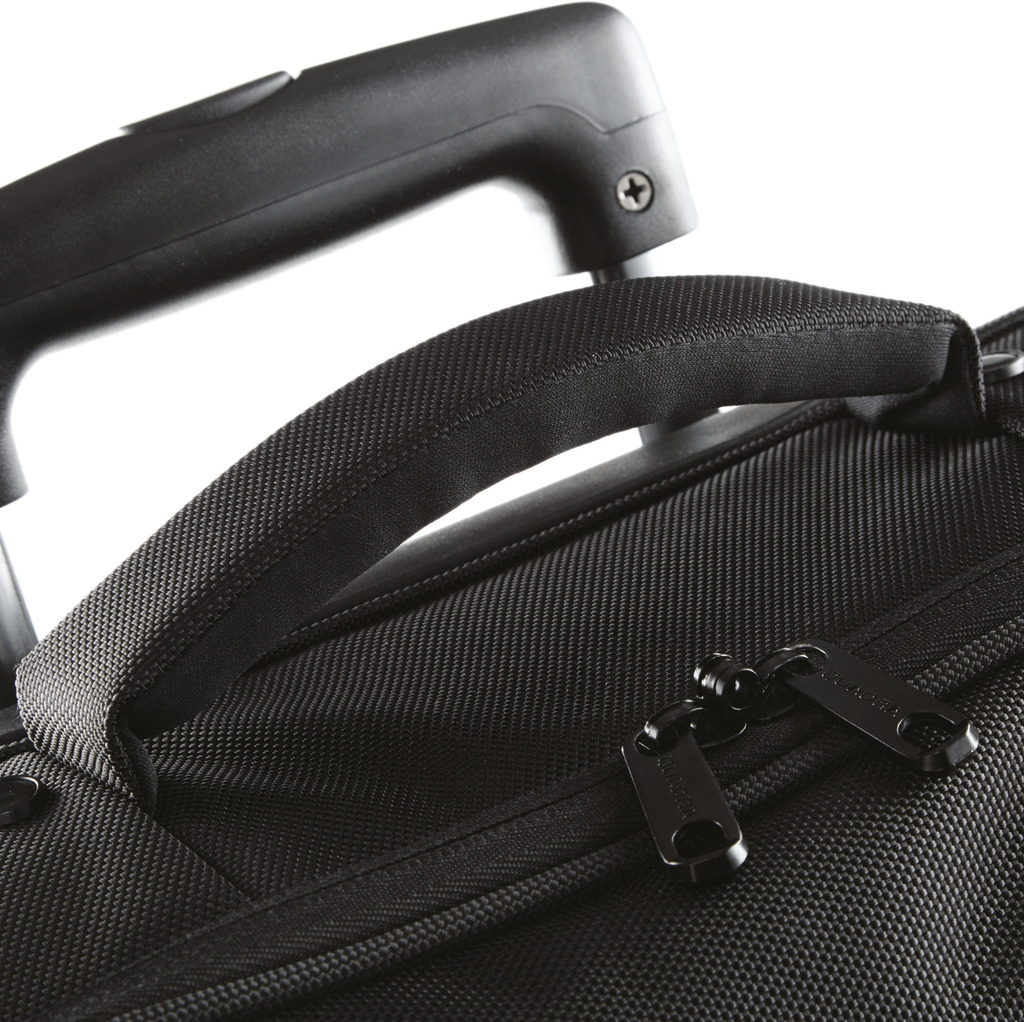 Poliéster 1680D, tamanho ideal para cabine, compatível com os computadores portáveis até 15,6 1D, pega tubular dupla bloqueável e retráctil, bolso frontal com organizador, rodas integradas de alta resistência, protecção com base sólida, compartimento principal com fecho com opção de utilização de cadeado, compartimento acolchoado para computador portátil, correias interiores de ajuste, pega de conforto, pega de transporte acolchoada, espaço para o nome tapável, bolso interior com fecho em rede. Peso do produto: 2,7 kg.