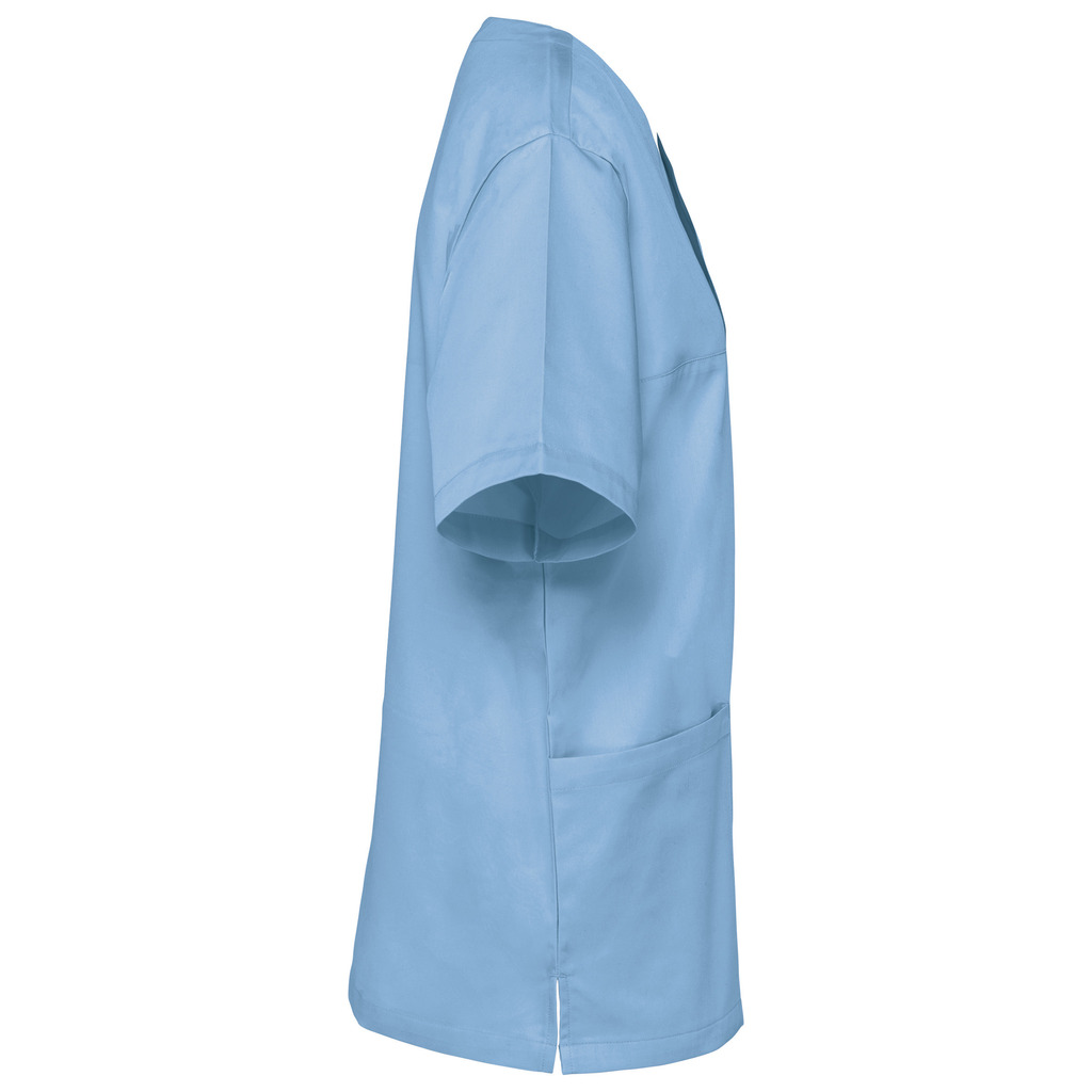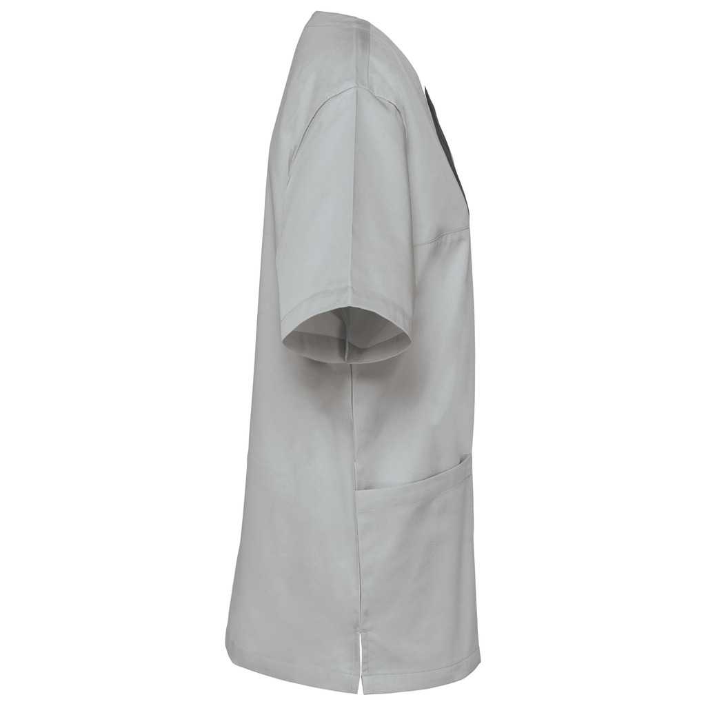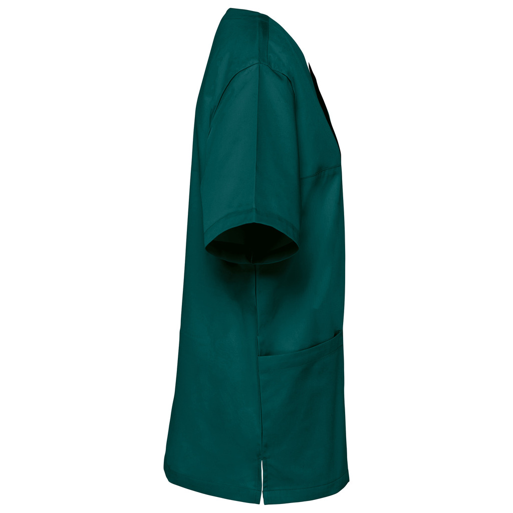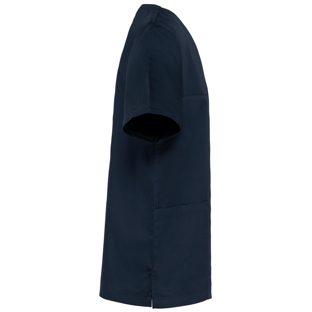 65% poliéster/35% algodão. Tecido sarja de poliéster e algodão. Lavagem a 60°C. Corte confortável. Decote em V cruzado. Bolso no peito esquerdo. 2 bolsos grandes frontais. 2 aberturas laterais. Etiqueta para colocar o nome no interior da peça. Etiqueta da marca tear-away.