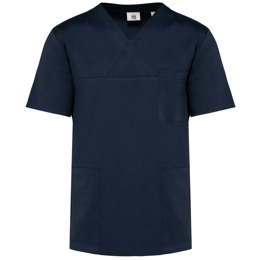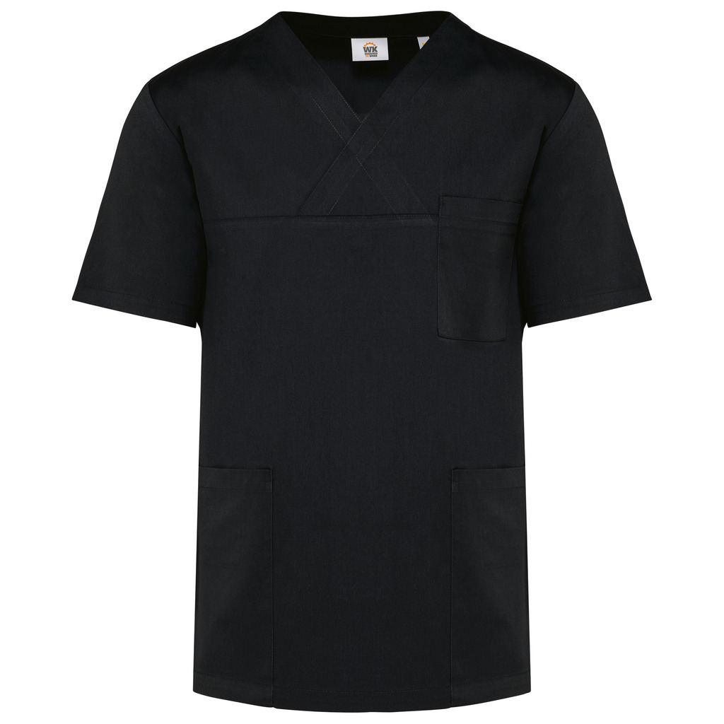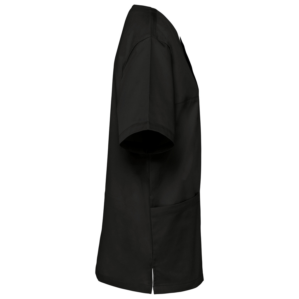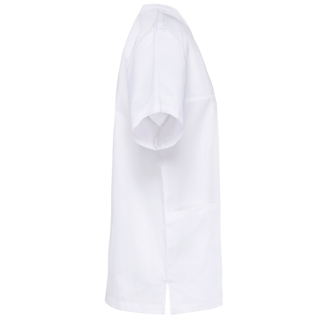 65% poliéster/35% algodão. Tecido sarja de poliéster e algodão. Lavagem a 60°C. Corte confortável. Decote em V cruzado. Bolso no peito esquerdo. 2 bolsos grandes frontais. 2 aberturas laterais. Etiqueta para colocar o nome no interior da peça. Etiqueta da marca tear-away.
