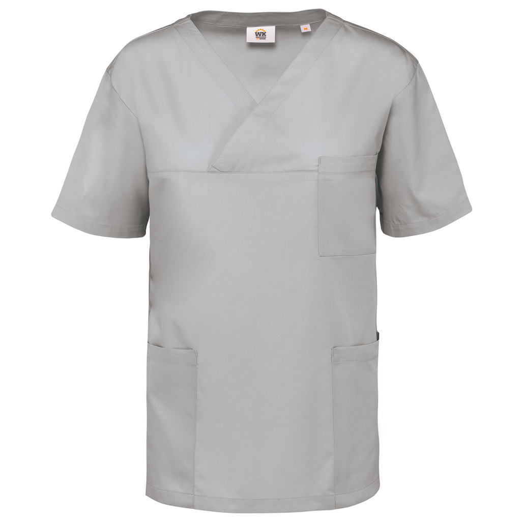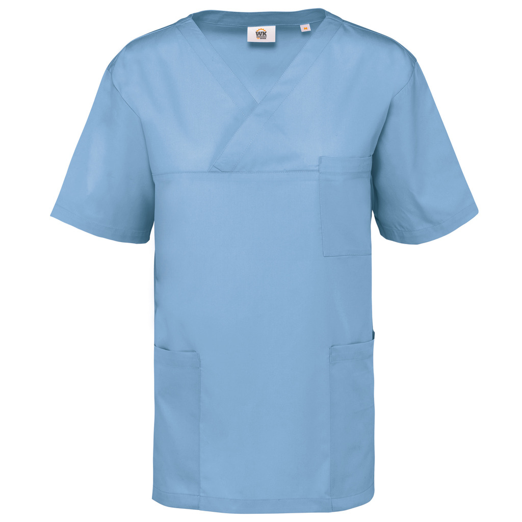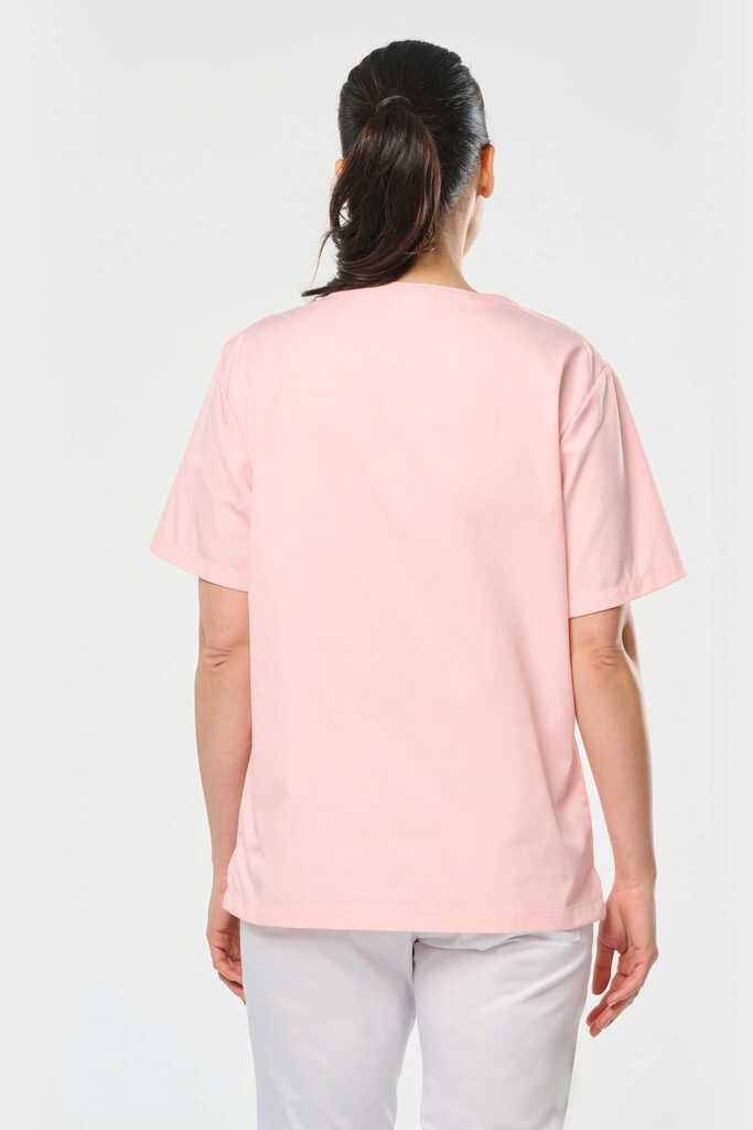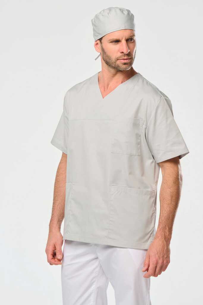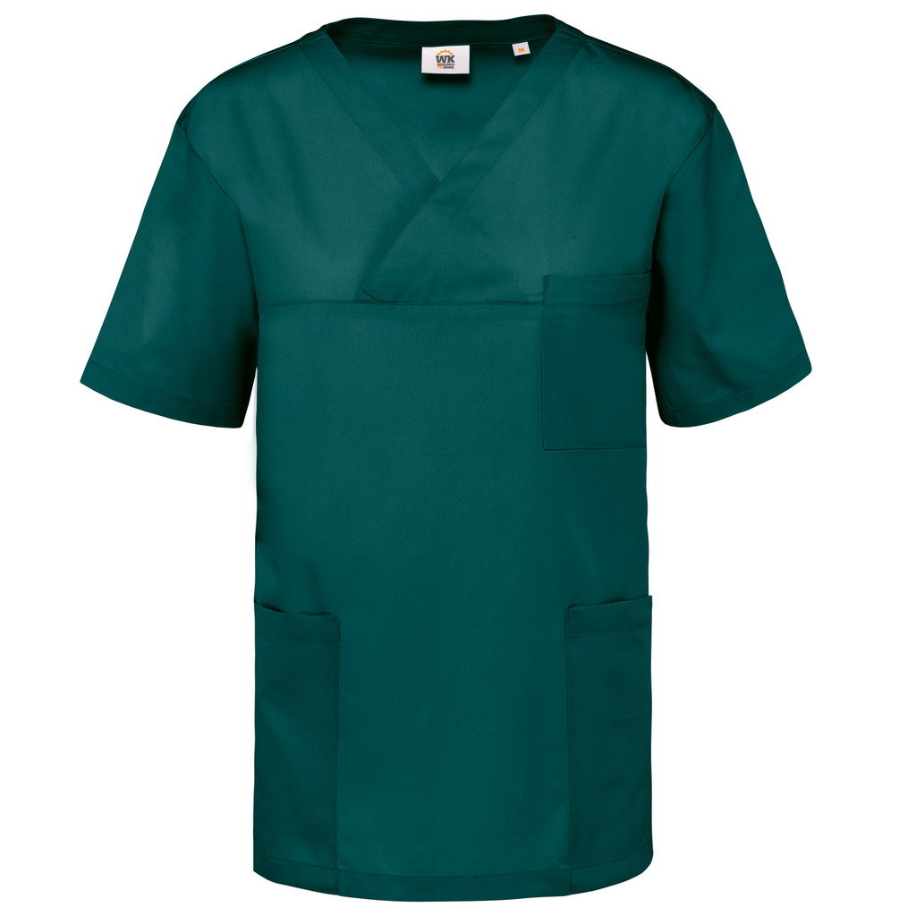 65% poliéster/35% algodão. Tecido sarja de poliéster e algodão. Lavagem a 60°C. Corte confortável. Decote em V cruzado. Bolso no peito esquerdo. 2 bolsos grandes frontais. 2 aberturas laterais. Etiqueta para colocar o nome no interior da peça. Etiqueta da marca tear-away.