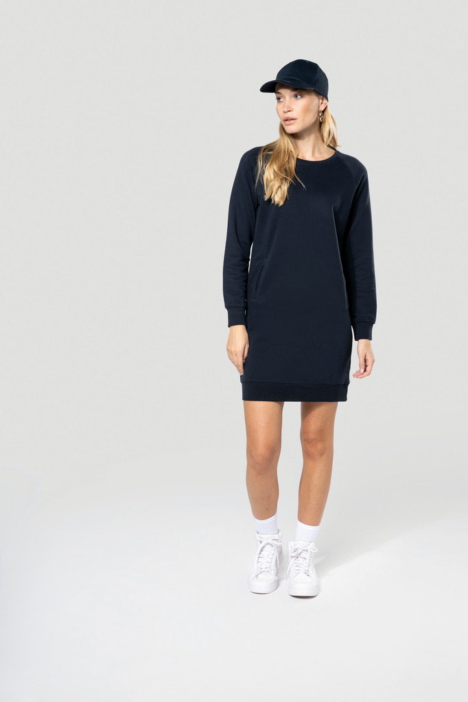 Cores lisas: 91% algodão biológico / 9% poliéster. 87% algodão biológico / 9% poliéster / 4% viscose para as cores mescladas. Decote redondo. Malha não cardada em French Terry com toque suave. Mangas raglan. 2 bolsos frontais. Acabamento em malha na bainha e nos punhos. Peça fornecida com etiqueta sem marca, contendo apenas indicação do tamanho para facilitar a personalização.