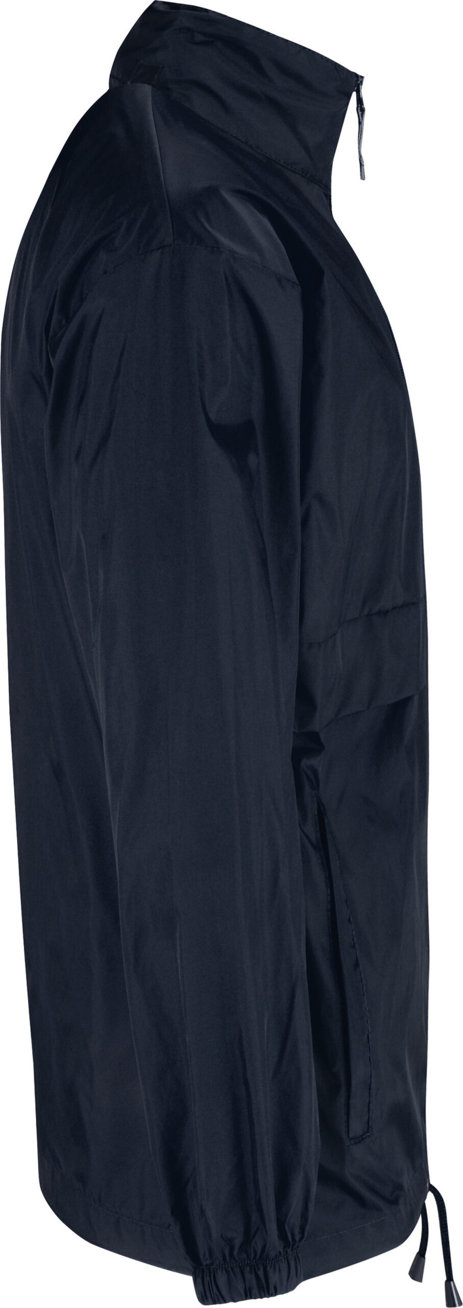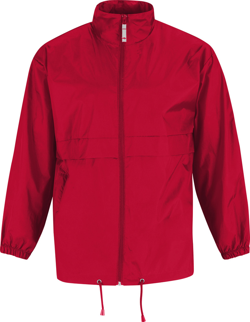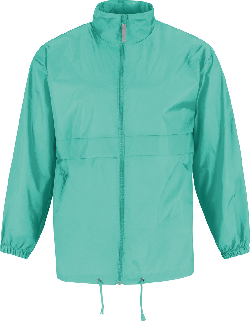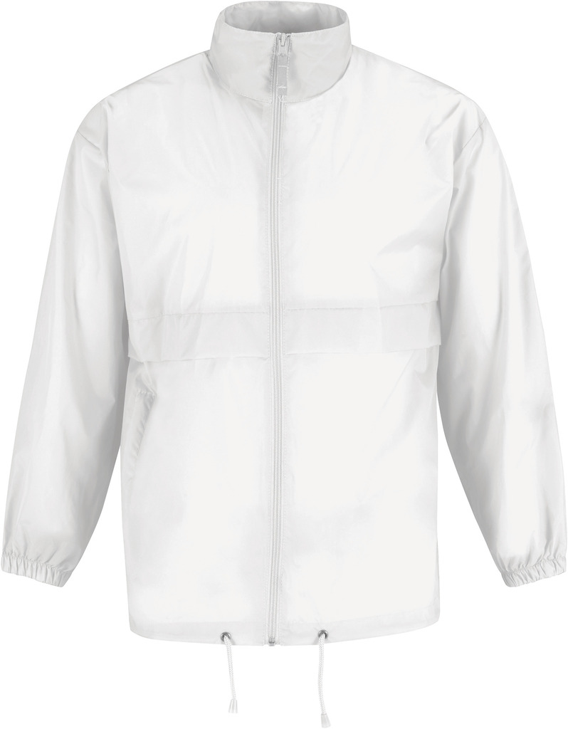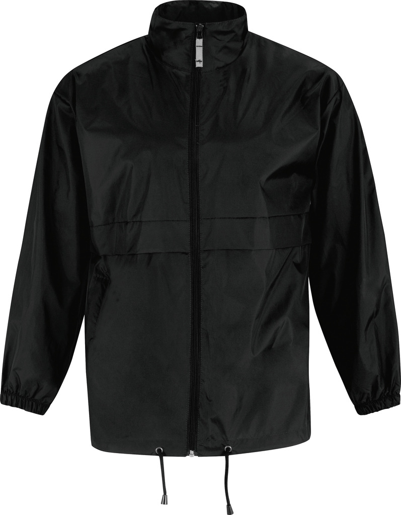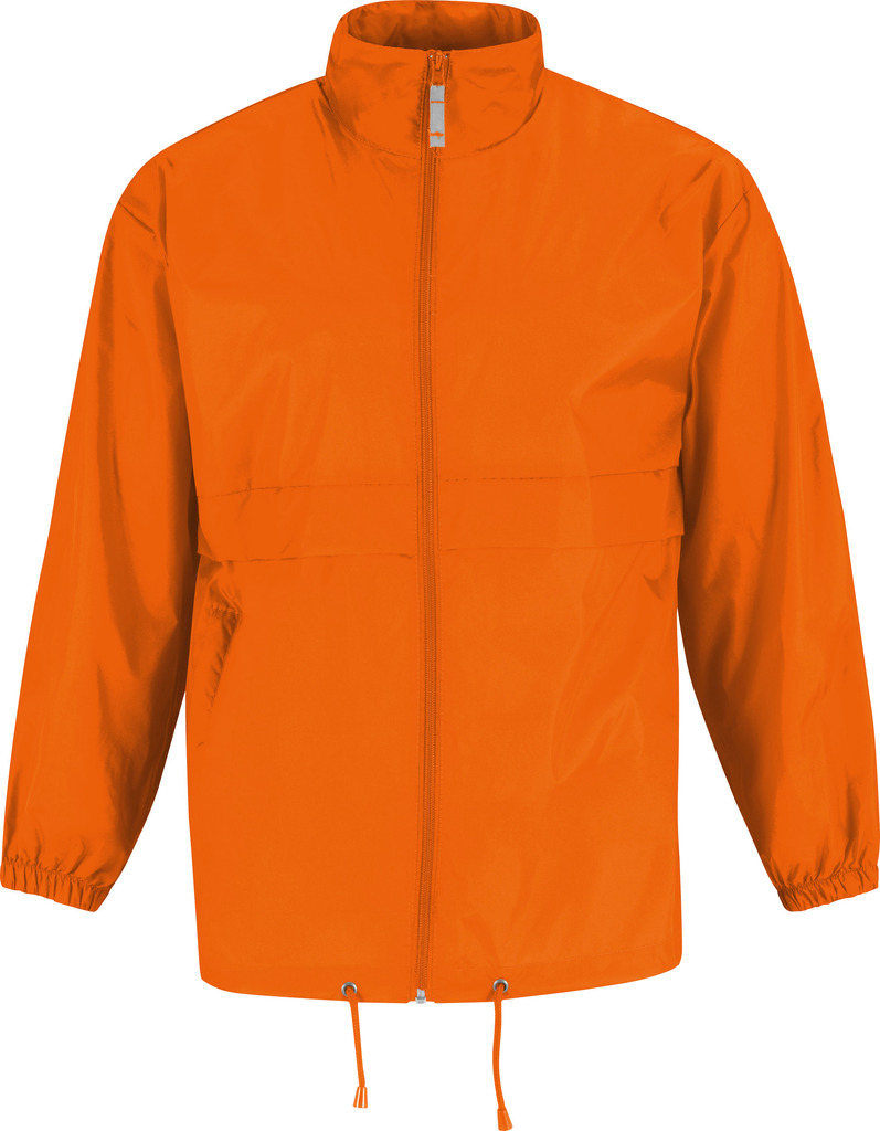 100% nylon taffeta. Abertura total com fecho. Capuz no interior da gola e fecha com Velcro®. Transforma-se em bolsa (encaixa no bolso) – sistema K-Way®. Cós ajustável com cordão de ajuste.
