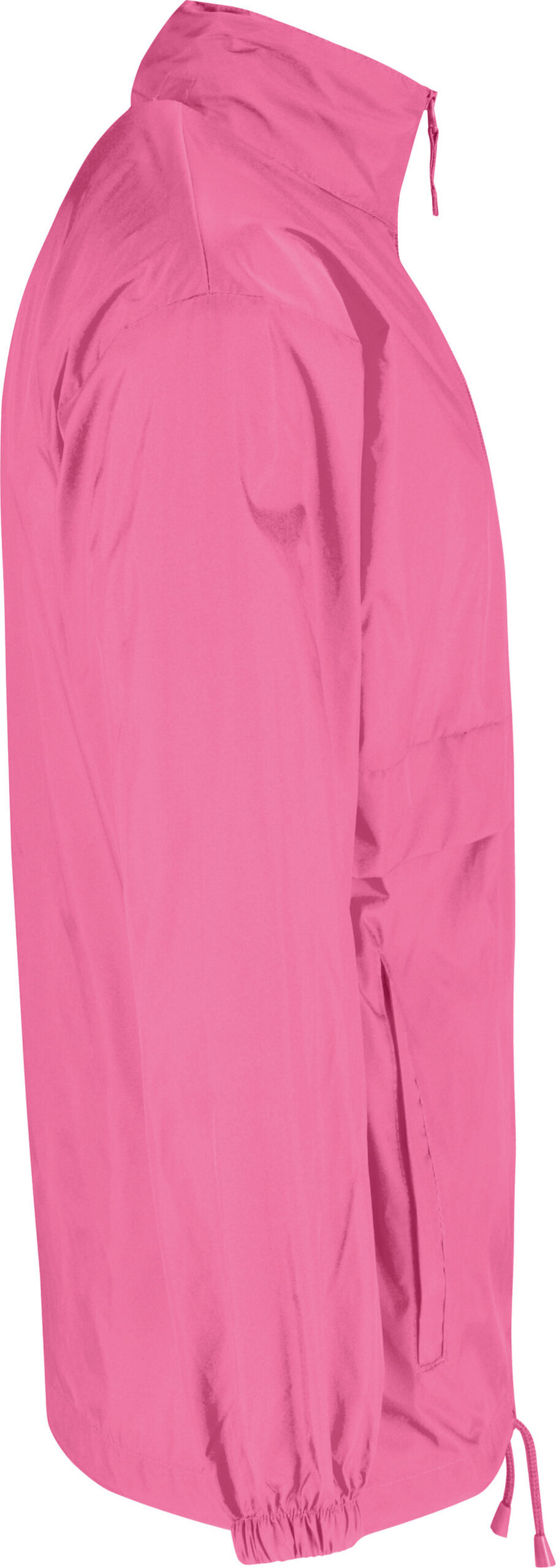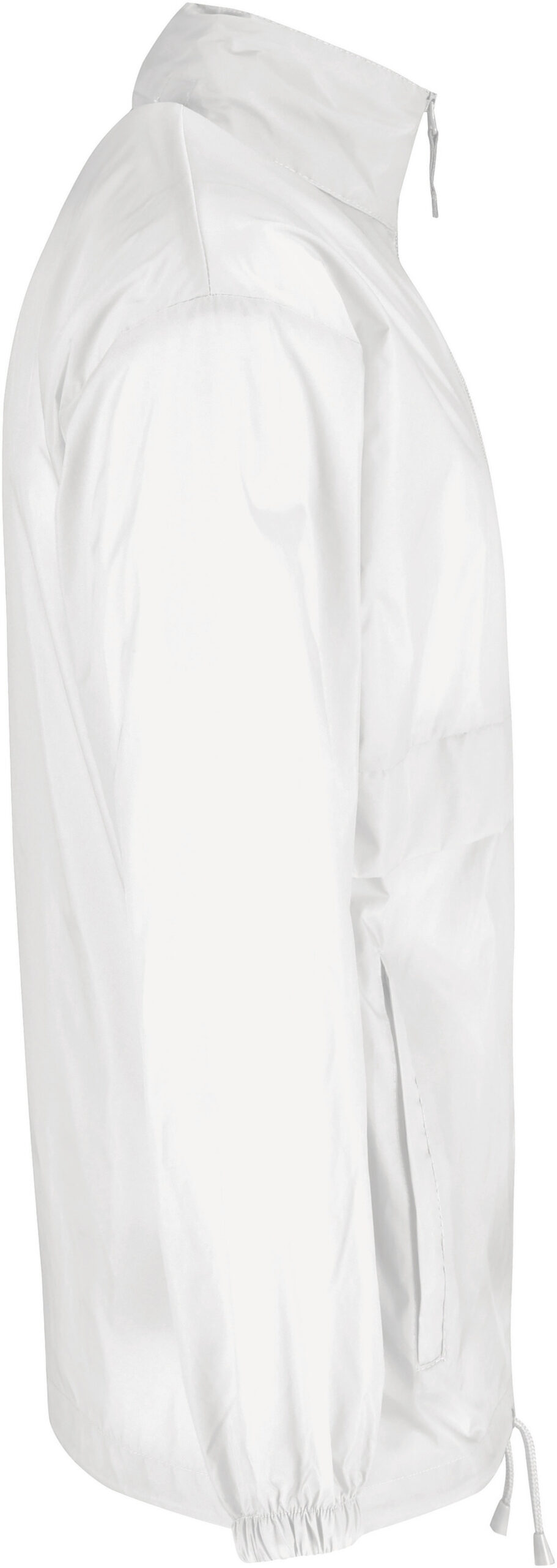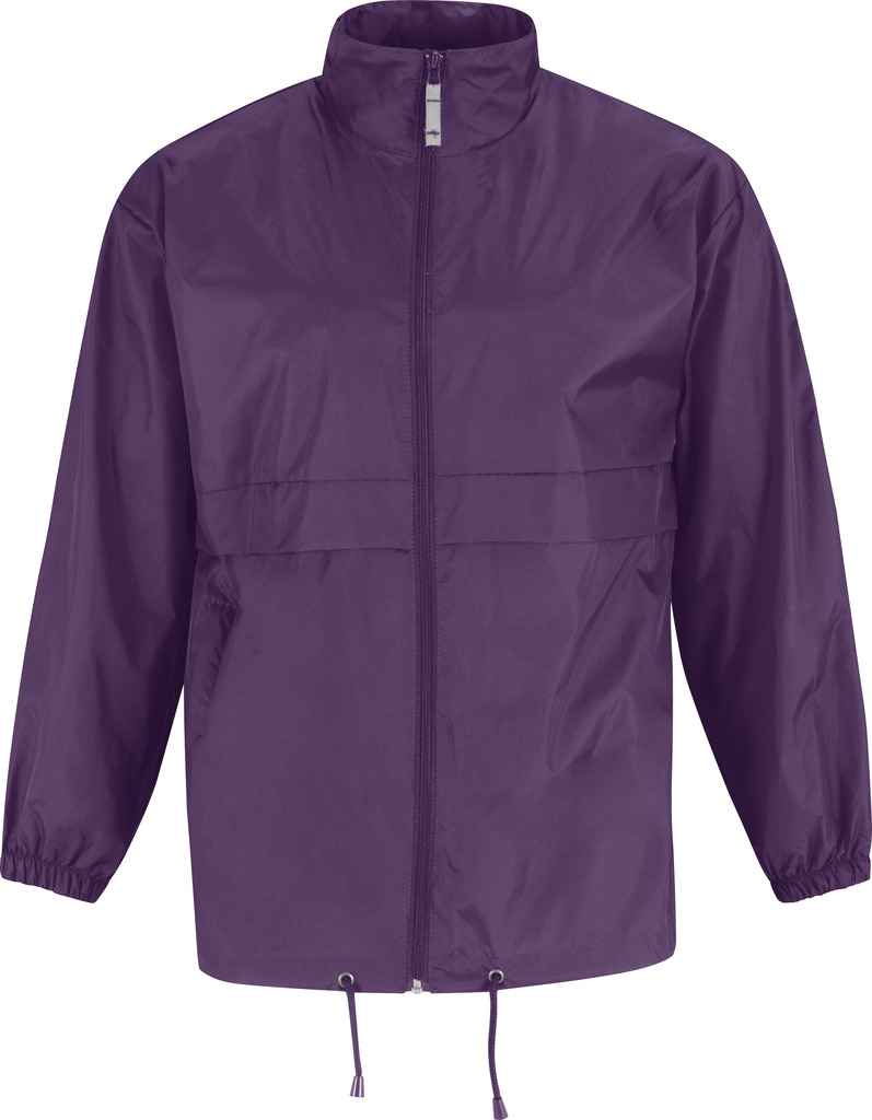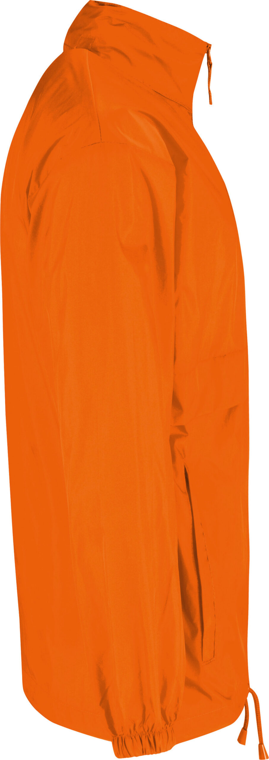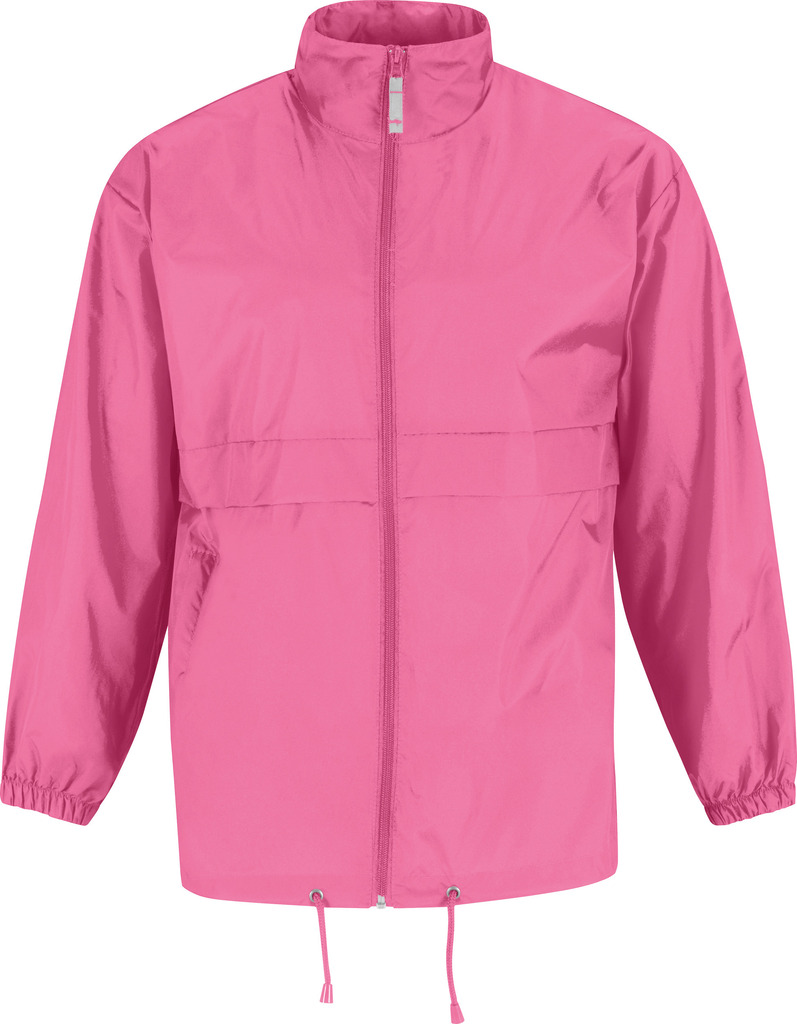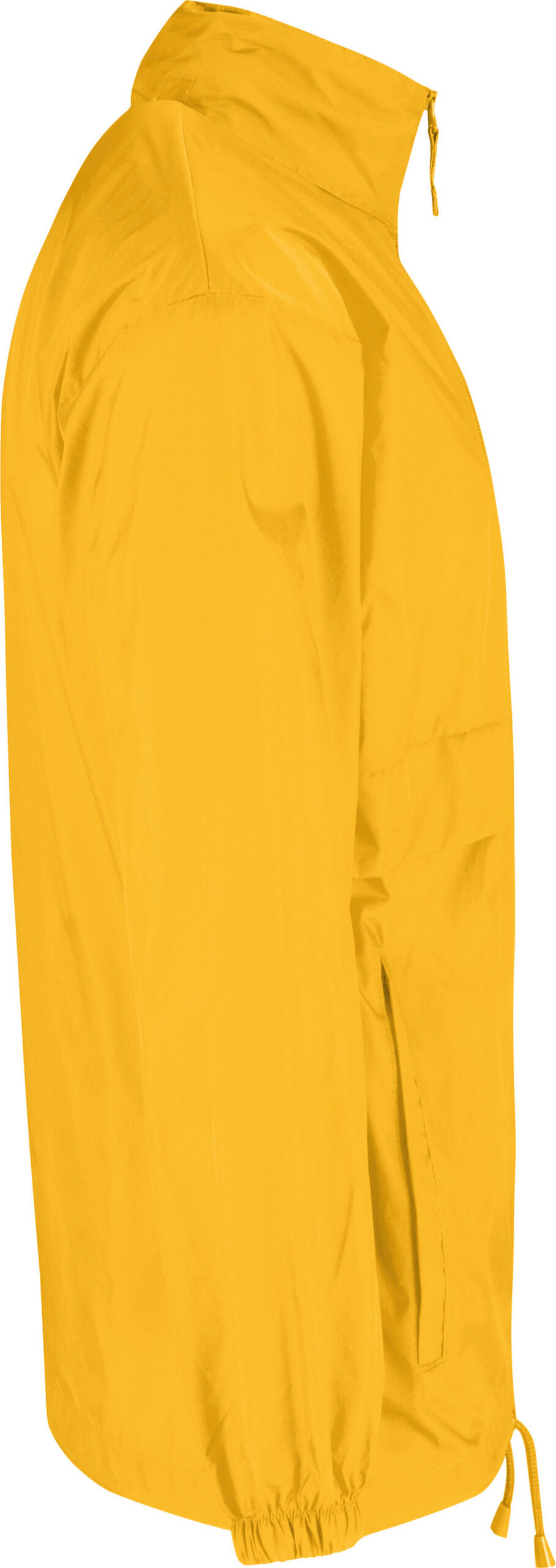 100% nylon taffeta. Abertura total com fecho. Capuz no interior da gola e fecha com Velcro®. Transforma-se em bolsa (encaixa no bolso) – sistema K-Way®. Cós ajustável com cordão de ajuste.
